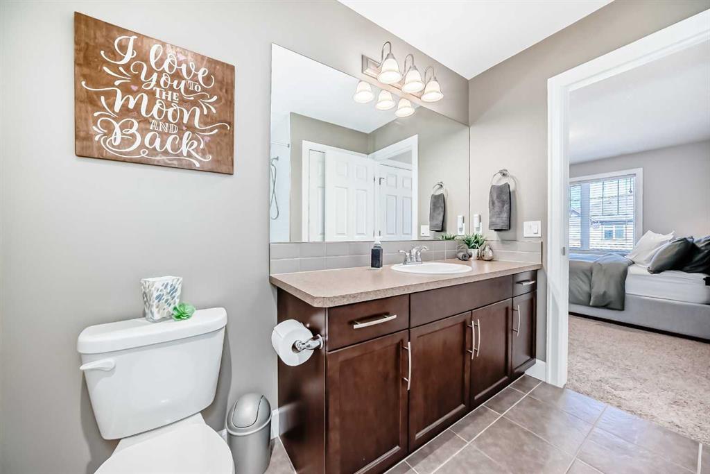Hello, Gorgeous! Welcome to this beautifully maintained home in the sought-after community of Windsong in Airdrie, offering over 1,368 sqft of above-grade living space, no condo fees, and a layout designed for comfortable everyday living. This 2-bedroom, 1.5-bath home is an excellent opportunity for first-time buyers or investors looking for value, functionality, and a move-in ready property. The main living area is bright and inviting, featuring a well-designed layout with a spacious living room, dedicated dining area, and a functional kitchen complete with ample cabinetry, pantry storage, tiled flooring, and an oversized island perfect for casual dining or entertaining. Step outside to the private front balcony with glass privacy panels, aluminum railing, and BBQ hookup, creating an ideal space to relax or host. Upstairs, you’ll find two generously sized bedrooms, including a primary retreat with a large walk-in closet and convenient cheater ensuite access. A bonus nook at the top of the stairs provides flexible space for a home office, reading area, or additional storage.