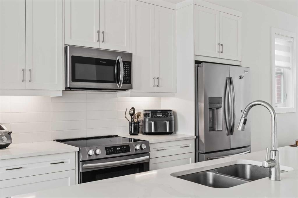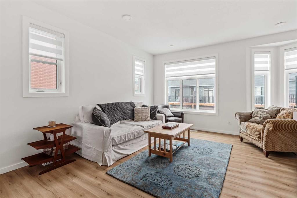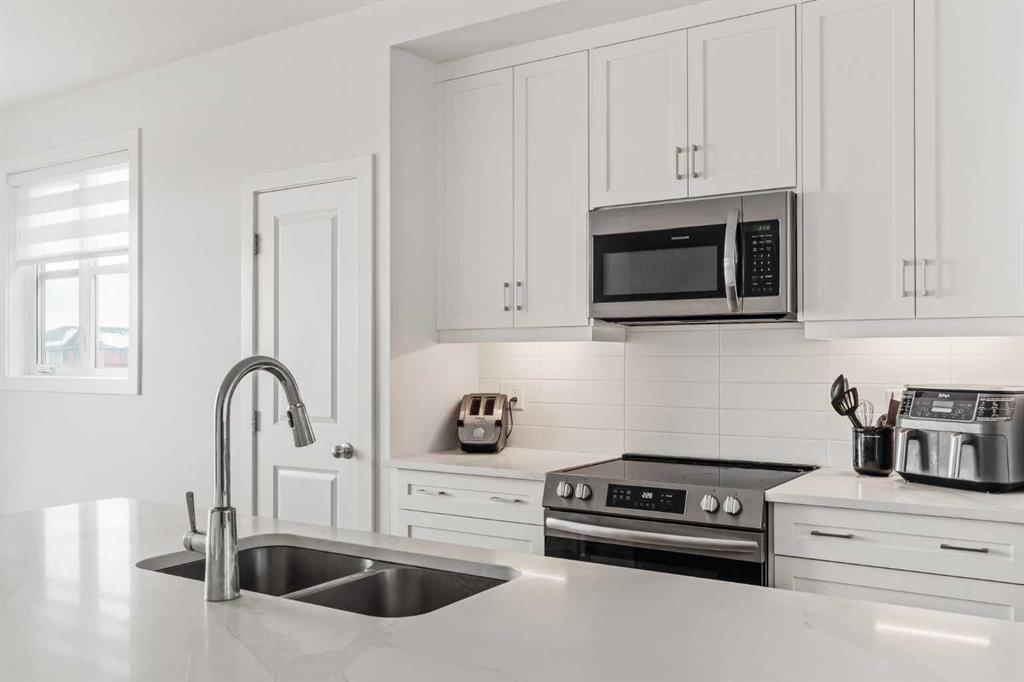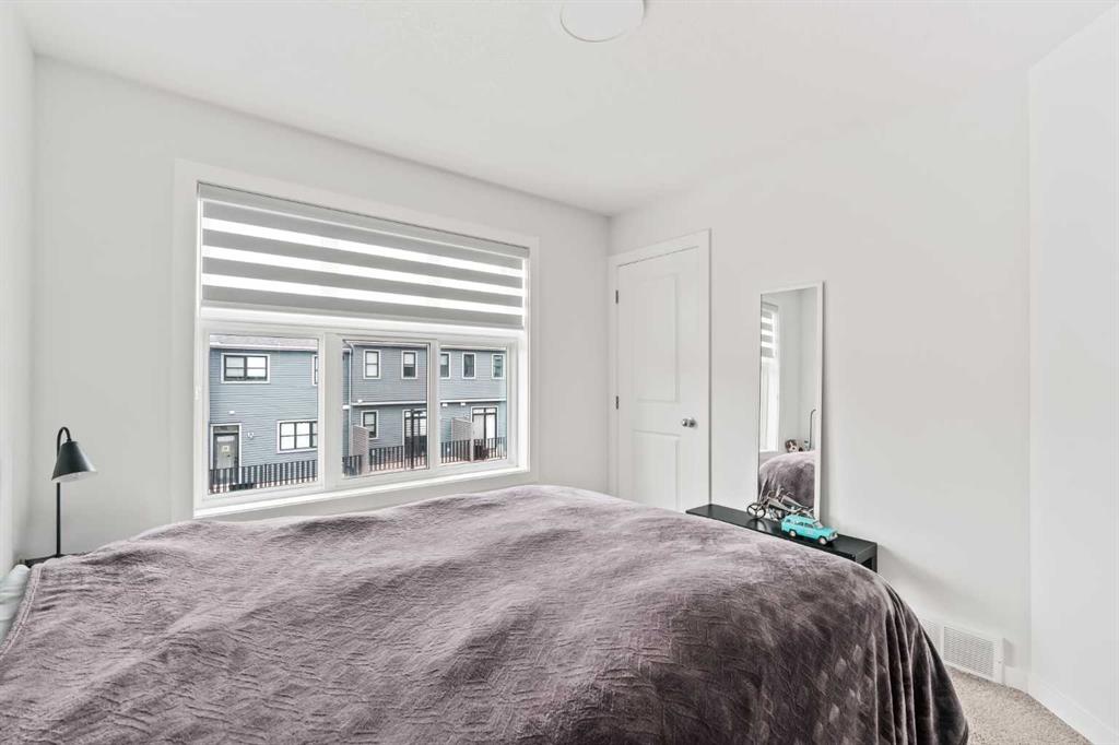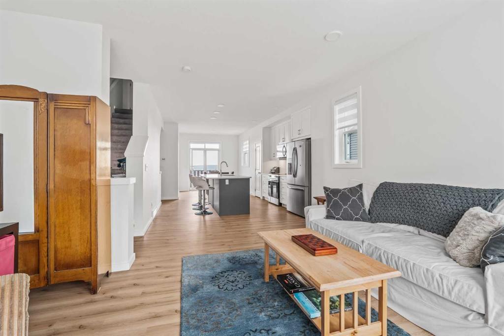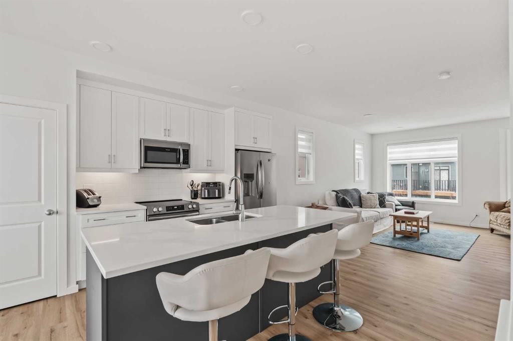 Welcome to this stunning end-unit, 3 Bed, 2.5 Bath townhome in Springbank Hill, where 1,460 sqft. of modern design meets everyday convenience. Imagine starting your morning with coffee on your sun-drenched south-facing balcony, overlooking a peaceful green space and stormwater pond. The open-concept main floor is perfect for hosting, with a spacious living and dining area separated by a sleek, center island with upgraded quartz countertops. The kitchen boasts upgraded stainless steel appliances (built-in microwave hood fan, French door fridge with water & ice dispenser) under-cabinet lighting, and stylish chrome finishes found throughout the home. Upstairs, the primary suite is complete with a walk-in closet and an upgraded 3-piece ensuite with oversized shower and grey stone countertop. Two additional bedrooms provide flexibility—use one as a cozy guest room and the other as a home office or nursery. A 4-piece bathroom and laundry complete this level. The double tandem garage offers space for two vehicles or a home gym/workshop, equipped with wiring for 220V/30A outlet for EV charging or power tools. Plus, an additional driveway parking spot means there’s room for a third vehicle. Built in 2023 and well maintained, this home also features LVP flooring, A/C rough-in, and quick access to walking trails, nature, and top amenities such as Aspen Landing, Westhills Shopping Centre, Westside Recreation Centre, and the 69th Street LRT Station. Plus, it’s close to Calgary’s top schools, including Griffith Woods School, Guardian Angel School, Ernest Manning High School, Rundle College, and Webber Academy. Picture yourself living here—contact me or your preferred REALTOR® to book your private showing today!