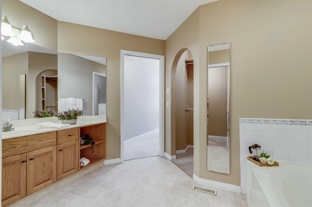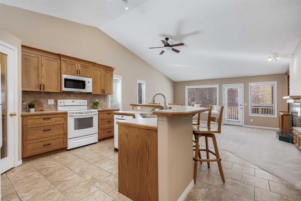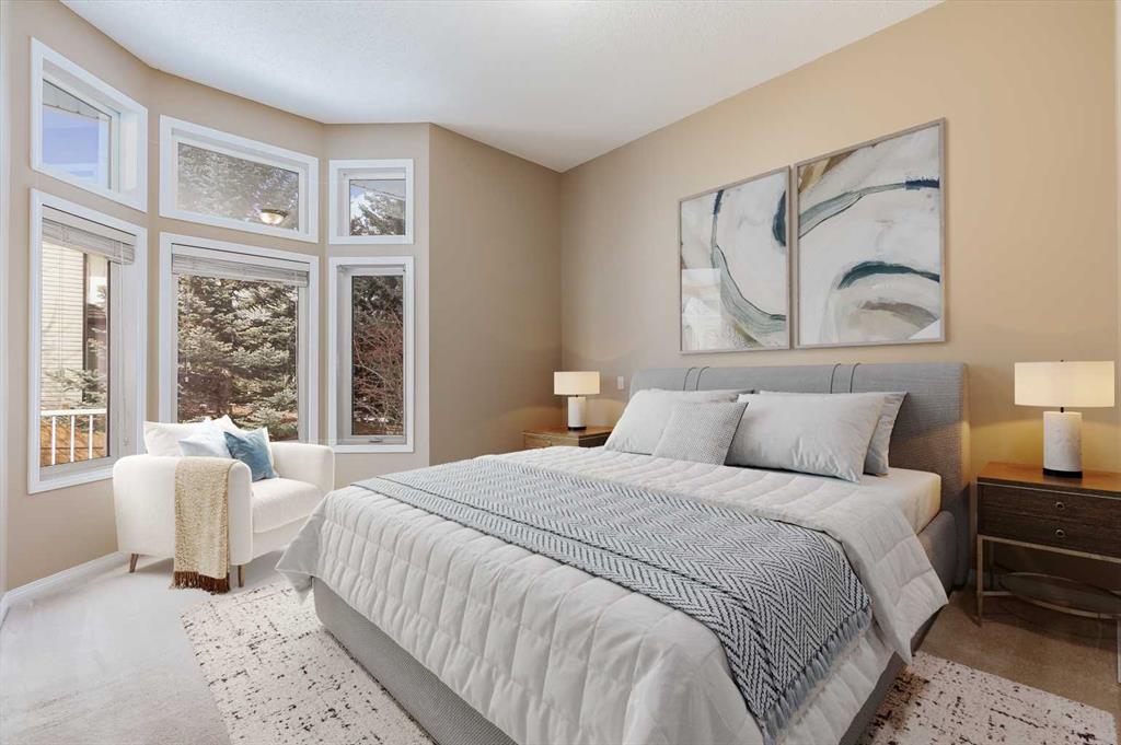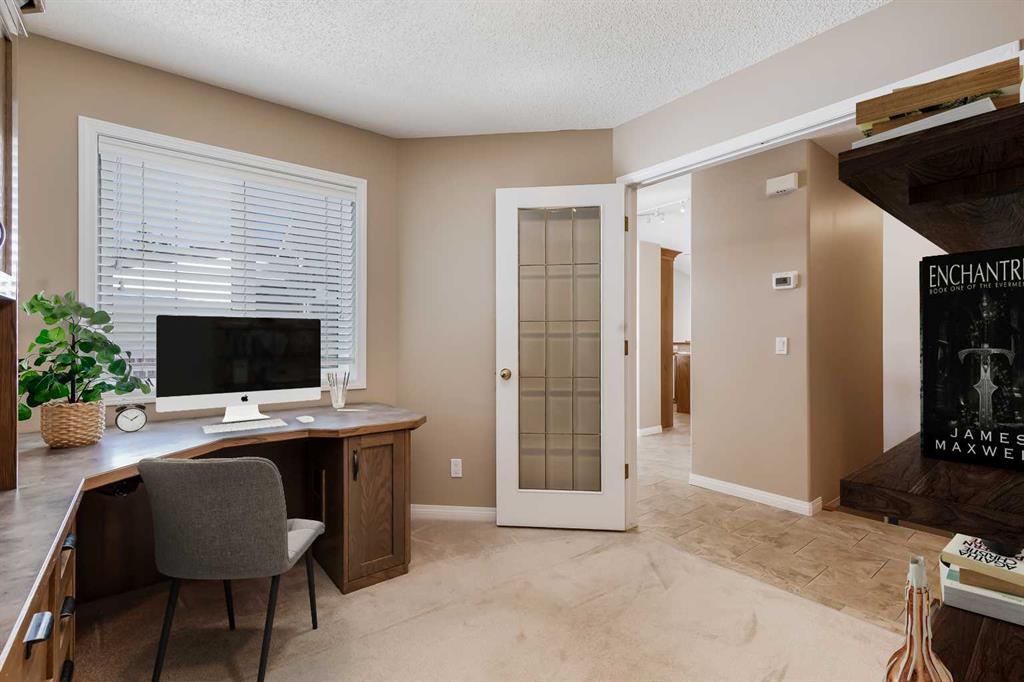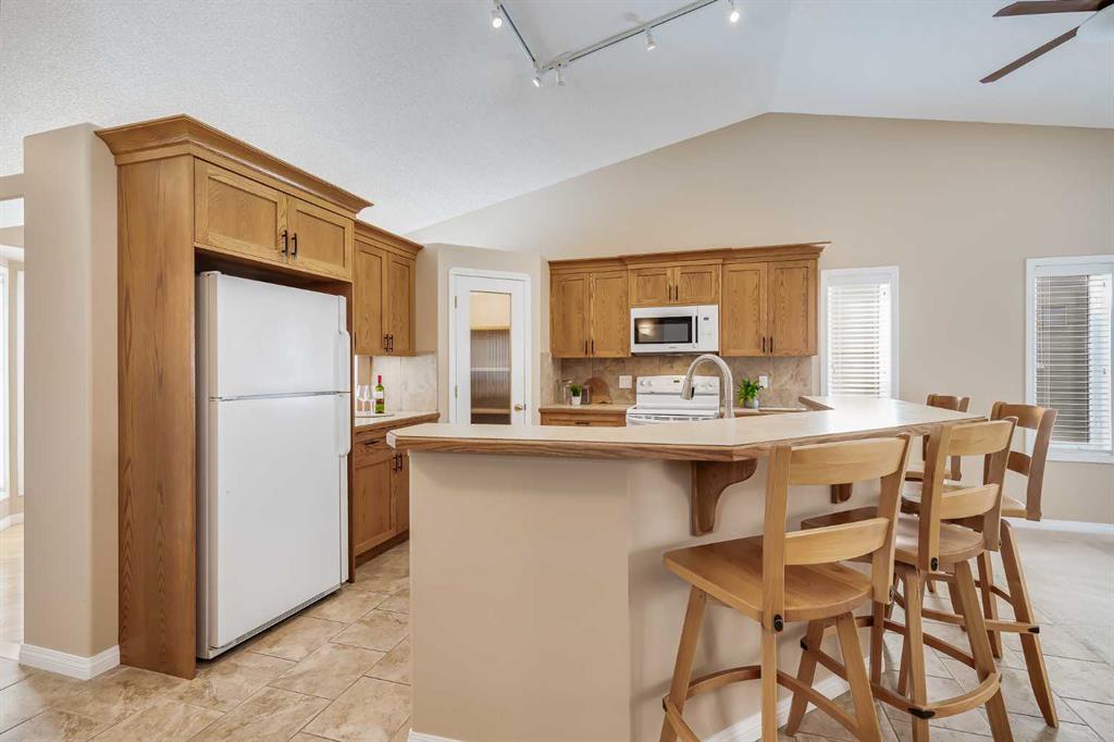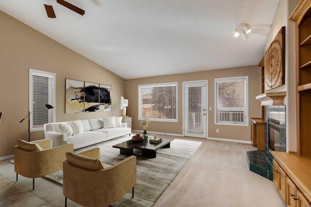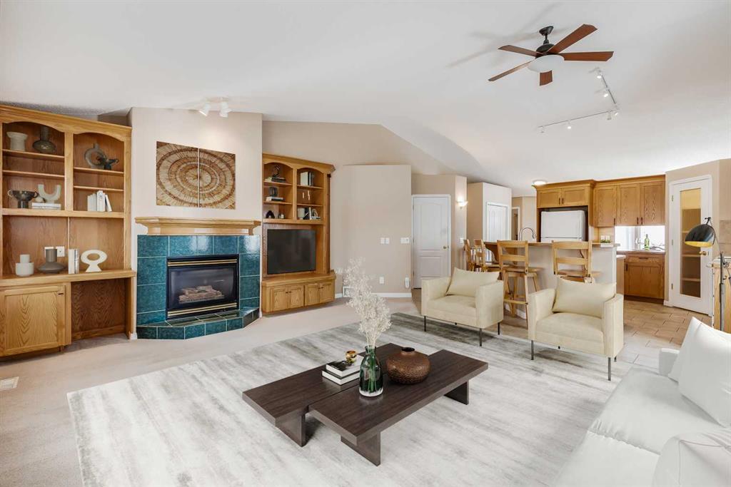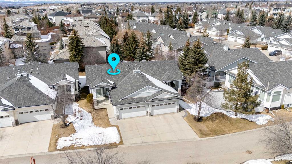 Located in the sought-after community of Rocky Ridge, this bungalow villa offers over 2,700 sq ft of developed living space with the ease of maintenance-free living, including lawn care and snow removal. With three bedrooms, three full bathrooms, and a double attached garage, the layout is well suited for both everyday living and hosting. The main floor opens to a spacious entry, where the dining room is conveniently situated just off the front of the home. French doors lead to the main floor office or flex room, complete with a built-in desk. From here, the layout flows naturally into the kitchen and living areas, where large windows bring in natural light and vaulted ceilings enhance the sense of space. The kitchen is thoughtfully designed with white appliances, a pantry, generous cabinetry, and a large island with seating, flowing comfortably into the living room. A gas fireplace with built-ins anchors the space, and access is provided to a balcony with a privacy wall, offering a comfortable outdoor area to enjoy a morning coffee or sit and relax while taking in the surrounding views. The primary suite is positioned to take advantage of the surrounding greenspace, with a bay window and 10-foot ceilings adding to the sense of space. It includes a well-appointed ensuite with a soaker tub, separate shower, and a walk-in closet. A four-piece bathroom and a practical mudroom with a stacked washer and dryer complete the main level. The fully developed basement expands the living space with a large recreation room featuring a second gas fireplace and a wet bar, making it ideal for entertaining or relaxing. Two additional bedrooms and another four-piece bathroom provide flexibility for guests or family members. A dedicated storage room with shelving and a workstation, along with central vacuum, adds everyday convenience. Pets are permitted with board approval, allowing for up to two. The location offers immediate access to pathways, parks, and playgrounds, along with the amenities of the Rocky Ridge Ranch Homeowner’s Association, including a lake, tennis & pickleball courts, skating rink, and splash park. Nearby shops and amenities include Calgary Co-op and Crowfoot Crossing, schools in Royal Oak, and recreation at the Shane Homes YMCA. Commuting is straightforward with access to major routes and the Tuscany LRT station, connecting to the University of Calgary, SAIT, and downtown. Additional destinations such as Market Mall, Foothills Hospital, Alberta Children’s Hospital, Bowness Park, and Winsport are just a short drive away, with the mountains close at hand. Take advantage of your opportunity to see this incredible property in person, book your showing today! Be sure to check out the floor plans and 3D tour for a closer look before your visit.