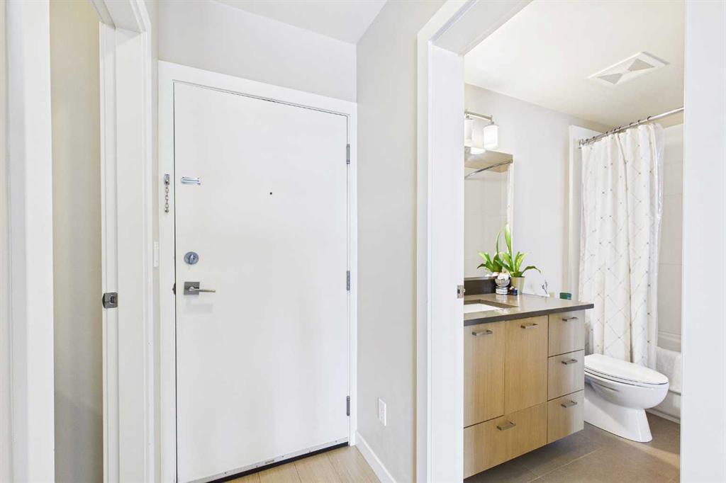 Experience the pinnacle of inner-city living in this stunning one-bedroom, one-bathroom sanctuary located in the prestigious community of Renfrew. Designed for the discerning urbanite, this condo blends contemporary elegance, convenience, sophistication and boasts a perfect view of Calgary’s downtown skyline. Modern Design & Finish with a minimalist vibe. Step into an open-concept layout defined by sleek, contemporary finishes and a sophisticated palette. The chef-inspired kitchen features flat-panel cabinetry with soft close precision, gas cooktop, premium stainless steel appliances, chunky shelves and sprawling polished quartz countertops that serve as both a culinary workshop and social centrepiece seamlessly flowing into a bright and airy living space. High ceilings and wide-plank flooring enhance the modern aesthetic, creating a home that is as functional as it is beautiful. The hidden gem of this residence is the unobstructed, panoramic view of the downtown skyline from either your bedroom or your main living space, its spectacular! Oversized windows flood the interior with natural light from the Southwest-facing balcony. Whether you’re sipping your morning coffee or hosting evening cocktails, you’ll have a front-row seat to Calgary’s most spectacular sunsets and the glittering lights of the city core. Minutes from the downtown core your commute will be short and your walks will be long as you stroll along our mighty Bow River and pathways system. Living in this building means enjoying a suite of premium amenities designed for a high-performance lifestyle. Skip the gym membership and stay active in the well-equipped, on-site gym. Convenient in-suite laundry and storage. Keep your vehicle secure and warm year-round in the heated parkade that includes a dedicated locker for your seasonal gear and outdoor equipment as well. Bike storage, visitor parking and we cant forget our furry friends a DOG and or CAR WASH. Renowned for its "small-town" feel with big-city proximity, Renfrew offers an unparalleled lifestyle. You are steps away from the trendy bistros of Edmonton Trail and 1st ave amenities, the lush pathways of Tom Campbell’s Hill, and a quick commute to the downtown core via bike, transit, car or a stroll. This is more than just a condo; it’s your private retreat above the city. Schedule your private showing today and see why Renfrew is the place to be in 2026.