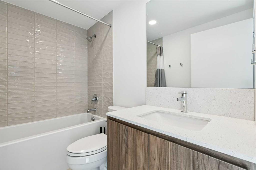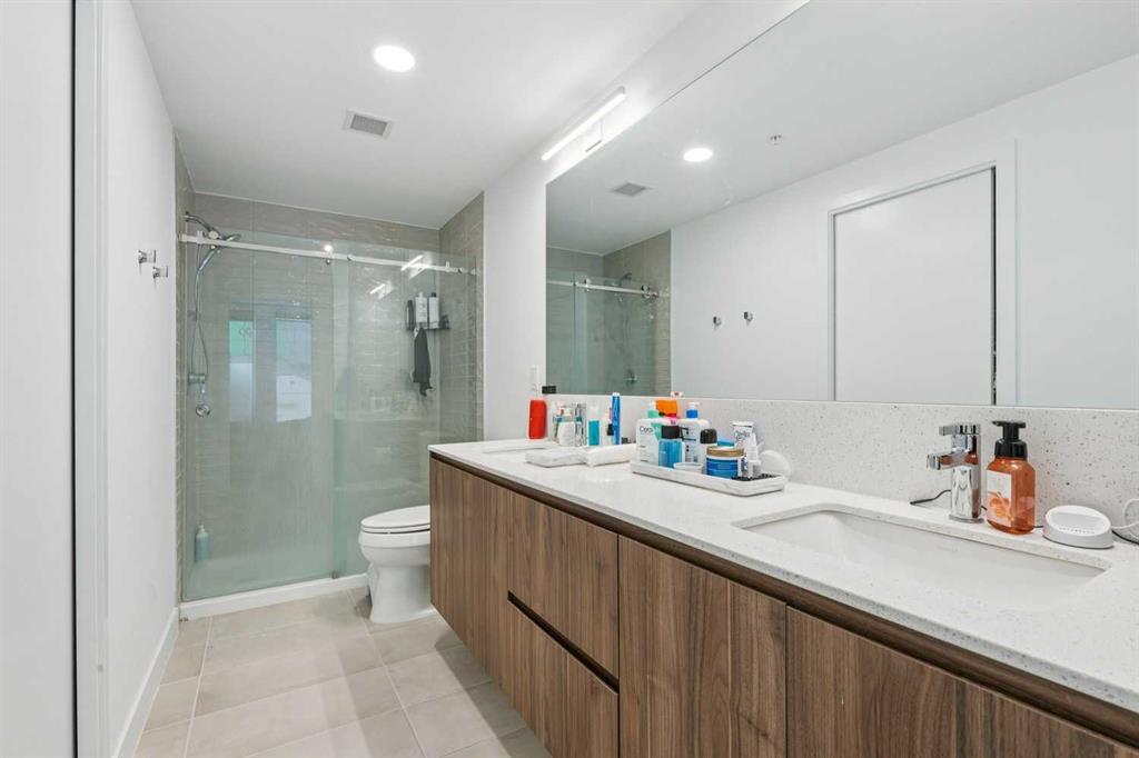 “The Essex” floorplan spans 900 sq. ft. with an expansive 160 sq. ft. balcony capturing the morning sun and downtown Calgary views. The thoughtfully designed open-concept layout is ideal for both everyday living and entertaining, featuring a sleek kitchen with high-end appliances, a gas stove, and a stunning waterfall quartz island. Large windows fill the space with natural light, creating a bright and inviting atmosphere throughout. The primary suite is complete with a dual-sink ensuite, while the second bedroom and full bath offer flexibility for guests or a home office.