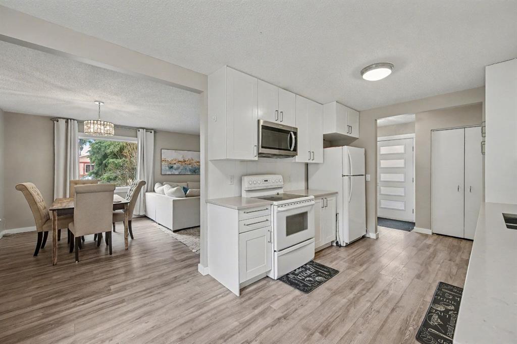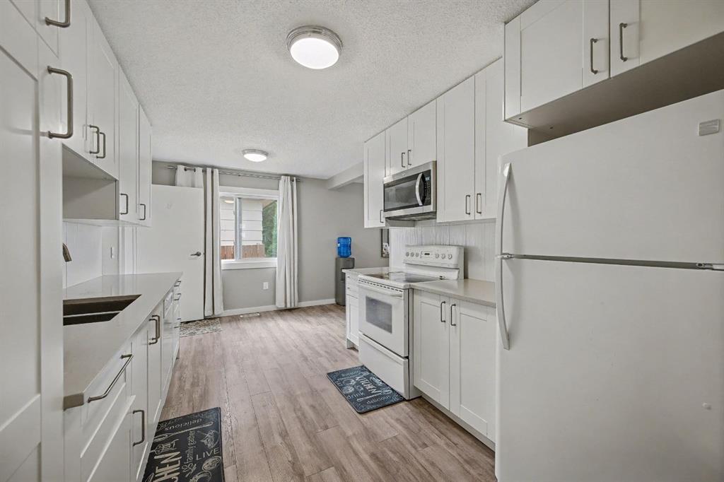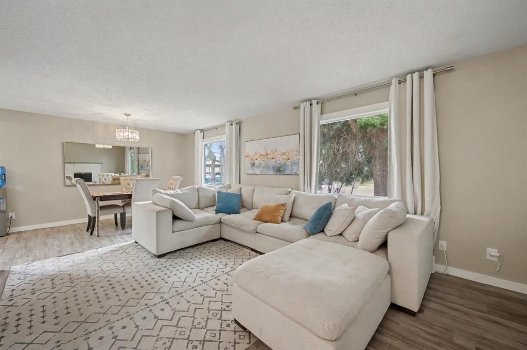SUNDANCE BUNGALOW! COMPLETELY RENOVATED MAIN FLOOR INCLUDING DOORS AND WINDOWS! LAKE ACCESS! A beautiful home on a Quiet Cul-de-sac in the sought after, community of Lake Sundance. The house has a completely RENOVATED main floor including flooring, kitchen, bathrooms, windows, doors, baseboards, and trim. The galley style kitchen offers bright and clean cabinetry with a lot of storage and access to the dining area, living room and access to the backyard through the side entry door. The living room has tons of light through the large west facing windows and is flanked by a nice white brick FIREPLACE for extra warmth when needed. The basement of this home is ready for your ideas and even has a rough in for a bathroom. There is a large side yard with a new perimeter fence with space to accommodate 2 cars on the rear parking pad. There is ample space for you to add your own 2 car garage in the future. The house is WALKING distance to Lake Sundance where you can enjoy a multitude of activities. Also nearby are schools, play fields, and Fish Creek Park.