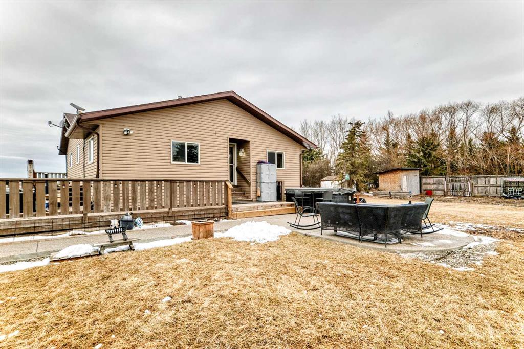Escape the city! Step into the lifestyle you’ve been dreaming of with this beautifully established 5.33-acre equestrian-ready acreage just minutes from Strathmore. This well-maintained 2231 total sqft 4-bedroom bungalow offers the comfort and convenience of main-floor living, ideal for families, downsizers, or anyone looking to enjoy the ease of country life. Surrounded by large mature trees of all varieties, established landscaping, and wrap around deck, the property provides exceptional privacy, garden set up, wind protection, and a peaceful setting you’ll appreciate year-round. Hot tub is included too! Designed with horse lovers in mind, the land features fenced and cross-fenced areas, auto waterers, paddocks, shelter, space for barn use, and future outdoor arena space, making it easy to bring your horses home and start enjoying acreage living right away. With 5.33 manageable acres, you get the perfect balance of usability and low maintenance. The oversized heated detached garage adds incredible versatility—perfect for a workshop, vehicle parking, or all your acreage and recreational equipment. Located in a highly desirable area only 15 minutes to Strathmore, you’ll enjoy quick access to schools, shopping, and everyday amenities, all while maintaining an easy commute to Calgary. Whether you’re looking for your first acreage, a hobby farm, or a peaceful rural retreat, this move-in ready property offers space, function, and lifestyle in one complete package. Bring your horses and start living your acreage life!