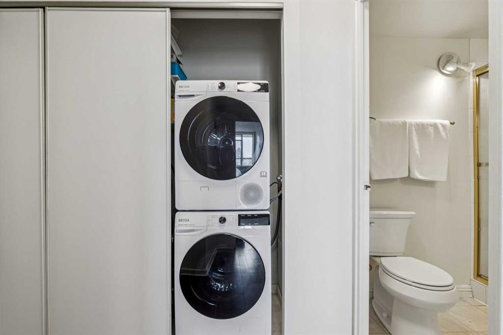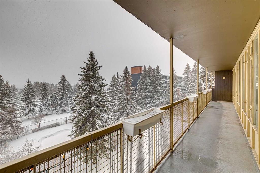 Situated in the desirable Rideau Towers, this bright + spacious two-bedroom apartment offers an comfortable lifestyle in a beautiful, park-like setting. The open-concept living + dining area is filled with natural light + finished in neutral décor + there are two generously sized bedrooms, a full bathroom + the convenience of en-suite laundry. Enjoy very pretty views overlooking the outdoor pool with mountain views beyond. This quiet, all-concrete building is well maintained + offers a strong sense of community. Residents enjoy an outdoor pool for summer use, along with the added benefits of underground parking + a dedicated storage room. The building is pet-friendly + the special assessment for upcoming balcony work has already been fully paid, providing additional value + peace of mind. Ideally positioned just off the ridge, the location offers incredible walkability to the pathway system + river, as well as easy access to Stanley Park, including its tennis courts + outdoor pool. The shops + restaurants of Fourth Street are just a short walk away + downtown remains easily accessible. Enjoy a quiet, nature-filled setting as well as urban convenience.