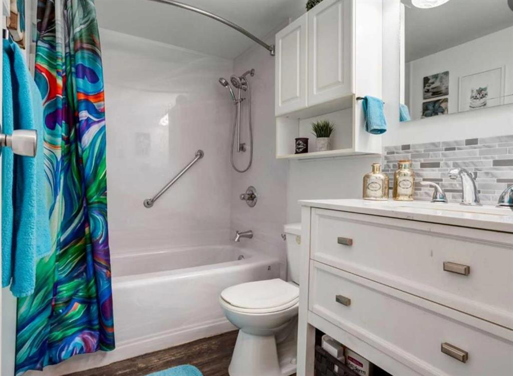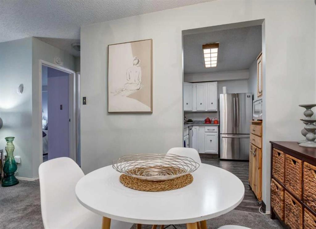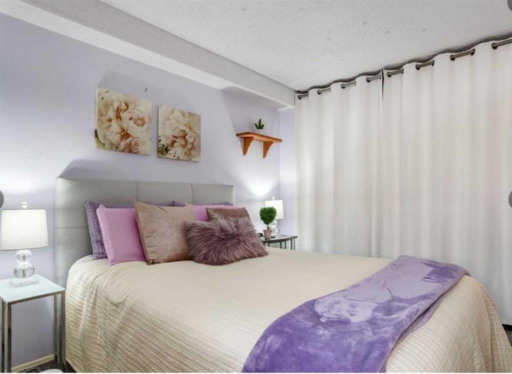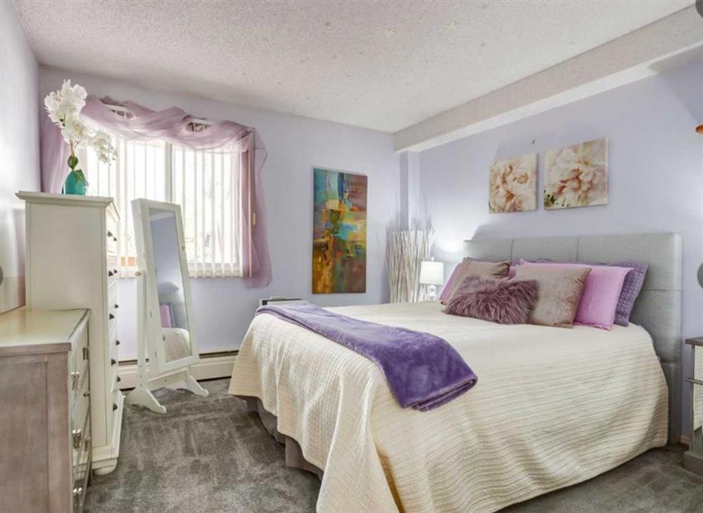 RARE OPPORTUNITY TO OWN AN UPDATED 1 BED IN A HIDDEN GEM LOCATION! Amenities include a gym, tennis and pickle ball courts, event room with full kitchen, shared library, indoor squash court, ping pong room, change rooms, playground and park areas, all for private residential use! Unique unit amenities include a huge storage room inside the unit that can easily fit a freezer and loads of storage, plus an exterior locked off storage room that is huge! Ideal for storing your winter tires or patio furniture. This main floor unit faces trees and a park and is quietly situated in the heart of the complex. Renovated with newer carpets and paint. Kitchen boasts higher end stainless stove and dishwasher, a French fridge and granite counters. The dining room is spacious. Huge living room with cozy corner wood fireplace (complex has decommissioned them but candles or electric inserts are permitted). Massive patio door lets in so much light. Cushy carpet was recently replaced. Master bedroom with double closet can easily fit a king sized bed. Bathroom has been updated with a modern vanity and tile details. Main floor means you can walk out of your patio right onto grass or even enter/exit the unit this way instead of through the building! Cats permitted, no dogs in the complex. Secure intercom access. Shared laundry on the second floor. One surface parking stall with plug in is included. Additional parking can be rented at $60.month from the management. DON'T MISS OUT ON THIS GEM OF A UNIT LOADED WITH AMENITIES! Condo fee includes all amenities (gym, courts, part rooms) heat, water, and snow removal. Vacant possession available July 2, 2026. No short term rentals permitted.