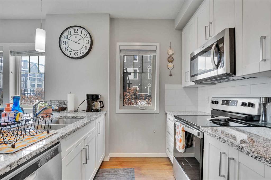 This 2 bed & 2 bath corner condo unit is built by a 2-time Multi-Family Builder of the year. Sandgate was expertly designed to be rich in character, design & livability, both inside your home & outside. Walking into the home you'll appreciate the updated paint, high ceilings & wide plank laminate flooring. The primary suite has a huge window for light, a good sized walk in closet and an ensuite featuring quartz counters, generous wall cabinet and walk-in shower. The other bedroom features a sunny window for plenty of light & large closet. The incredible kitchen has all that you need, a full stainless steel package and an oversized island. Conveniently located next to the living room is the patio door that leads onto your sunny patio that's perfect for your summer BBQs. The underground parkade with a titled stall and storage is great for those cold winter days. The vibrant community of Mahogany has it all, easy walking distance to all amenities of Westman Village with shops and restaurants, groceries, and more. It is also walking distance to the amazing Mahogany Lake where you'll enjoy the beaches, The Beach Club with tons of activities for the family to enjoy. This location has easy access to both Deerfoot Trail and Stoney Trail. What are you waiting for? This could be the Home you have been waiting for!