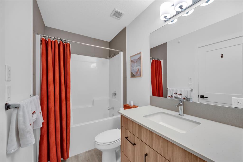 The well-designed floor plan offers excellent separation between bedrooms, ideal for privacy, roommates, guests, or a home office setup. The spacious primary bedroom includes a walk-through closet and a private ensuite featuring a fully tiled walk-in shower, adding a touch of luxury and comfort. The second bedroom is generously sized and conveniently located near the second full bathroom.