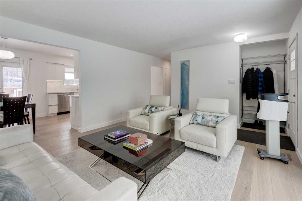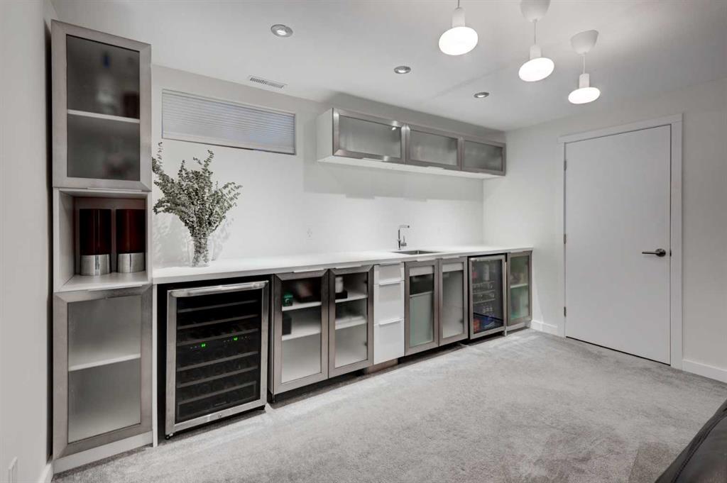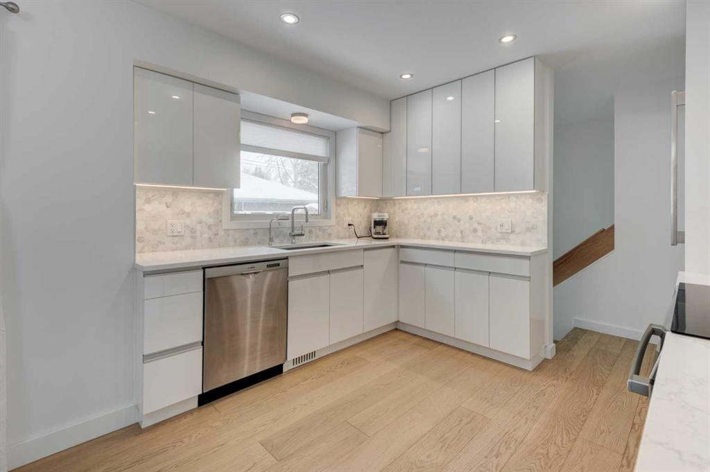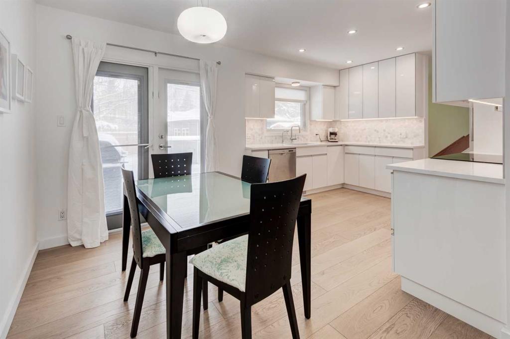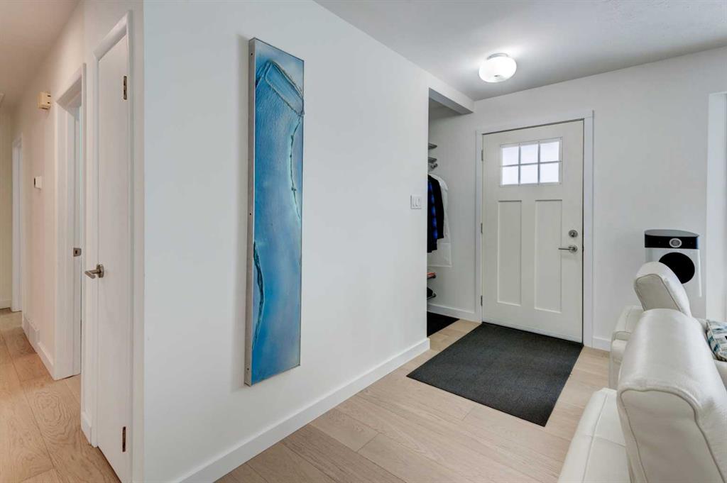 Welcome to a truly exceptional, architecturally enhanced bungalow nestled on a quiet street in the desirable community of Glenbrook, just steps from Glenbrook School. Thoughtfully reimagined with a focus on modern design and performance, this residence seamlessly blends high-end finishes with everyday comfort. Over 1850 sqft on two levels, this home features 4 total bedrooms, 2 full bathroom and an oversized double garage. Striking curb appeal is defined by a fully modernized exterior featuring a complete rainscreen system with Prodema Prodex cladding and locally sourced Rundle stone, while triple-glazed, low-E windows provide exceptional energy efficiency and year-round comfort. A cast-in-place concrete walkway elegantly frames the home, wrapping from front to back. Inside, the home showcases white oak engineered plank flooring throughout and a sophisticated, contemporary aesthetic. The designer kitchen is outfitted with custom white Schenk cabinetry, a built-in refrigerator, induction cooktop, and a premium appliance package from Bosch. Updated lighting—including statement glass fixtures and LED pot lights—adds a distinctive and modern ambiance. Both bathrooms have been beautifully appointed with heated stone tile floors, wall-hung toilets, and sleek, spa-inspired showers. The fully developed lower level is designed for entertaining, featuring in-wall speakers and a stylish beverage centre complete with versatile under-cabinet refrigeration. Mechanical upgrades include a high-efficiency furnace, central air conditioning, tankless hot water system, and an updated electrical system with a 200-amp panel in the garage—offering both peace of mind and long-term efficiency. Outdoor living is equally impressive, with garden doors leading to an oversized west-facing composite deck with glass railings, thoughtfully designed for a future covered structure. The private yard is beautifully landscaped with mature weeping birch trees, seasonal plantings, and cedar fencing with lattice detailing for added privacy and charm. The oversized, heated, and insulated garage is a standout feature, complete with glazing for natural light and security, as well as additional storage space including attic access. This is a rare opportunity to own a meticulously upgraded, design-forward home in one of Calgary’s most established and convenient inner-city communities.