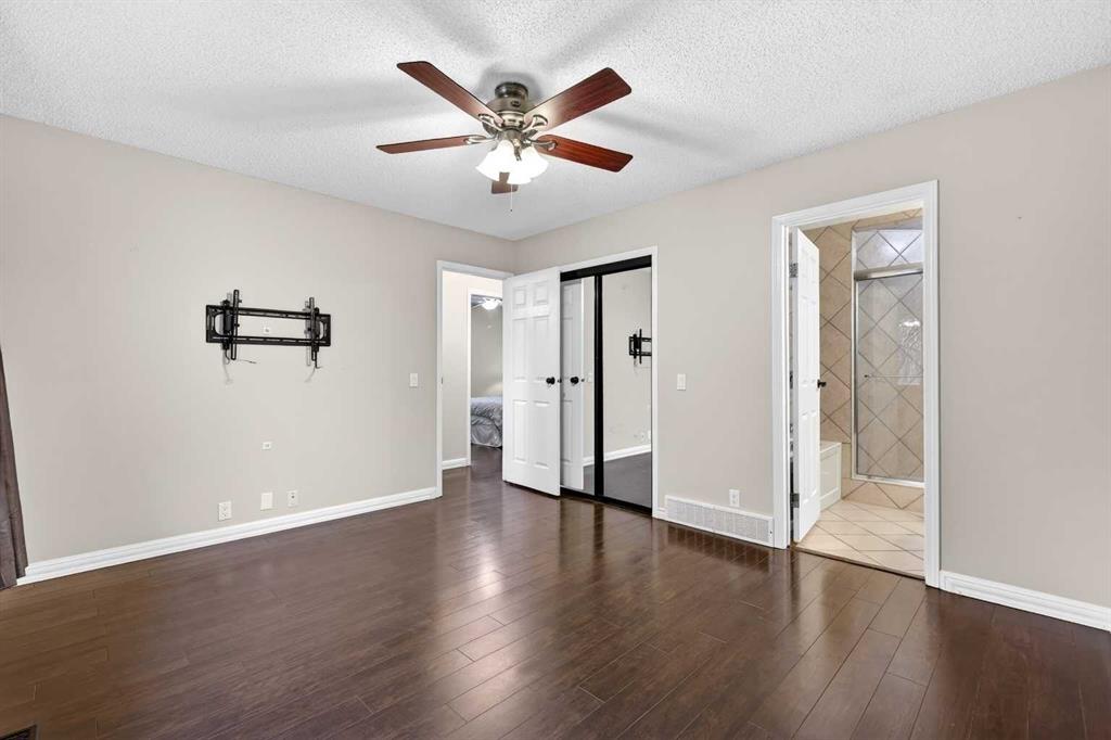 A privacy door at the main entrance leads to the fully finished lower level, providing excellent flexibility for extended family, guests, or potential development into an illegal suite with minor modifications. This warm and welcoming space features plush carpeting, large windows, and a spacious family room anchored by a wood-burning fireplace with log lighter, mantle, and tile surround. The included sectional couch, entertainment unit, and piano make the room feel complete and ready to enjoy. A fourth bedroom with a large window and closet, along with a Jack and Jill four-piece bathroom, adds to the functionality and comfort of the lower level.
