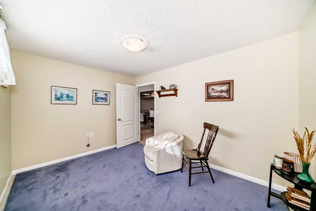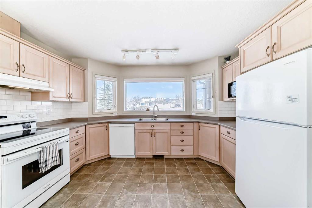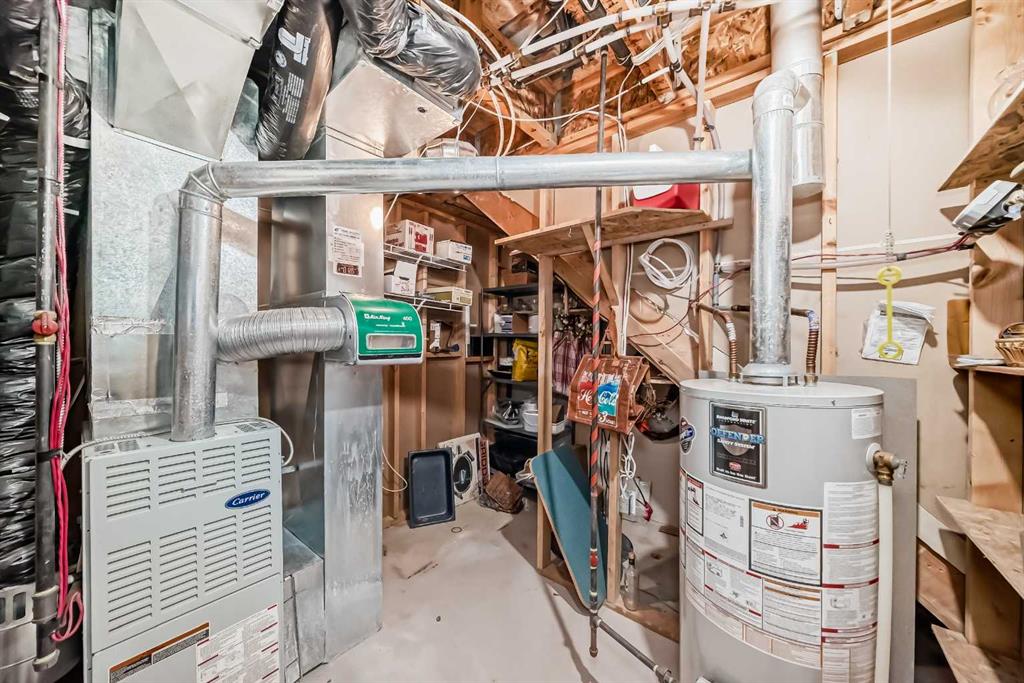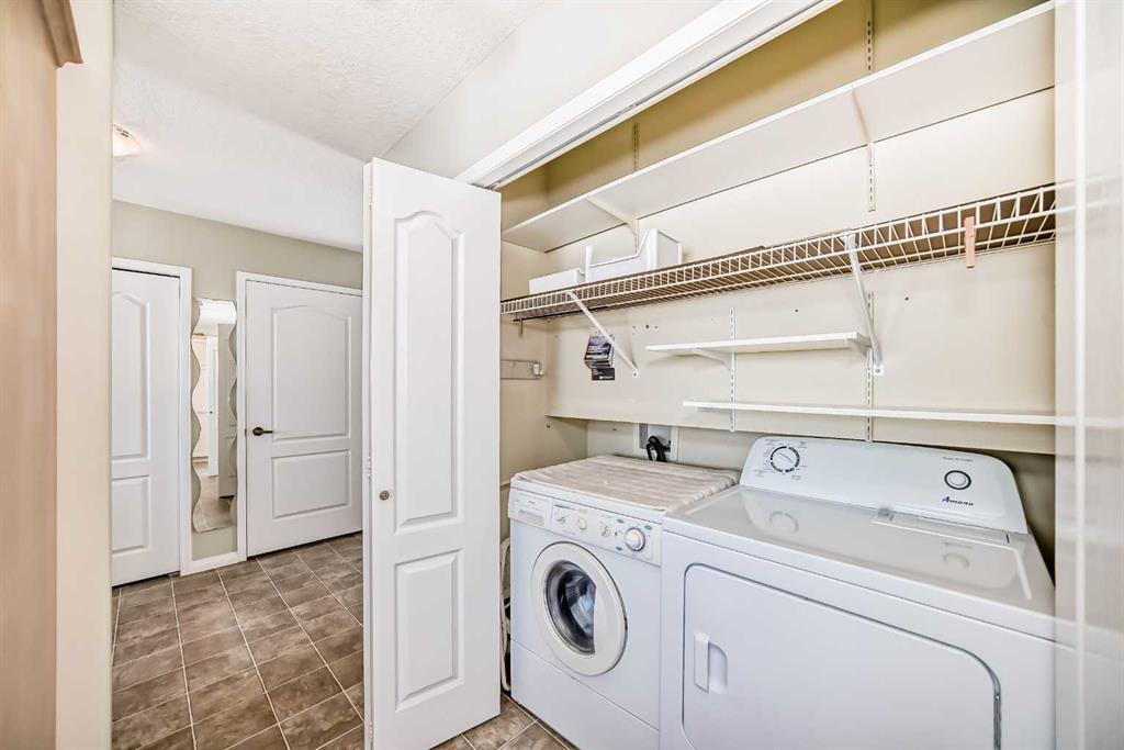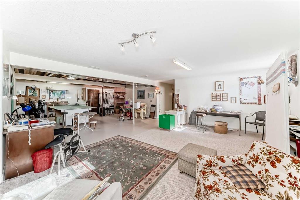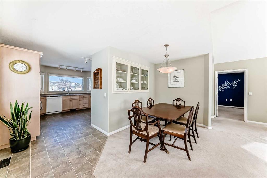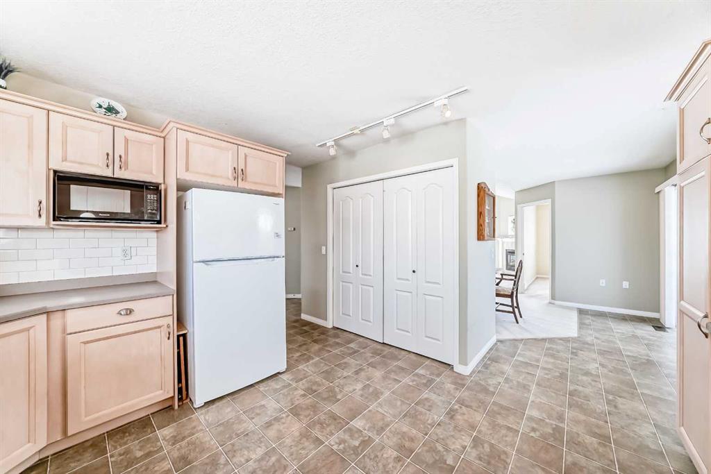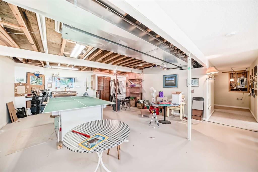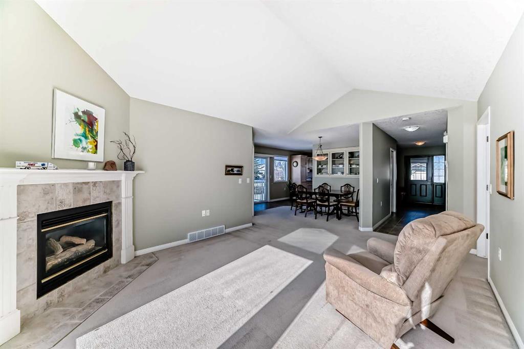 Welcome to quiet living in Prince of Peace Village. Country living beside the Calgary city limits. A 55+ adult complex with 175 bungalow villas, some times referred to as Calgary's Oasis. Close to shopping, restaurants and medical facilities etc. This bright 1168 sq.ft bungalow has 2 bedrooms, 2 full bathrooms, a spacious kitchen with plenty of cupboard space and built-ins, a bright dining room, a large living room with a gas fireplace, a laundry room, all on the main floor. A full basement, partially completed and RI plumbing for a full bathroom and a 3rd bedroom. The furnace, hot water tank and sump pump are all covered in the condo fees for repair and/or replacement. A single front drive garage has a long driveway for guest or additional parking. The location of this unit is unique in that it backs onto a natural pond and the entire village has miles of walking paths with resting benches along the way. This unit is easy to show and is available for quick possession