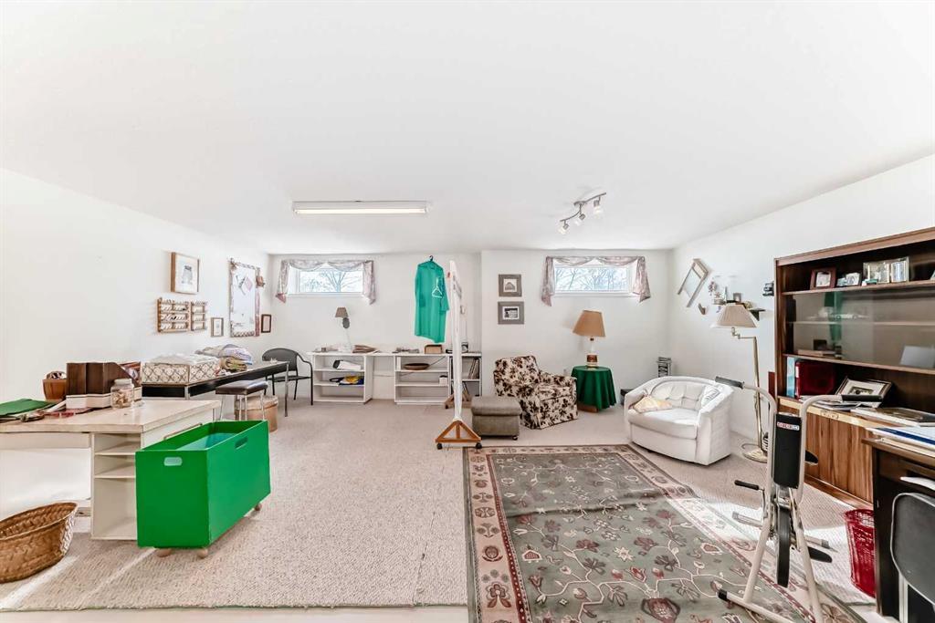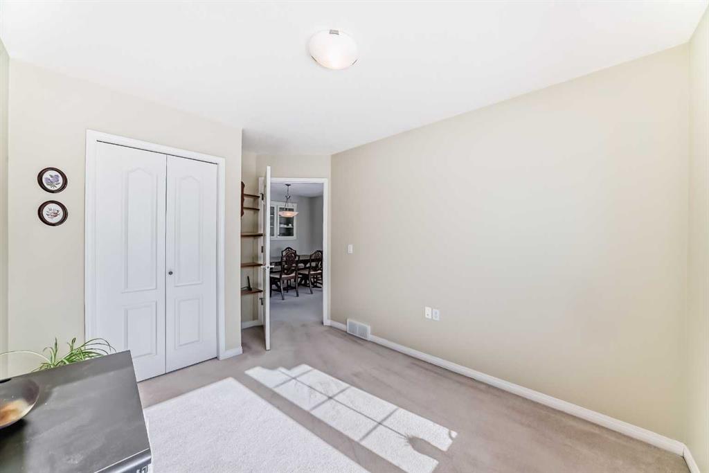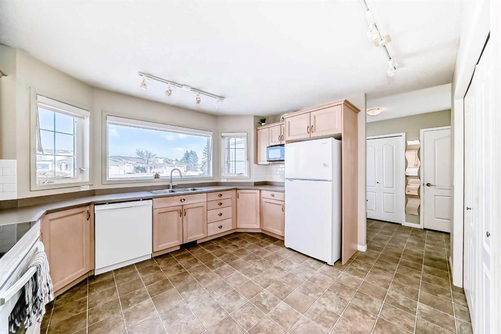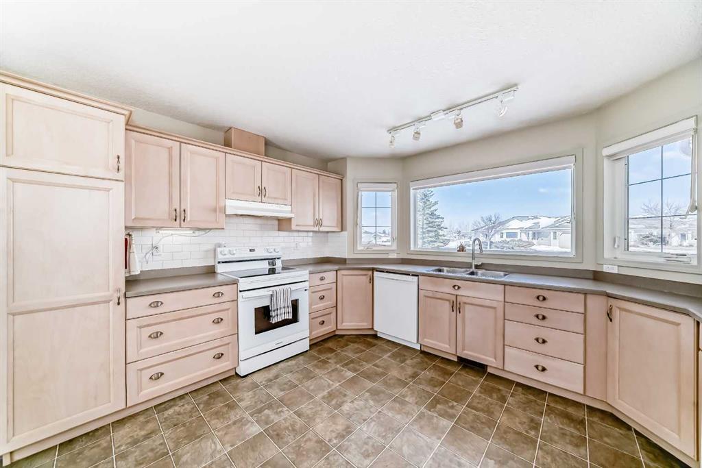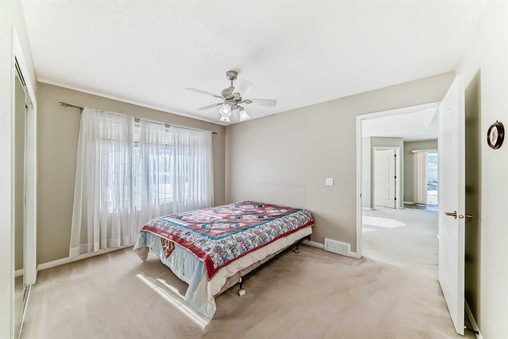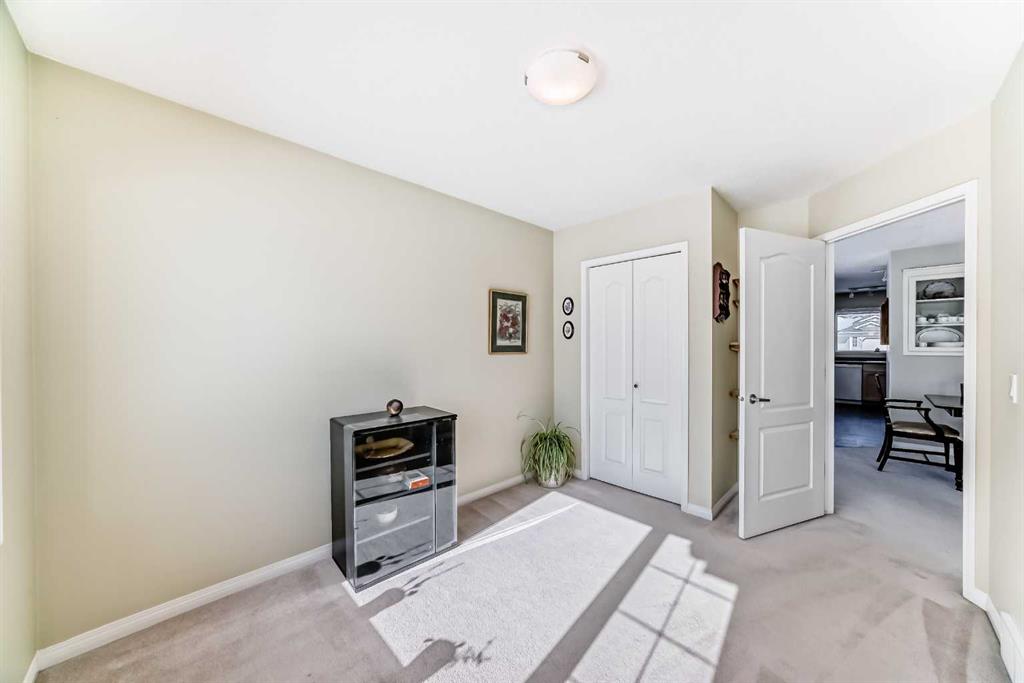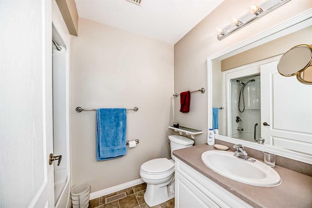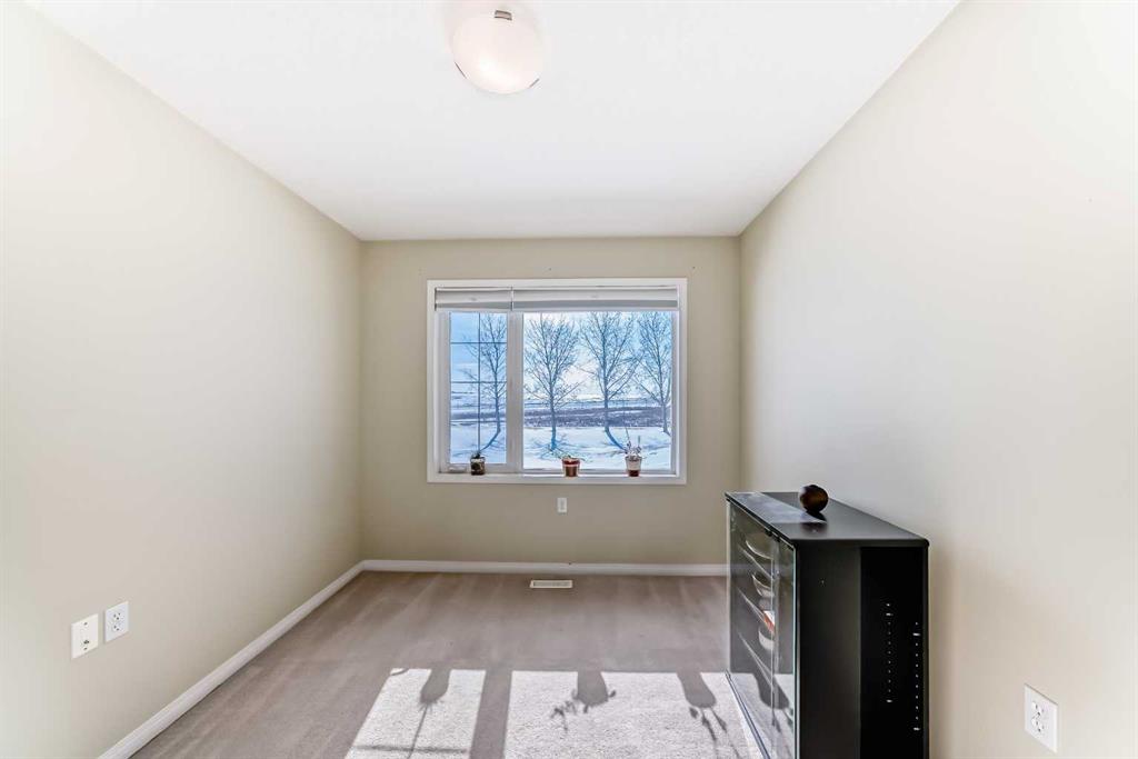 Welcome to quiet living in Prince of Peace Village. Country living beside the Calgary city limits. A 55+ adult complex with 175 bungalow villas, some times referred to as Calgary's Oasis. Close to shopping, restaurants and medical facilities etc. This bright 1168 sq.ft bungalow has 2 bedrooms, 2 full bathrooms, a spacious kitchen with plenty of cupboard space and built-ins, a bright dining room, a large living room with a gas fireplace, a laundry room, all on the main floor. A full basement, partially completed and RI plumbing for a full bathroom and a 3rd bedroom. The furnace, hot water tank and sump pump are all covered in the condo fees for repair and/or replacement. A single front drive garage has a long driveway for guest or additional parking. The location of this unit is unique in that it backs onto a natural pond and the entire village has miles of walking paths with resting benches along the way. This unit is easy to show and is available for quick possession