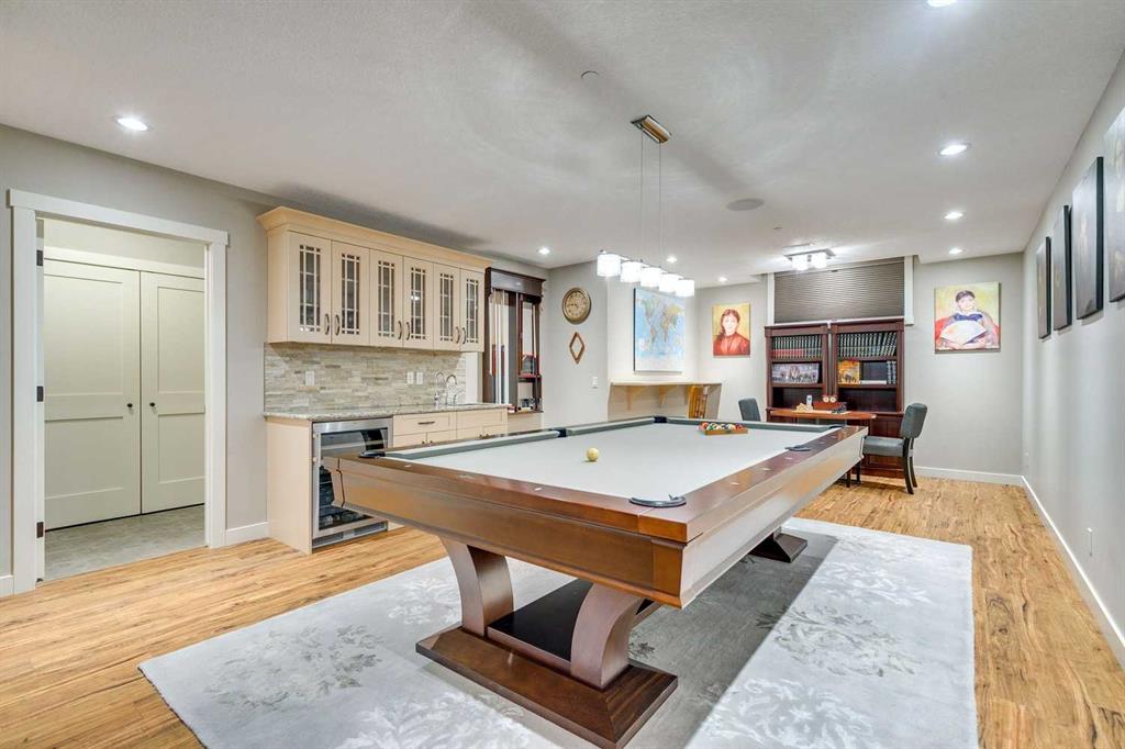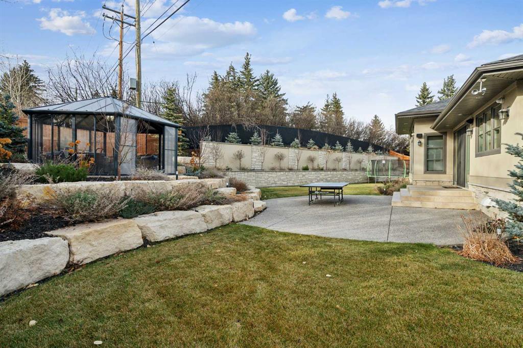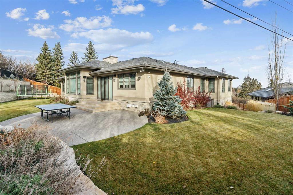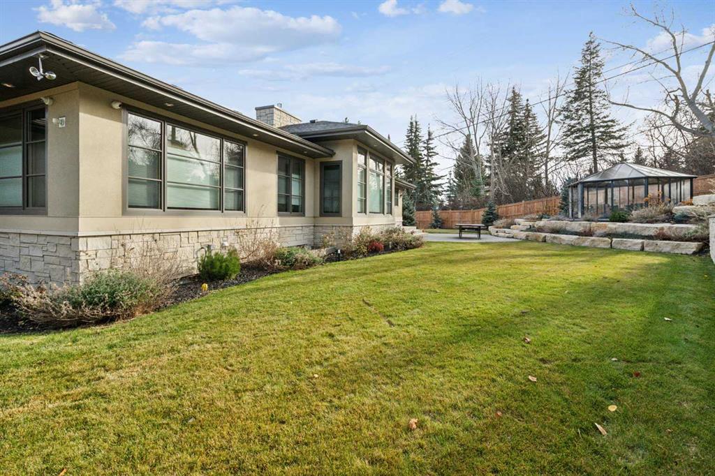 Discreetly positioned at the end of a quiet cul-de-sac in the prestigious enclave of Pump Hill, this remarkable inner-city estate presents an exceptional offering defined by scale, privacy & architectural refinement. Known for its estate sized lots, mature tree canopy & enduring prestige, Pump Hill remains one of Calgary’s most distinguished residential communities. Set behind elegant wrought-iron gates, the residence unfolds across an expansive 19,580 sq. ft. lot, surrounded by manicured gardens, mature trees & tiered limestone landscaping - creating a serene, resort-like setting rarely found within the inner city. Spanning nearly 5,000 sq. ft of impeccably designed living space, the home is curated for refined daily living & sophisticated entertaining. A Cambridge elevator discreetly connects all levels, while 6 bedrooms, 6 bathrooms, 2 spacious dens & multiple living areas provide exceptional comfort & flexibility. At the heart of the home, the grand living room commands attention with 11-foot ceilings, a striking limestone fireplace & expansive windows that bathe the space in natural light while framing tranquil views of the private grounds. The chef’s kitchen is both elegant & highly functional, featuring a substantial statement island, premium finishes & generous workspace designed to accommodate everything from family meals to large-scale entertaining. Flowing seamlessly from the kitchen, the formal dining area is ideally proportioned to host gatherings with ease, offering a refined setting for dinner parties. The main level is further enhanced by a powder room & laundry area. One wing of the home offers a private family retreat, complete with a generous lounge, 4 well-appointed bedrooms, and 3 beautiful full bathrooms. The opposite wing is devoted to the primary suite, a serene sanctuary featuring walls of windows, a spa-inspired ensuite & a spacious walk-in closet. A nearby den provides the ideal setting for a private office, library, or additional bedroom. A grand staircase descends to the lower level, where custom double wood doors open into an elegant foyer. This level continues the home’s elevated lifestyle with a spacious home office, a 6 bedroom with full bath & an expansive recreation & entertainment area. The games room offers generous proportions for billiards, while the adjacent media room creates a refined cinematic experience. A large mudroom provides direct access to the heated 4-car garage, equipped with 3 EV charging stations. The estate is further enhanced by an advanced security system, full-property generator, fire suppression system & thoughtfully integrated accessibility features. Outdoors, the secluded backyard backs onto green space & is beautifully landscaped with architectural stonework, an expansive patio for alfresco entertaining & a charming summer house. An estate of this caliber, privacy & distinction is rarely available in Pump Hill - offering timeless luxury in one of Calgary’s most established & prestigious neighbourhoods.