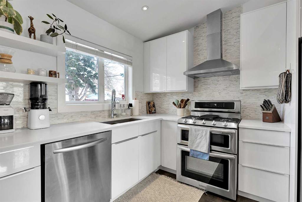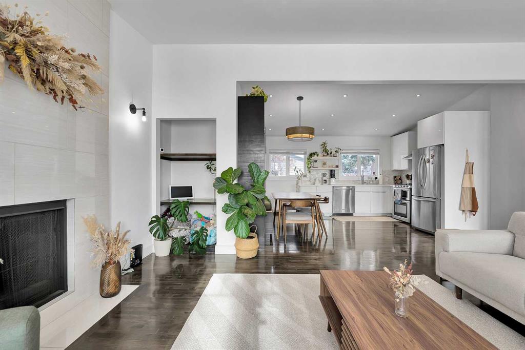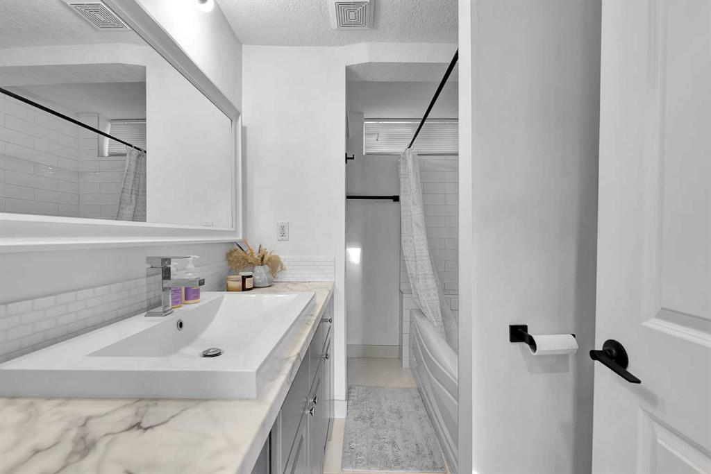 Charming home in a prime Brentwood location—just a short walk to the LRT and a quick 5 minute drive to the University of Calgary. Enjoy the convenience of nearby schools, baseball fields, and an off-leash dog park, making this an ideal setting for families and outdoor enthusiasts alike. Bright and open, this home features a spacious kitchen with quartz countertops, stainless steel appliances, upgraded lighting, ample cabinetry, and a vaulted ceiling. The inviting living area showcases a tiled fireplace, while the main floor offers three well-sized bedrooms and a beautifully renovated bathroom complete with a soaker tub, dual sinks, and heated floors. Hardwood flooring and modern light fixtures run throughout the main level.