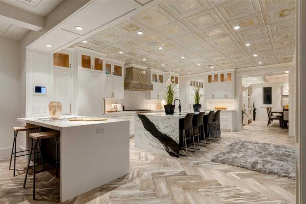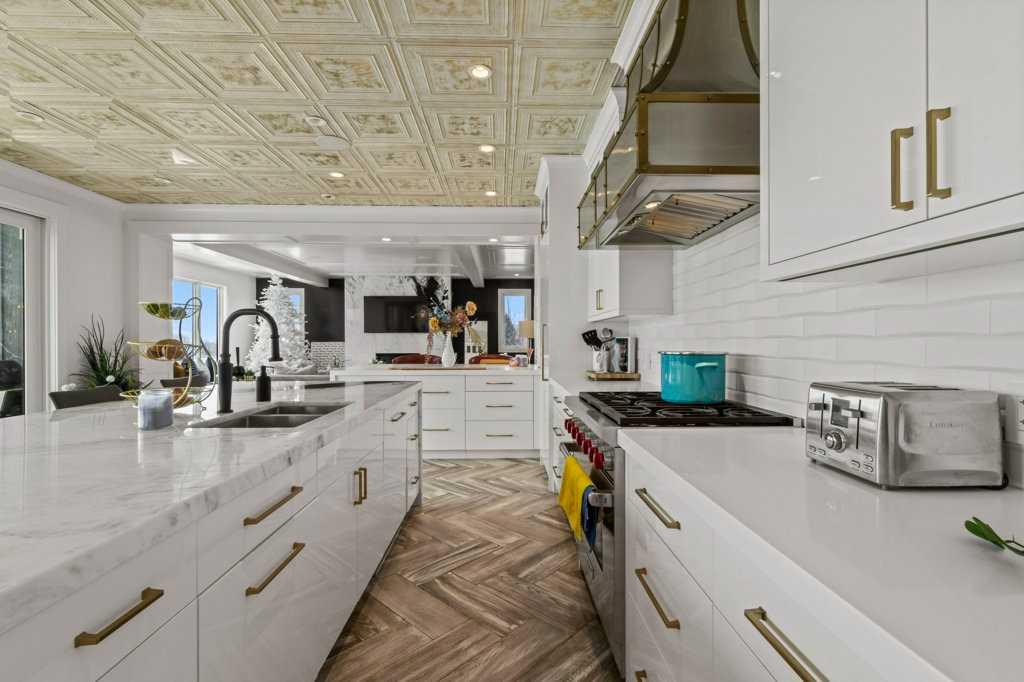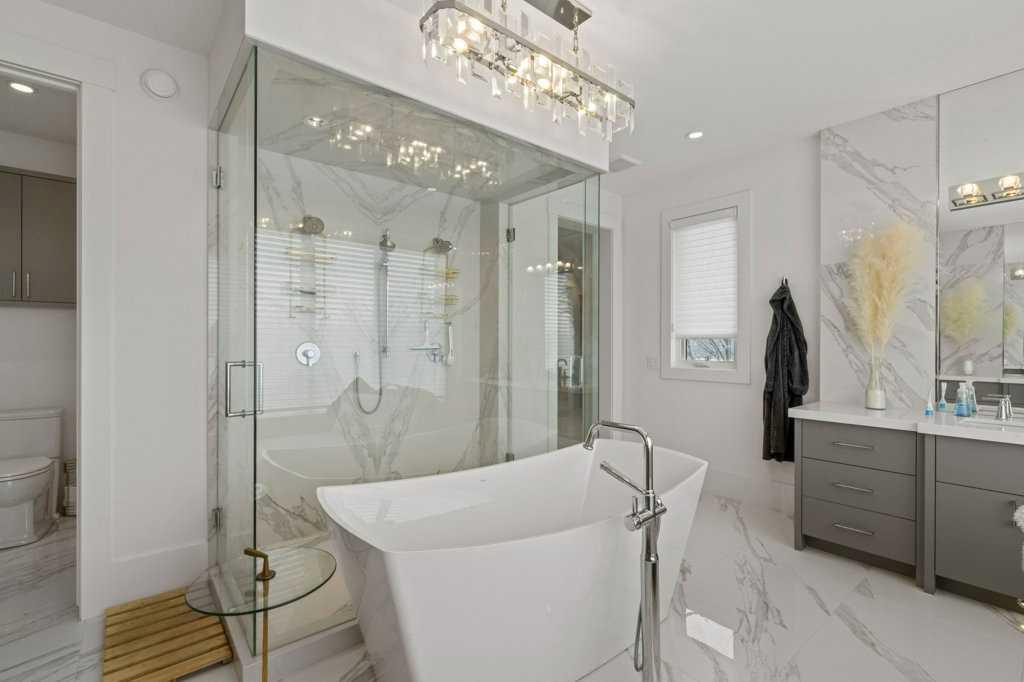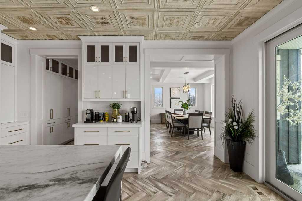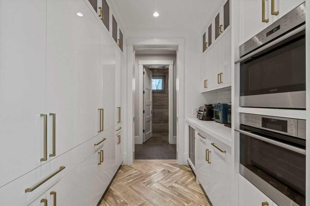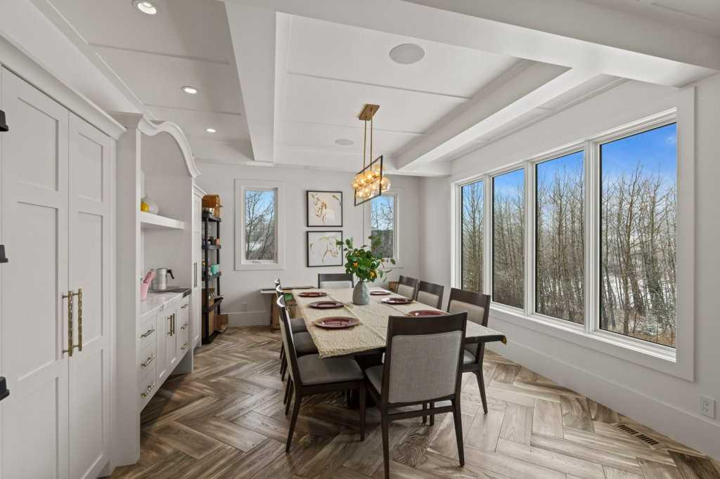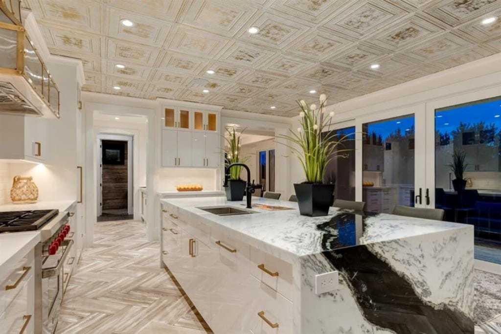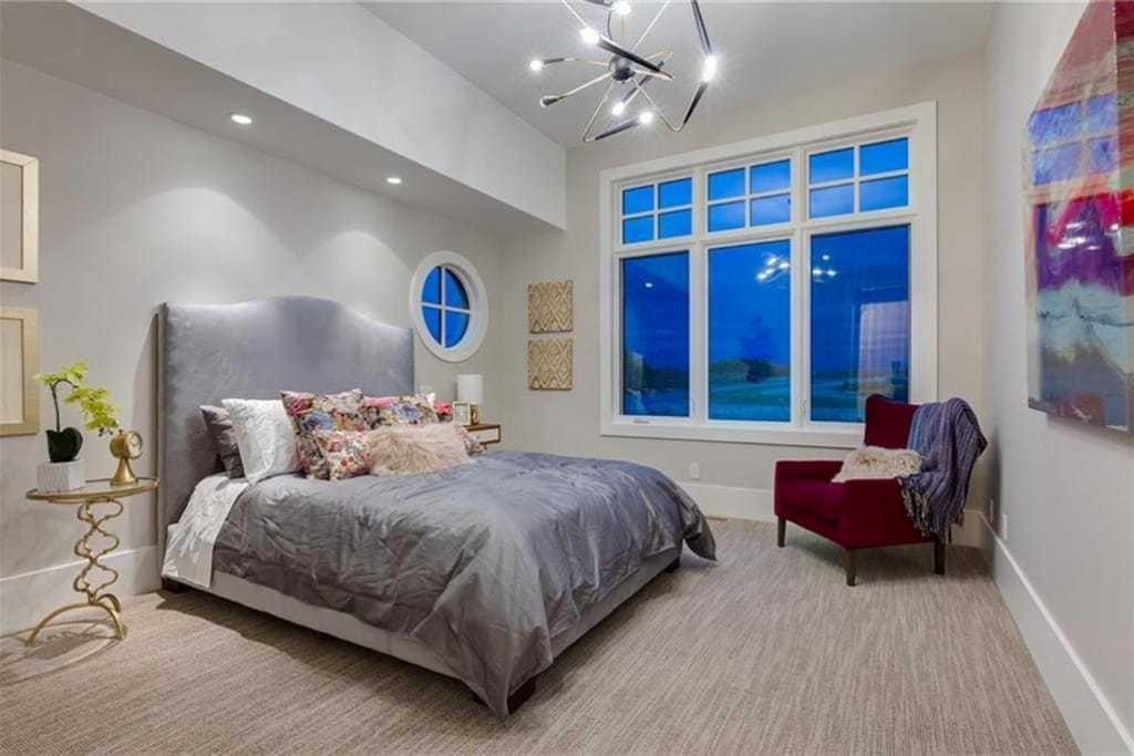 Welcome to The Vale, an architectural masterpiece by the renowned McKinley Masters. This one-owner, former show home represents a pinnacle of elegance, privacy, and superior craftsmanship. Situated within the prestigious Silverhorn community, the estate offers a perfect harmony of high-tech modern amenities and the tranquil beauty of Bearspaw’s rolling hills. From the moment you approach the elegant board-and-batten exterior—highlighted by full-bed sandstone, triple-glazed windows, and cedar garage doors—it is clear that every detail has been meticulously curated for the discerning homeowner. The grand entrance sets a tone of opulence, featuring a handcrafted front door with a forged iron canopy that opens into a foyer graced by a custom solid oak armoire. You are immediately captivated by the home's crown jewel: an award-winning circular staircase with bespoke iron railings. The main floor flows effortlessly through an open-concept layout, where custom herringbone wood floors lead you to a Great Room anchored by a marble feature wall and a built-in gas fireplace. Large windows throughout the level ensure that the breathtaking views of the surrounding treed areas and hills are always the centerpiece of your living space. For the culinary enthusiast, the kitchen is a dream come true. It artfully blends traditional and modern finishes, featuring an oversized marble waterfall island and a secondary prep station that subtly defines the space. ?This kitchen is designed for both high-end catering and intimate family breakfasts. The adjacent formal dining room provides a sophisticated atmosphere for hosting, while the nearby powder room exudes warmth with its custom floating vanity and wood-paneled walls. The upper level is a sanctuary of comfort, characterized by barrel ceilings, accent lighting, and custom iron chandeliers. The master retreat is a true "spa-at-home" experience, featuring floor-to-ceiling windows, a cozy sitting area, and a pop-up TV. The ensuite melts away the stress of the day with heated floors and a cedar-clad walk-in closet. This level also includes ?t?hree additional ?bedrooms? with walk in closets and a family sized laundry room. Steps away the oversized main bathroom is a standout feature in itself, boasting double floating vanities and an impressive private custom shower area. The walk-out basement is a bright and cheerful entertainment hub, complete with a custom bar? and a media area with barn board detailing. Even the functional spaces of this home are extraordinary; the mechanical room is a masterpiece of engineering, connected by a private staircase to an oversized garage. This garage is unlike any other, featuring epoxy-coated heated floors, ample built-in cabinetry, and designer accents. Life in Silverhorn offers a unique blend of nature and technology. With 50% of the surrounding landscape protected, you can enjoy the serenity of untouched beauty just minutes from Calgary.