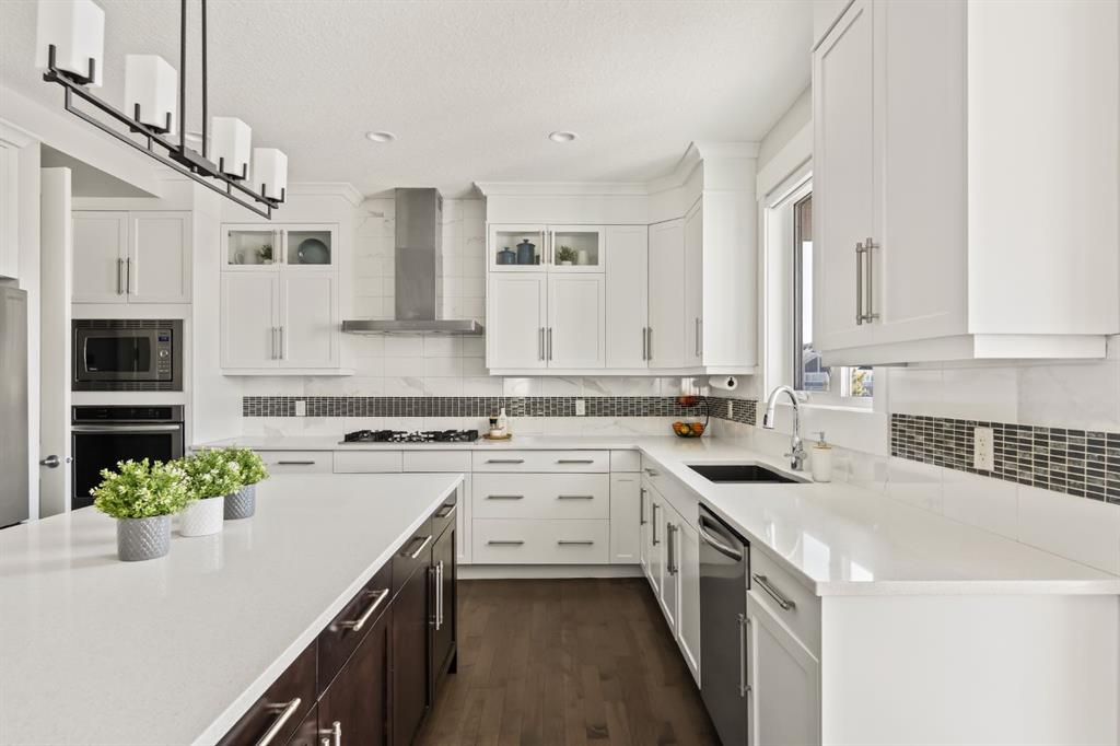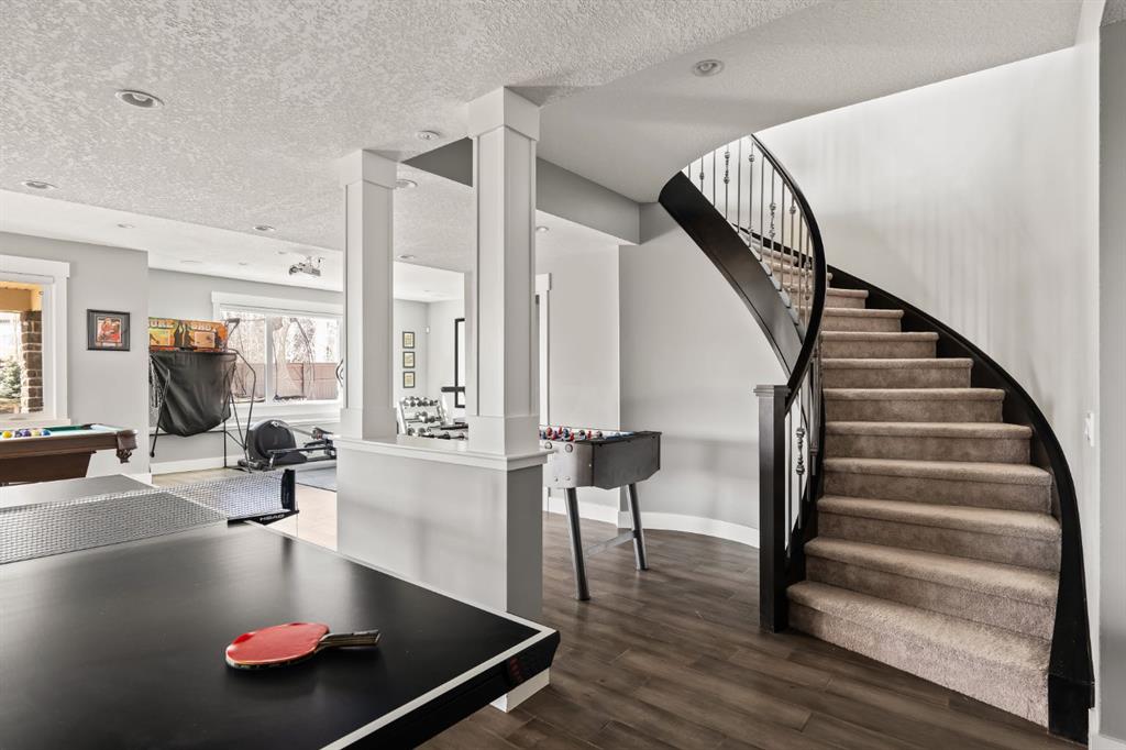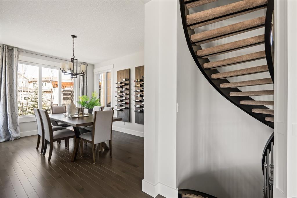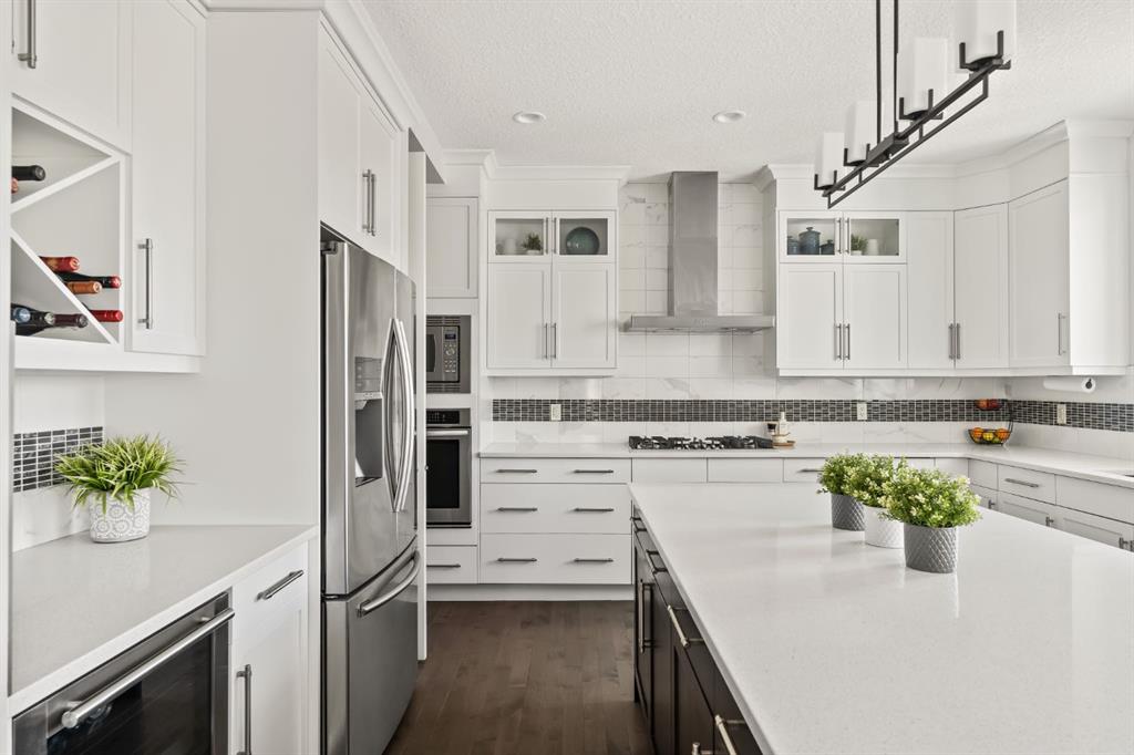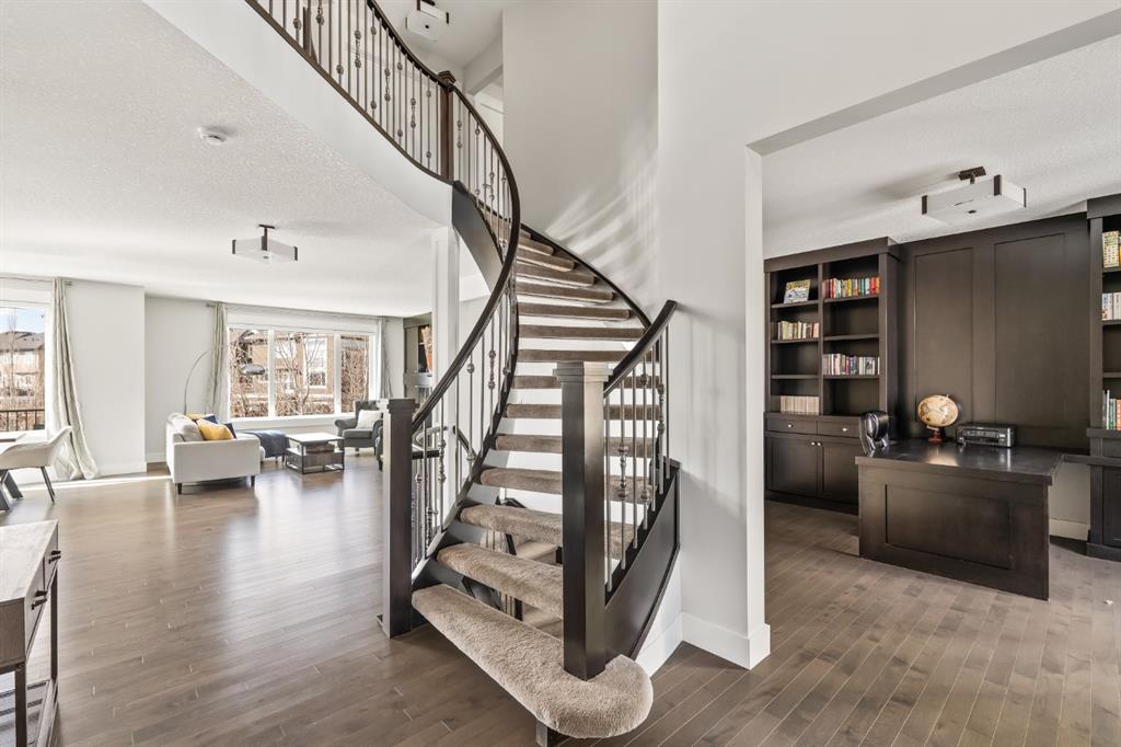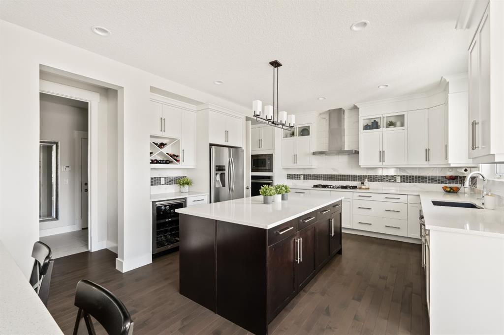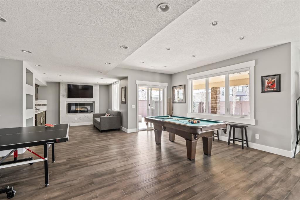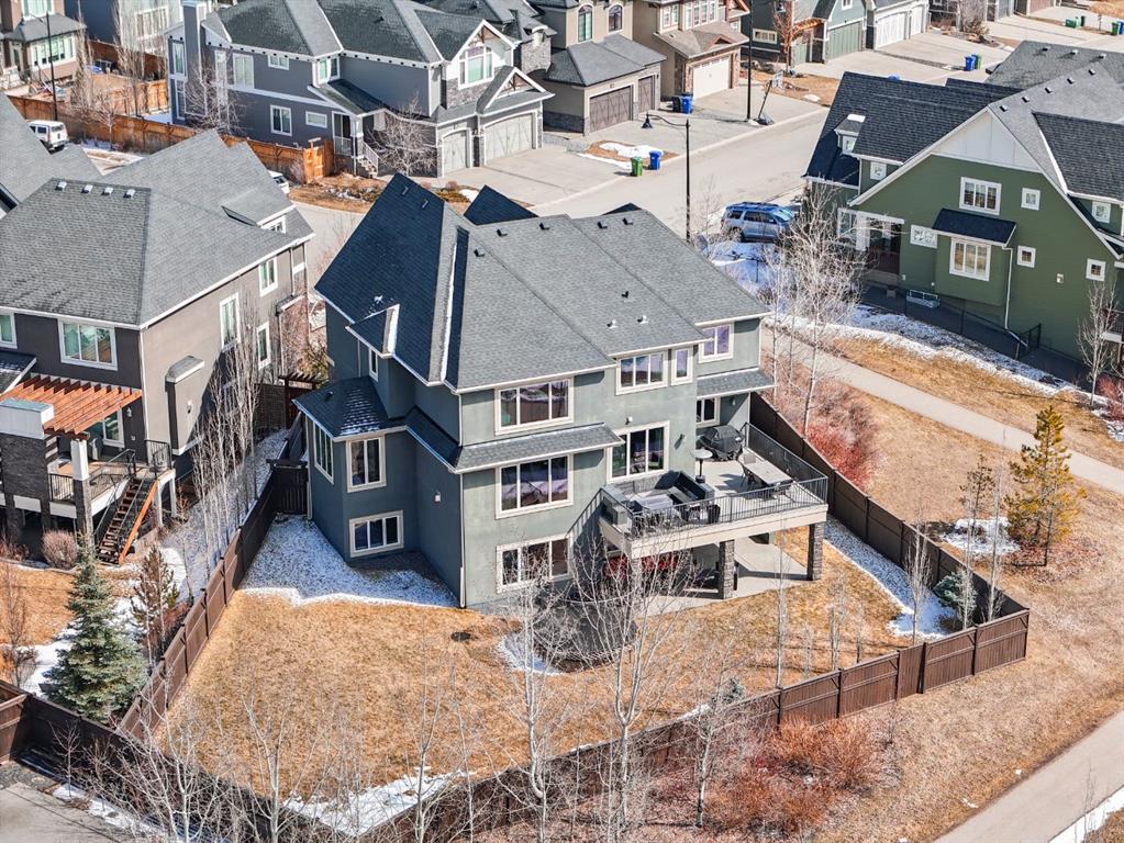 WOW!!! This is the PREMIER LOT in Aspen Vista, a 9,200 sq ft pie-shaped lot, a SW exposure BACKING a greenbelt with direct access to the walking paths - WOW! PLUS… mere steps to the many shops and services at Aspen Landing, a short walk to Rundle College and the kids could ride their bikes to Webber Academy… this is an exceptional location in Aspen Woods Estates – PRIVATE & QUIET! This two storey WALKOUT, measuring 4700+ sq ft over three levels, offers 4 beds and a fantastic Bonus Room up, 4.5 baths, a fully developed walkout with a wonderful open rec room and wet bar plus… a 5th bed and full bath down AND an OVER-SIZED 3 car garage! On arrival you will love the wide open plan on the main, and a volume of windows across the back which bath the home in the warmth of the sun, drawing you through – AMAZING! Highlights here include 9’ ceilings, maple hardwoods running through the main, open riser staircase connecting all three levels, designer lighting and window coverings, quartz countertops throughout, custom millwork, an engaging floor plan, a wonderful kitchen and more. On the main a wide open space for entertaining, leading directly to your expansive rear deck and SW exposure, while still offering intimate spaces for dining and study. The kitchen features white quartz countertops, full height cabinets, s/s appliances including a gas cooktop and wall oven, and a double island for in kitchen meals on the go. The kitchen is open to a generous breakfast nook and the living room with a designer feature wall and fireplace. There is a proper Dining Room, discreetly tucked away, an intimate space for family & friends and a striking Den/Home office at the entrance featuring a custom built-in desking and shelving. Follow the sweeping open-riser staircase upstairs where you will find a large Primary Retreat, which also enjoys the SW exposure overtop of the yard, and an inviting 5pc en suite – BRILLIANT! There three additional beds up, one of which enjoys a private en suite… and you will love the BONUS ROOM, tucked away at the end of a corridor. The walkout has been fully developed with a large rec room, fitness/media space, wet bar, a 5th bed and full bath… and of course direct access to the AMAZING rear yard…. a 9200 sq ft pie shaped lot provides a tremendous volume of space for the kids to run and play… or your own Stampede BBQ?
