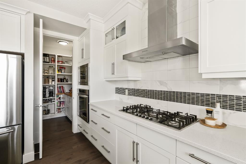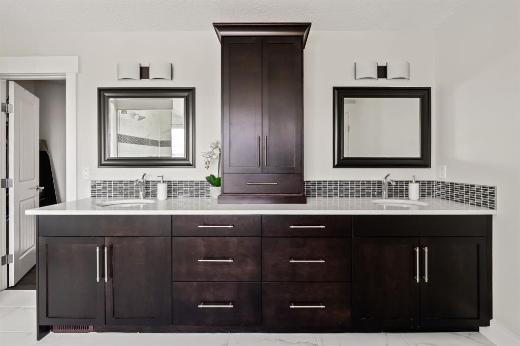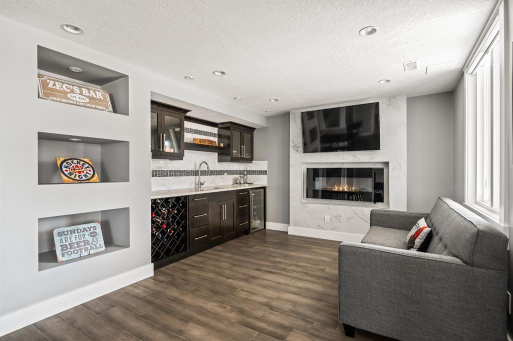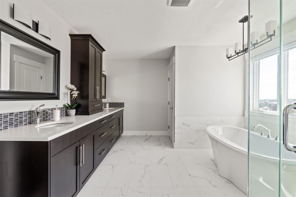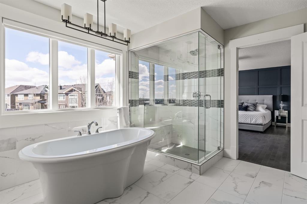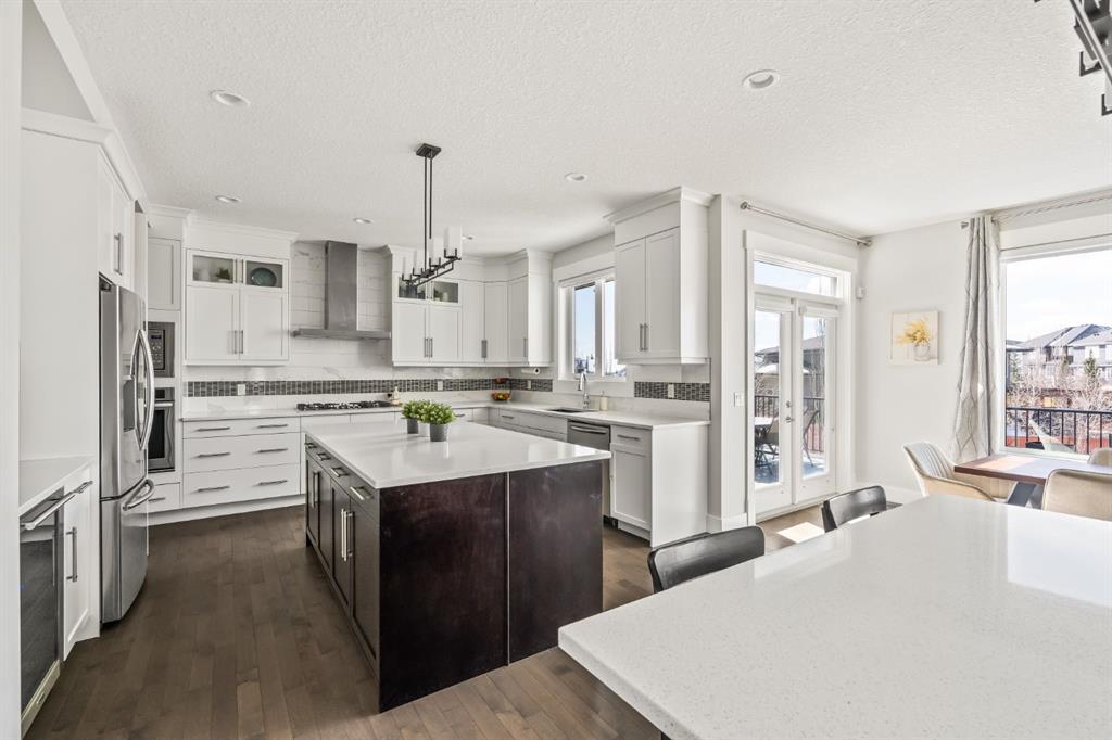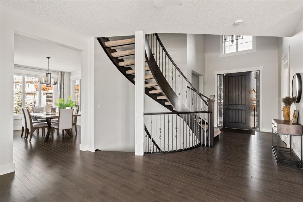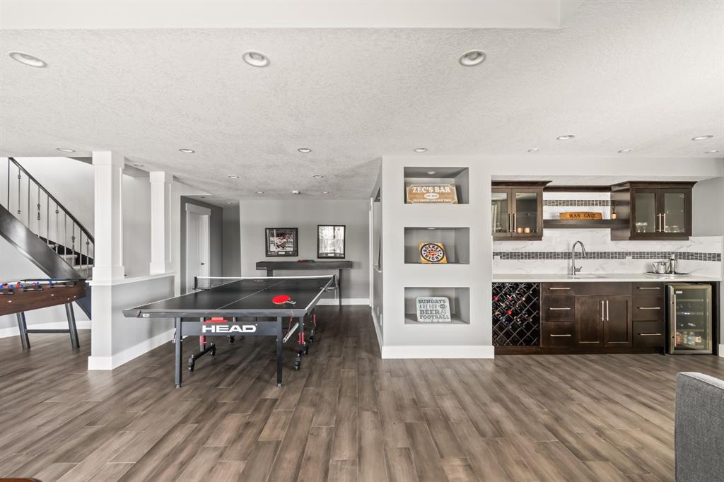 WOW!!! This is the PREMIER LOT in Aspen Vista, a 9,200 sq ft pie-shaped lot, a SW exposure BACKING a greenbelt with direct access to the walking paths - WOW! PLUS… mere steps to the many shops and services at Aspen Landing, a short walk to Rundle College and the kids could ride their bikes to Webber Academy… this is an exceptional location in Aspen Woods Estates – PRIVATE & QUIET! This two storey WALKOUT, measuring 4700+ sq ft over three levels, offers 4 beds and a fantastic Bonus Room up, 4.5 baths, a fully developed walkout with a wonderful open rec room and wet bar plus… a 5th bed and full bath down AND an OVER-SIZED 3 car garage! On arrival you will love the wide open plan on the main, and a volume of windows across the back which bath the home in the warmth of the sun, drawing you through – AMAZING! Highlights here include 9’ ceilings, maple hardwoods running through the main, open riser staircase connecting all three levels, designer lighting and window coverings, quartz countertops throughout, custom millwork, an engaging floor plan, a wonderful kitchen and more. On the main a wide open space for entertaining, leading directly to your expansive rear deck and SW exposure, while still offering intimate spaces for dining and study. The kitchen features white quartz countertops, full height cabinets, s/s appliances including a gas cooktop and wall oven, and a double island for in kitchen meals on the go. The kitchen is open to a generous breakfast nook and the living room with a designer feature wall and fireplace. There is a proper Dining Room, discreetly tucked away, an intimate space for family & friends and a striking Den/Home office at the entrance featuring a custom built-in desking and shelving. Follow the sweeping open-riser staircase upstairs where you will find a large Primary Retreat, which also enjoys the SW exposure overtop of the yard, and an inviting 5pc en suite – BRILLIANT! There three additional beds up, one of which enjoys a private en suite… and you will love the BONUS ROOM, tucked away at the end of a corridor. The walkout has been fully developed with a large rec room, fitness/media space, wet bar, a 5th bed and full bath… and of course direct access to the AMAZING rear yard…. a 9200 sq ft pie shaped lot provides a tremendous volume of space for the kids to run and play… or your own Stampede BBQ?