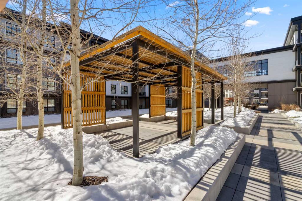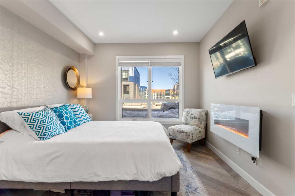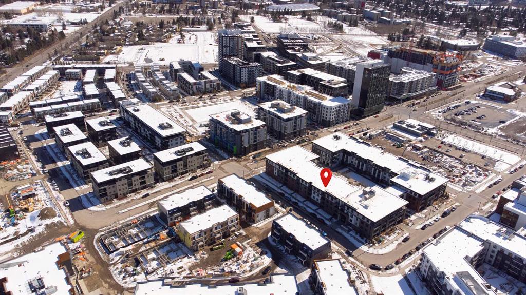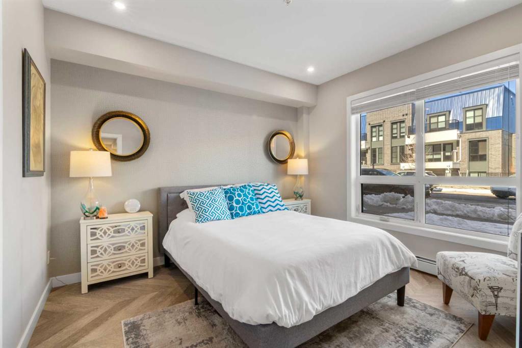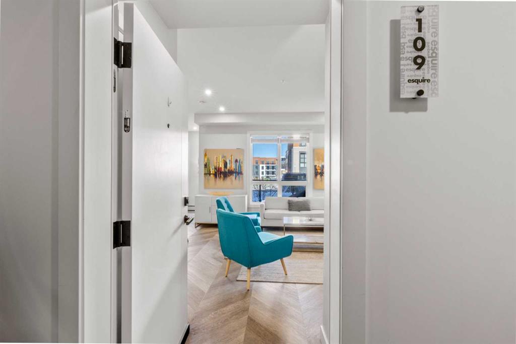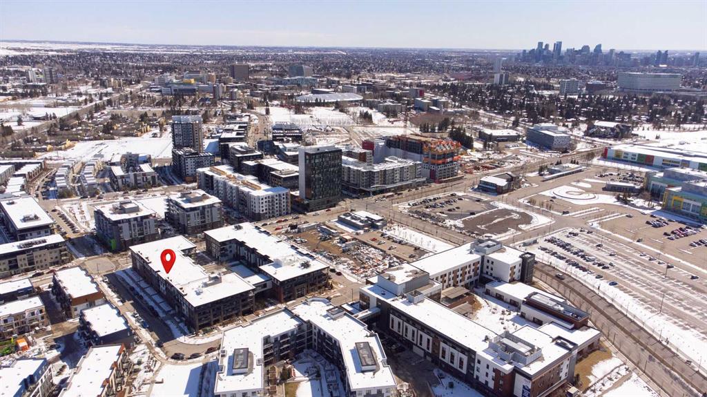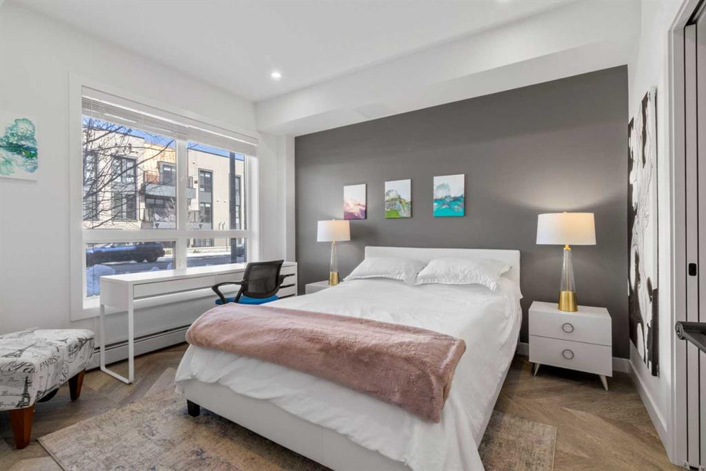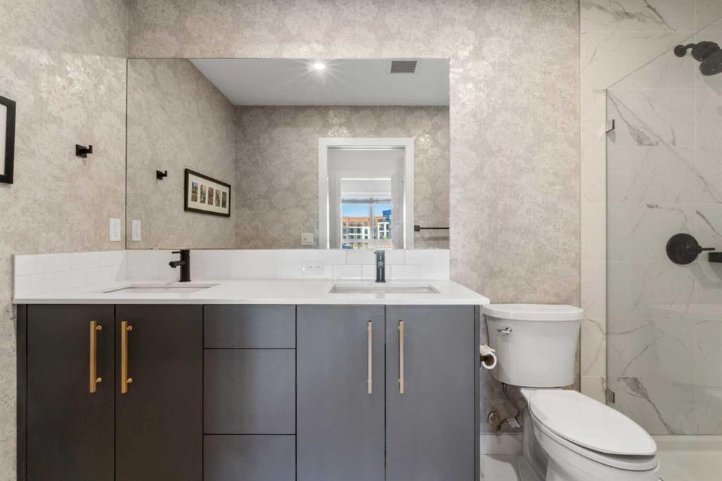 Welcome to Esquire in the heart of University District, where modern design meets a vibrant, walkable lifestyle. This ground floor unit offers next level convenience with the ability to come and go directly through your private patio, giving it a rare, almost townhome feel. Inside, the space is fresh, stylish and anything but ordinary, featuring eye catching herringbone vinyl plank flooring that runs throughout. The kitchen is a true showpiece with a large quartz island perfect for casual dining or entertaining, full height cabinetry and sleek, contemporary finishes that elevate the entire space. The open living area is bright and inviting, while both bedrooms are thoughtfully positioned on opposite sides of the living space, creating a highly functional layout with exceptional privacy. The primary bedroom feels like a retreat with a walk through closet leading to a beautifully finished ensuite complete with quartz countertops and a large walk in shower. A second spacious bedroom is ideally positioned with easy access to another full four piece bathroom, making the layout both functional and flexible. Step outside to your private patio, tucked between brick walls for added privacy, with green space out front that gives a rare sense of yard like living. Additional features include two storage lockers and a titled underground parking stall. Residents of Esquire enjoy access to a full range of amenities including a fitness centre, pet wash station, bike storage and tuning area and a workshop. All of this just steps from the University of Calgary, Alberta Children’s Hospital, Market Mall, Central Commons Park, dog parks, cafes, restaurants, grocery stores and the Cineplex VIP theatre, with easy access to transit and major routes. This is a standout opportunity to own a modern, ground level home in one of Calgary’s most dynamic and connected communities.