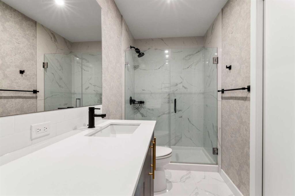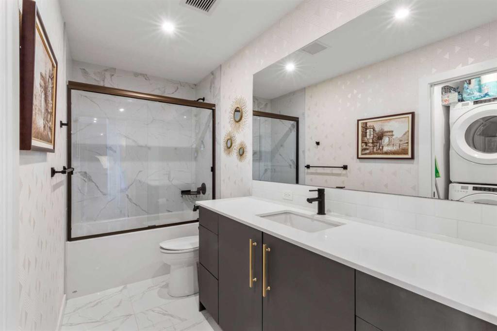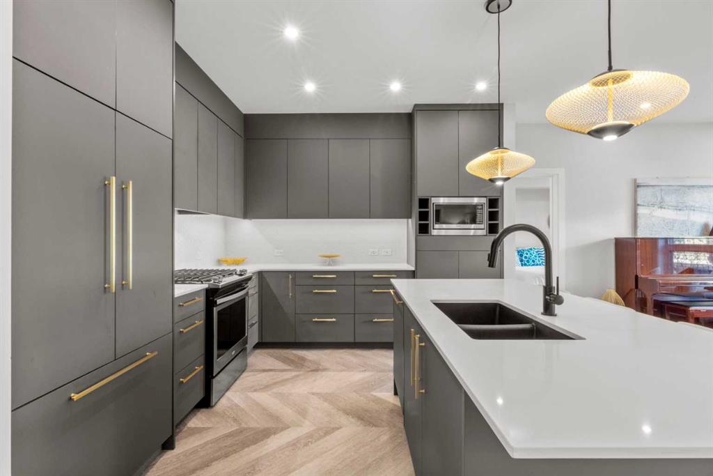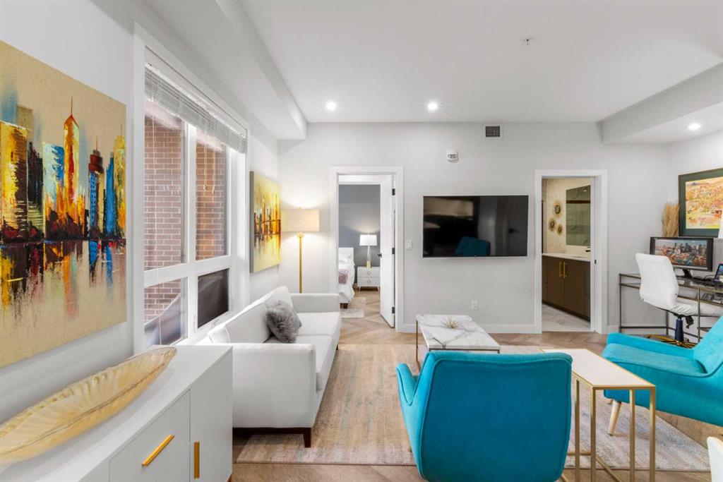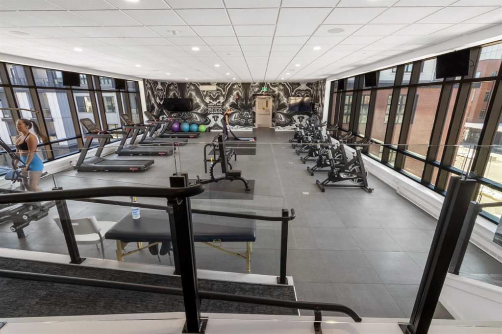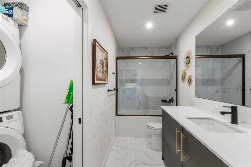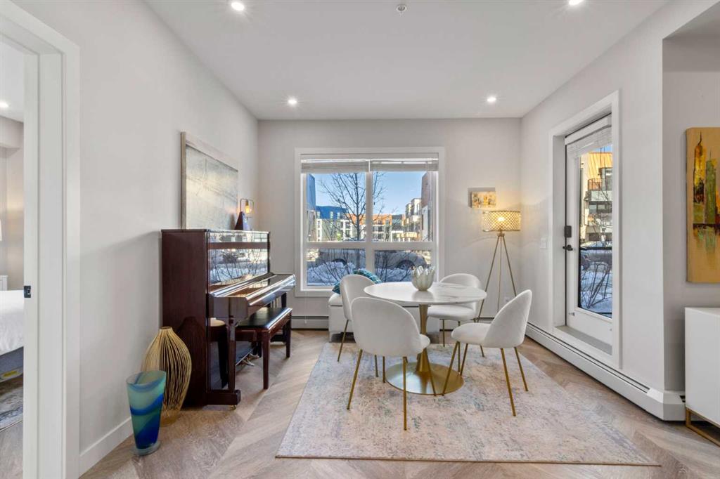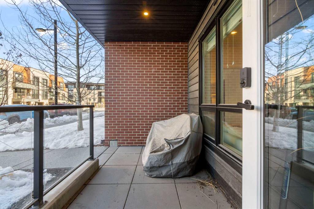 Welcome to Esquire in the heart of University District, where modern design meets a vibrant, walkable lifestyle. This ground floor unit offers next level convenience with the ability to come and go directly through your private patio, giving it a rare, almost townhome feel. Inside, the space is fresh, stylish and anything but ordinary, featuring eye catching herringbone vinyl plank flooring that runs throughout. The kitchen is a true showpiece with a large quartz island perfect for casual dining or entertaining, full height cabinetry and sleek, contemporary finishes that elevate the entire space. The open living area is bright and inviting, while both bedrooms are thoughtfully positioned on opposite sides of the living space, creating a highly functional layout with exceptional privacy. The primary bedroom feels like a retreat with a walk through closet leading to a beautifully finished ensuite complete with quartz countertops and a large walk in shower. A second spacious bedroom is ideally positioned with easy access to another full four piece bathroom, making the layout both functional and flexible. Step outside to your private patio, tucked between brick walls for added privacy, with green space out front that gives a rare sense of yard like living. Additional features include two storage lockers and a titled underground parking stall. Residents of Esquire enjoy access to a full range of amenities including a fitness centre, pet wash station, bike storage and tuning area and a workshop. All of this just steps from the University of Calgary, Alberta Children’s Hospital, Market Mall, Central Commons Park, dog parks, cafes, restaurants, grocery stores and the Cineplex VIP theatre, with easy access to transit and major routes. This is a standout opportunity to own a modern, ground level home in one of Calgary’s most dynamic and connected communities.