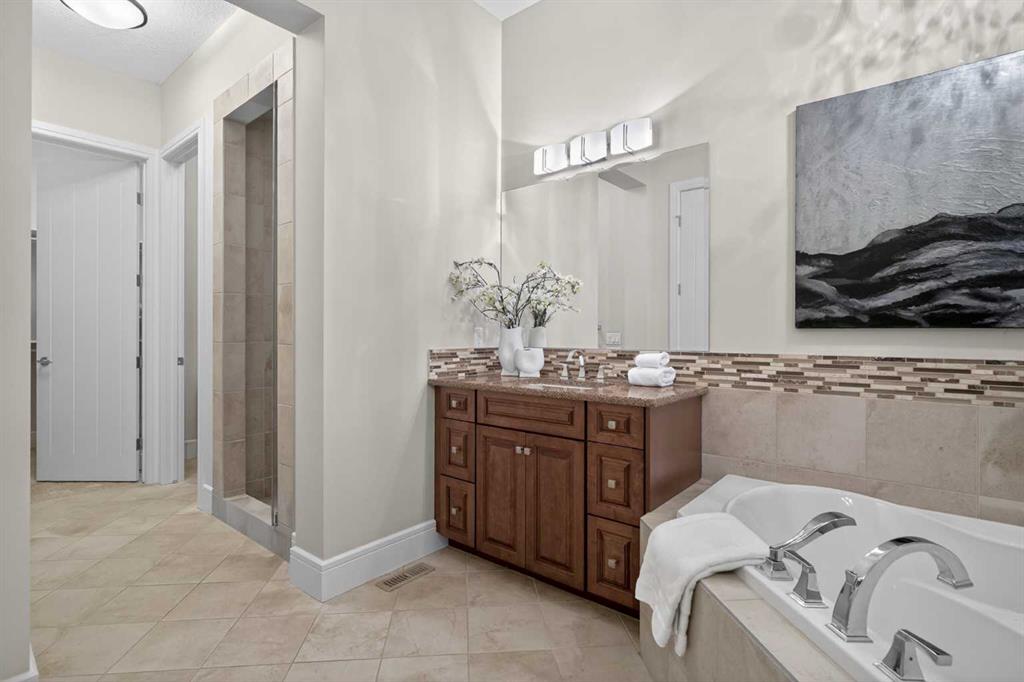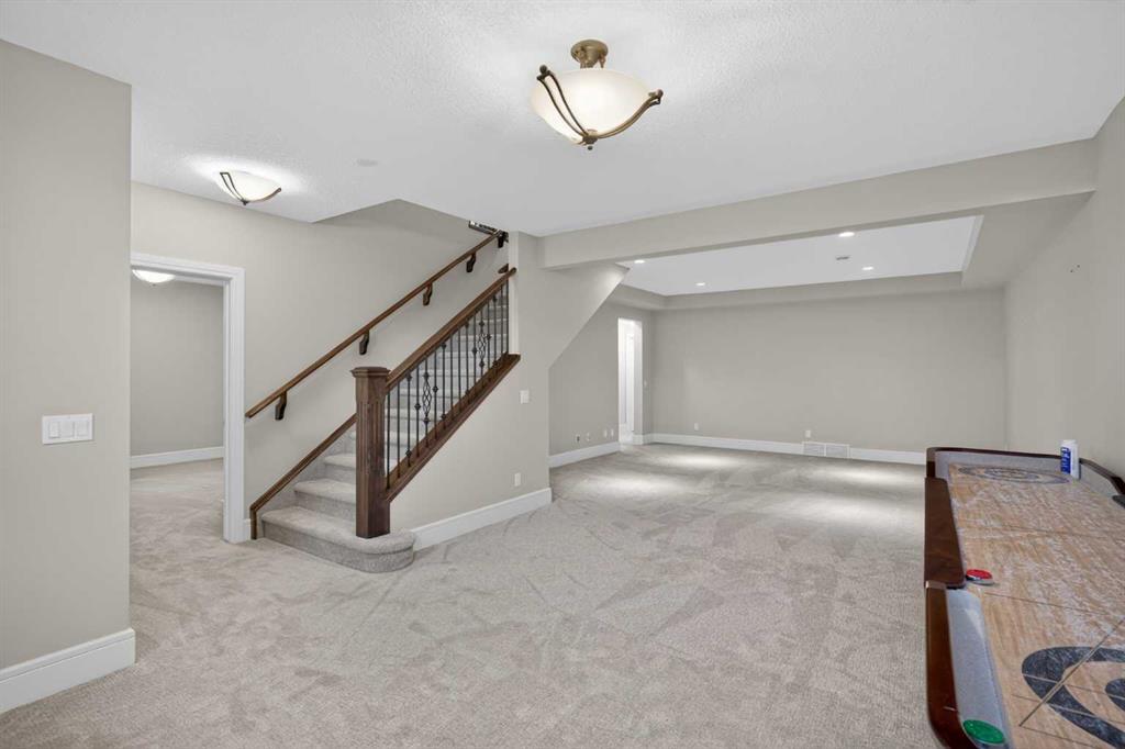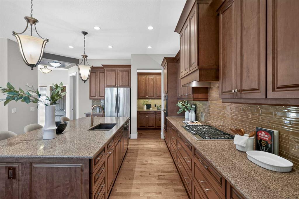 Discover a lifestyle of quiet sophistication and pastoral peace in this stunning semi-detached residence, perfectly situated in the prestigious community of Artesia. This home is a masterclass in functional luxury, offering the space and appointments of a sprawling estate with the effortless maintenance of a villa. The heart of the home is a chef-inspired kitchen that balances moody, dark cabinetry with the luminous glow of premium quartz countertops. Designed for the serious epicurean, it features a gas cooktop, integrated wall oven, and built-in microwave. The transition to the expansive dining area is seamless, supported by a sophisticated butler’s pantry and significant hidden storage for flawless entertaining. In the living room, a floor-to-ceiling stone fireplace serves as a dramatic focal point, flanked by custom built-ins that frame the room’s generous proportions. A private den offers a quiet sanctuary for the home professional, while the main floor’s airy layout is perfectly complemented by high-end finishes and a thoughtful half-bath. Retreat to the primary suite, where indulgence is standard. The five-piece ensuite is a spa-like escape, featuring a deep soaking tub and a separate glass-enclosed shower, creating a serene environment for morning rituals or evening relaxation. Descending to the lower level—refreshed with new carpet just two years ago—you will find an exceptional space for family and guests. Three large bedrooms and a four-piece bath provide ample private quarters, while the expansive family room—currently home to a classic shuffleboard table—is the ultimate setting for game nights and cinema. This home has been meticulously maintained for peak performance, featuring: Dual-zone heating for personalized climate control and Central A/C. Newer hot water tank (2022) and high-efficiency water softener. Integrated Vacuflo system and a rare triple attached garage. Step outside to your private west-facing backyard, where golden hour sunsets over the prairies provide a tranquil backdrop. Artesia is celebrated for its peaceful, quiet atmosphere and high-end aesthetic. While you feel worlds away from the city, you are mere minutes from the boutique shopping and dining of Heritage Pointe, and the comprehensive amenities of Seton, including the South Health Campus and major retail hubs. Experience the perfect equilibrium of luxury, space, and serenity.