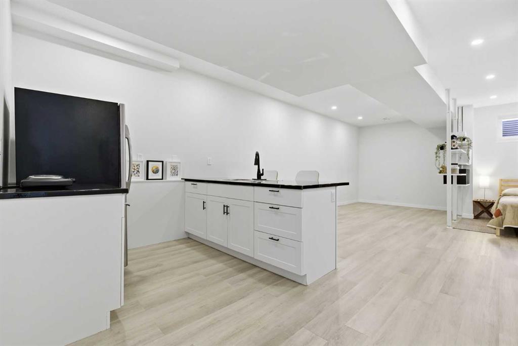 And then there’s the lower level, where this home truly separates itself from the rest. The fully finished basement features its own separate entrance, a bedroom, and an additional dedicated sleeping area, currently partitioned (not fully enclosed), that would be perfect as a home office with a Murphy bed or easily converted into a fourth bedroom. It also includes a beautifully finished bathroom with a full-tile glass shower that rivals the upstairs finishes, along with a kitchenette already in place—ideal for extended family, guests, or future income potential.