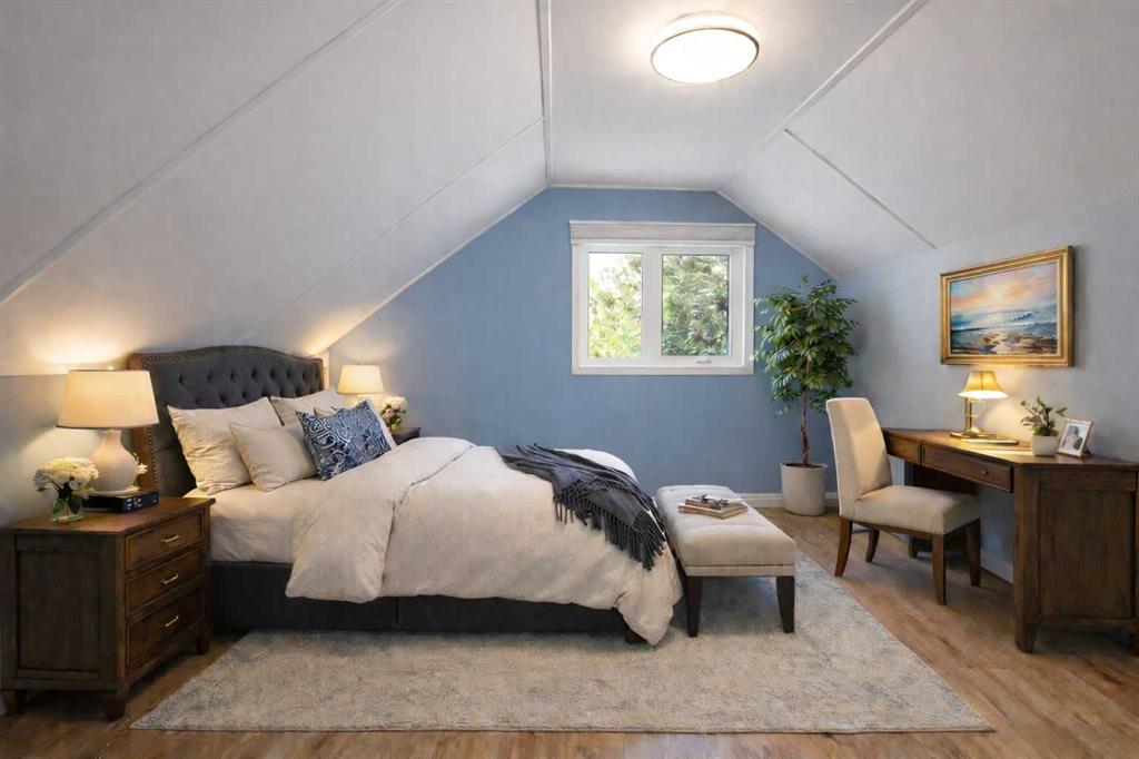 If you're looking for an affordable home in an up and coming neighborhood, with a huge yard, then you'll fall in Love with this Charming Character home! The location appeals to a wide range of buyers who value convenience, long term investment potential and the flexibility to shape the property to their needs. Located in a sought after mature and peaceful location, it is nested between major access roads and awaits a buyer that appreciates the immediate livability of the home with the option to build future equity through renovation or it's income generation potential. You'll find the cozy primary bedroom on the upper floor with a convenient 3 piece ensuite. It is a sunny retreat that's been freshly painted, and has a large built in closet (doors are available). The bright and sunny main level has hardwood floors in the huge living room and the welcoming foyer area. Glass block windows to the south provide beautiful refracted light. All of the Windows and front door were replaced in 2018 and the west facing windows are Triple pane! A large kitchen with an dining area is at the rear of the home with newer appliances (2020), and updated flooring. The 2nd bedroom is off of the kitchen, overlooks the huge yard and is ideal for a home office/den. An updated and modern 4 piece bathroom is conveniently tucked away off of the kitchen. The main level has a sunny rear porch (mud room) that opens onto the kitchen while keeping coats, bikes, golf clubs etc securely covered inside, but is not included in the total sq feet due to measurement rules. In the lower level you'll find the laundry room, storage and a family room area. NOTE major updates: Hot water tank 2024, New windows 2018, flooring upstairs and kitchen, toilets in bathrooms, appliances 2020, lighting, Weeping tiles and new sump pump 2020. The single front drive garage, attached covered carport and front driveway provide tons of parking! The fully fenced lot offers a huge yard for BBQ's, family fun, pets, or perhaps another large garage if desired.
