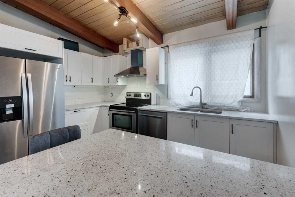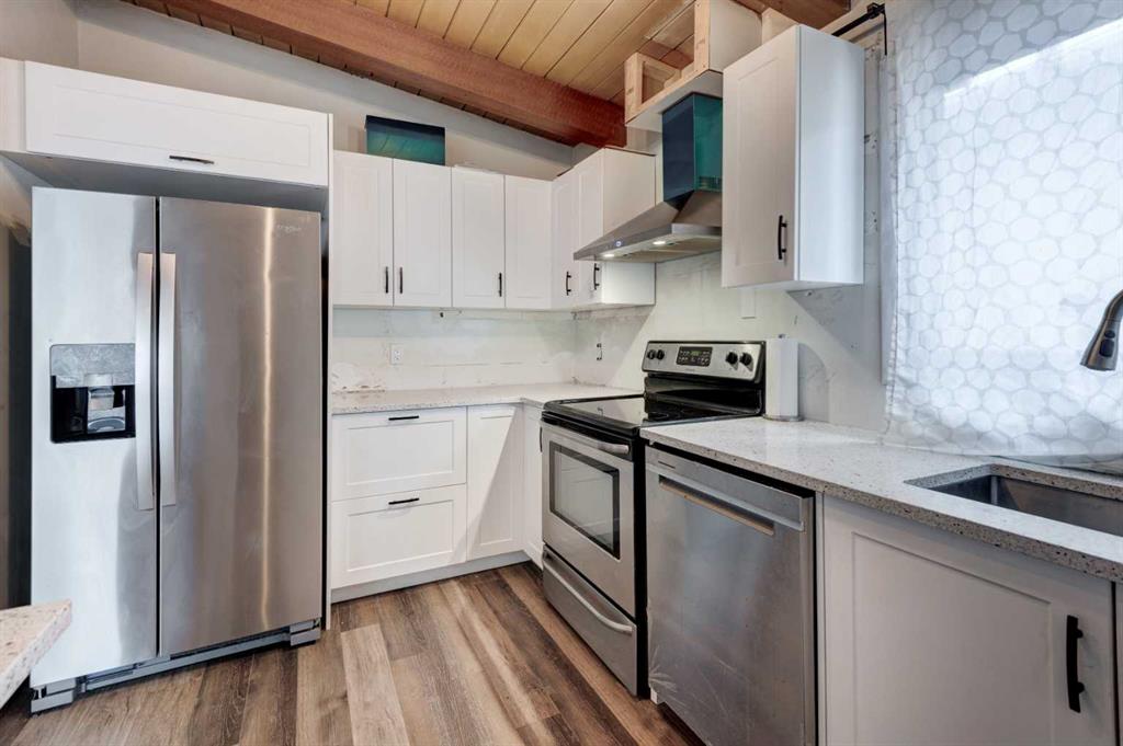 Solid duplex located in the established inner city SW community of Kingsland, offering a great opportunity for investors, renovators, or buyers looking to add value. This property is in need of a renovation, but it provides a strong foundation and excellent potential to suite the basement once you get the right approvals. Featuring 3 of 4 levels developed, the home has good bones including a concrete block party wall for added durability and sound separation, an open wood beam with vaulted ceilings that bring natural light into the main living space. Mechanical updates include a newer hot water tank and High Efficiency furnace. The layout offers flexibility, with a separate side entrance to the lower level where a large bedroom and 3-piece bathroom are already in place, presenting potential for future legal suite development (subject to approvals). The unfinished fourth level provides additional space for expansion. Outside, the private, fenced, south-facing backyard offers room to build a garage, along with existing off-street parking. Located in a convenient and well connected area close to amenities, transit, and major routes, this property presents a compelling opportunity for those looking to renovate, invest, or reposition a property in a desirable inner city location.
