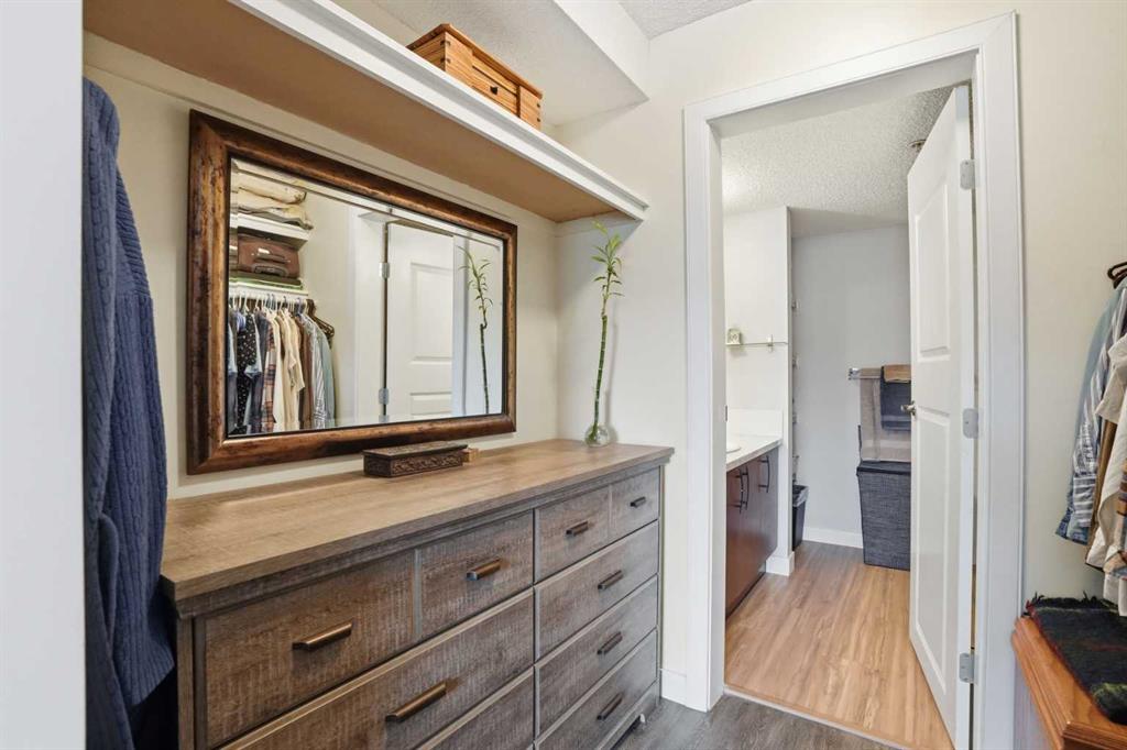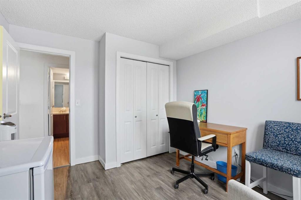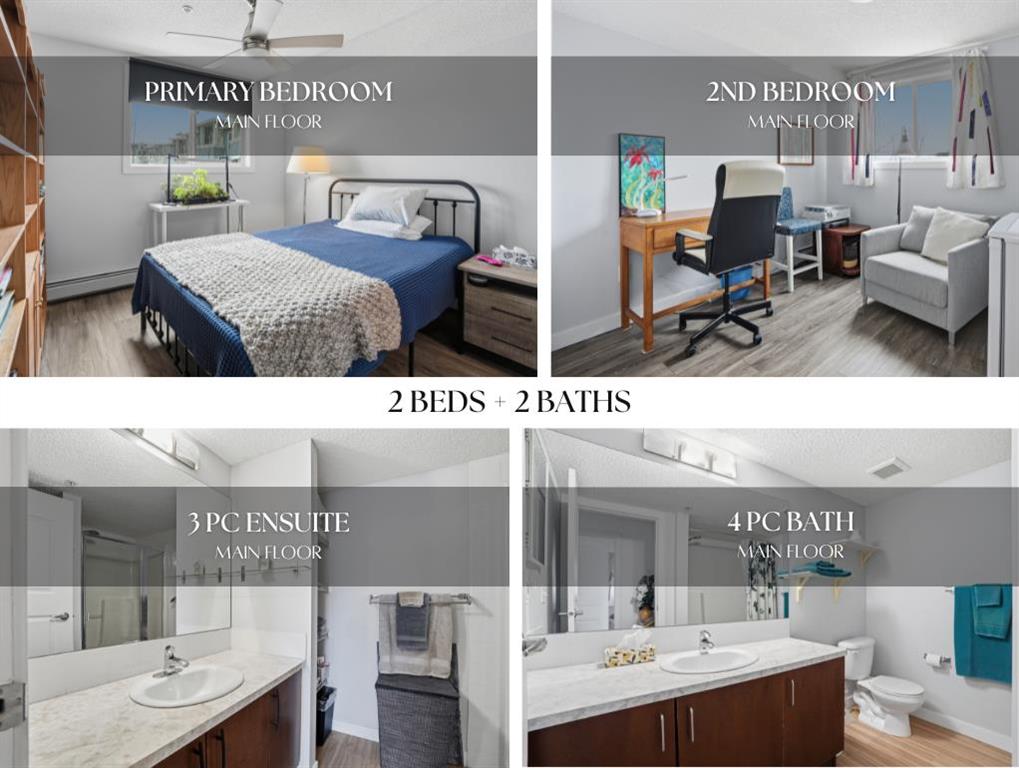The well-designed floor plan separates the bedrooms with the living area in between, providing added privacy. The primary bedroom includes a walk-through closet leading to a private 3-piece ensuite with built-in shelving. The second bedroom is generously sized and positioned near the 4-piece main bathroom, ideal for guests, family, or a home office.