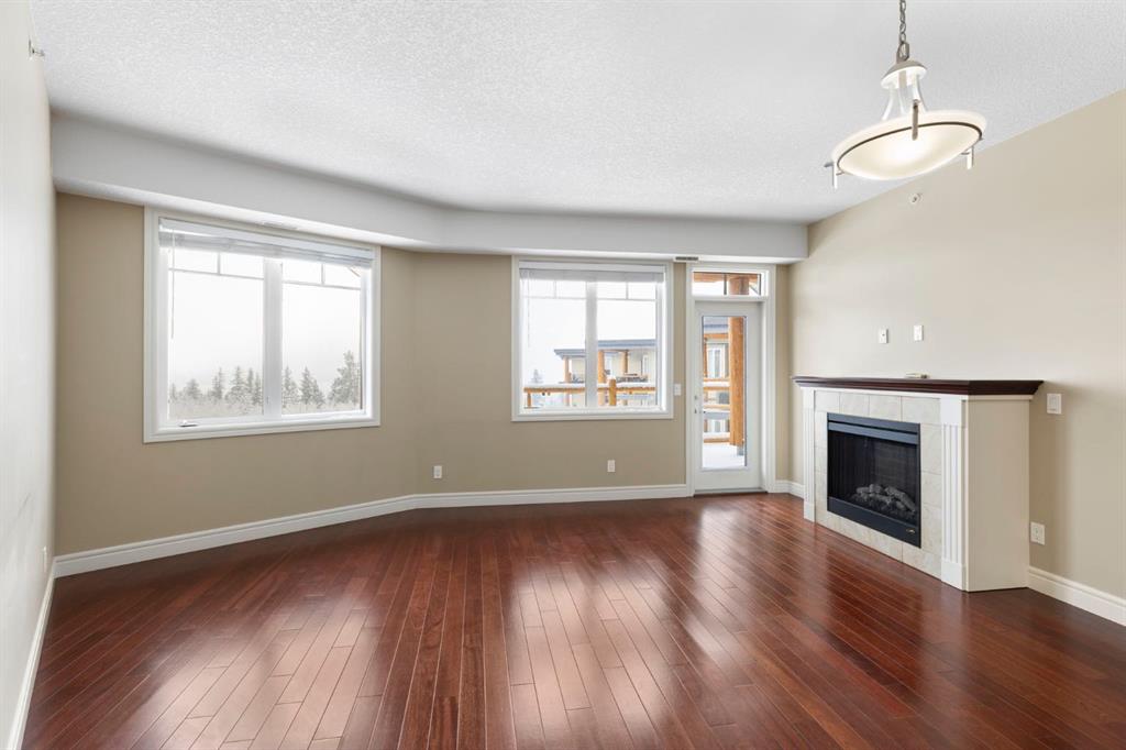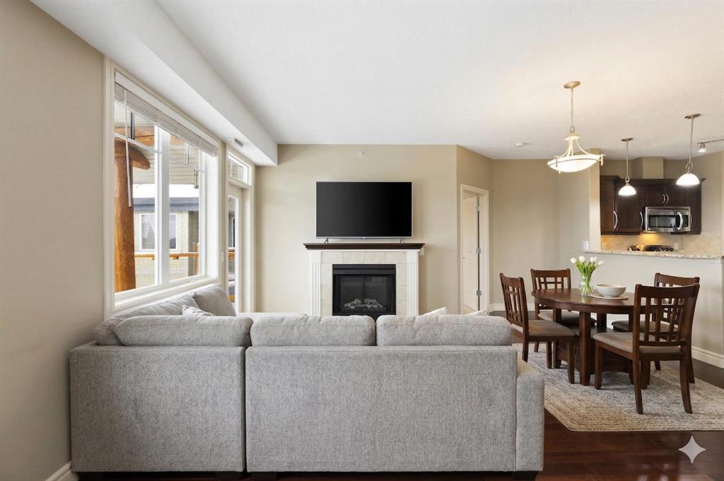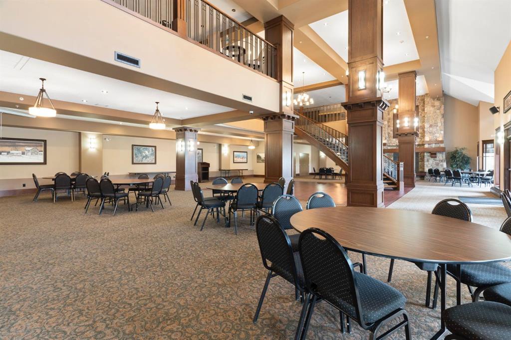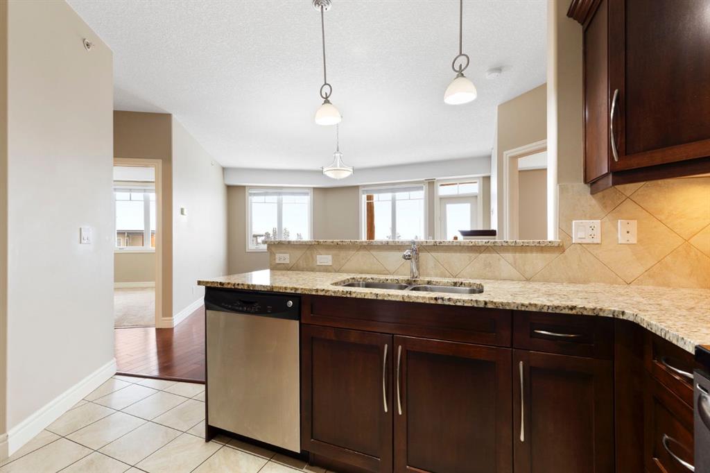 Located on the TOP FLOOR with DIRECT VIEWS OF FISH CREEK, this extremely well-kept two-bedroom, two-bathroom unit is in the prestigious Sanderson Ridge complex in Evergreen. Entering your top-floor unit, where no one lives above you, you'll notice the hardwood floors, a well-kept kitchen with granite countertops, stainless steel appliances, and a generous pantry. The sink overlooks your bar seating, dining room and living room with views for miles, even reaching downtown where you can see the fireworks during Stampede. The living room also features an electric fireplace and space for your tv. Stepping onto your oversized deck, which is reinforced with solid log beams, you'll be in awe of your surroundings. This patio is incredibly unique because it offers direct views of the courtyard, Fish Creek Park and downtown Calgary, very few units have this premium location. The primary bedroom also has stunning views, enough space for a king-size bed and opens into a four-piece ensuite with dual vanities and a walk-in closet. The secondary bedroom shares the same views as the living room and primary bedroom which would make it a great option for a bedroom, office or den. A three-piece bathroom with a top of the line sit up soaker tub is just outside the secondary bedroom and the in-suite laundry is just a few steps away. Sanderson Ridge offers a lifestyle everyone dreams of but few are able to enjoy. With every amenity you could ever want, this is retirement living at its finest. Amenities include: a pool, spa, gym, hairdresser, woodshop, wine cellar, coffee bar, library, car wash, theatre, bowling alley, craft room, and social room, poker room, billiards and gardening.