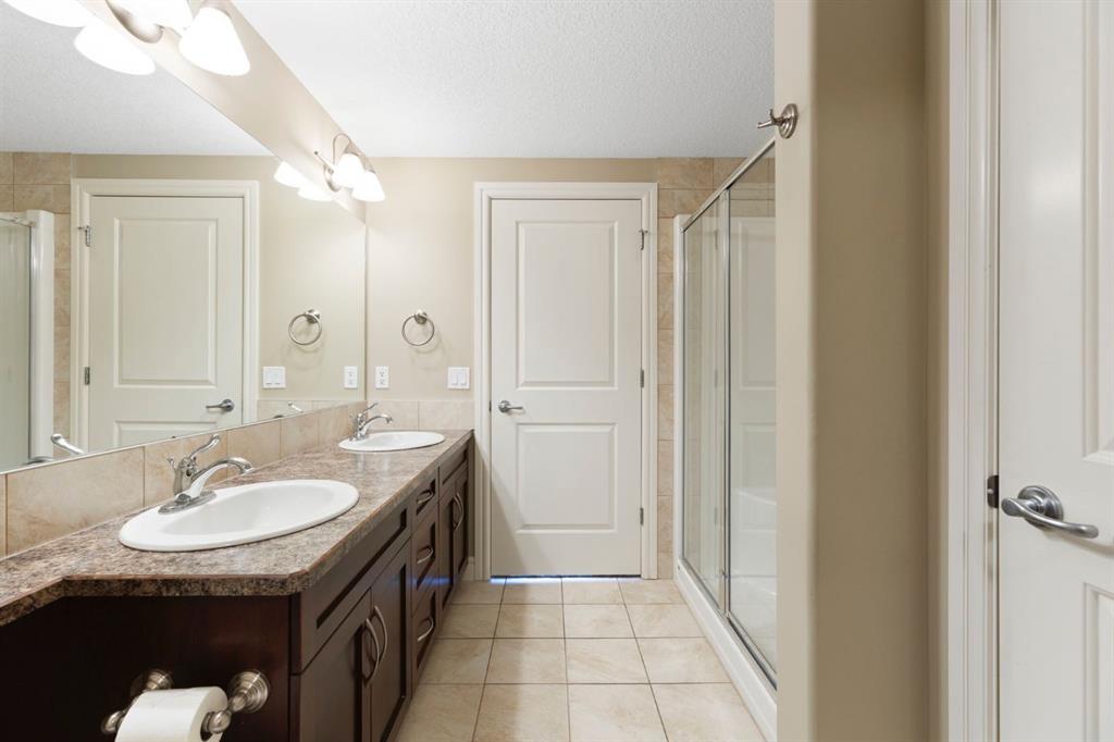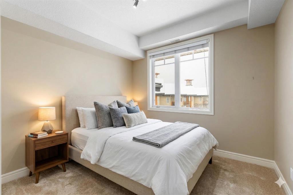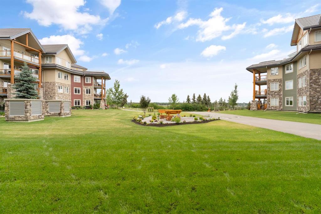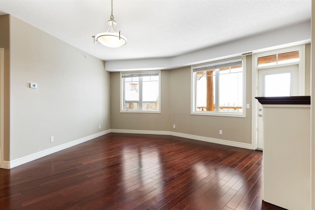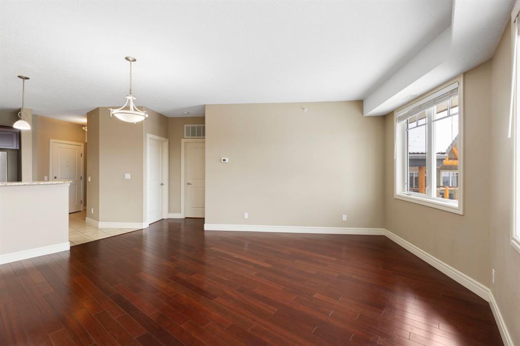 Located on the TOP FLOOR with DIRECT VIEWS OF FISH CREEK, this extremely well-kept two-bedroom, two-bathroom unit is in the prestigious Sanderson Ridge complex in Evergreen. Entering your top-floor unit, where no one lives above you, you'll notice the hardwood floors, a well-kept kitchen with granite countertops, stainless steel appliances, and a generous pantry. The sink overlooks your bar seating, dining room and living room with views for miles, even reaching downtown where you can see the fireworks during Stampede. The living room also features an electric fireplace and space for your tv. Stepping onto your oversized deck, which is reinforced with solid log beams, you'll be in awe of your surroundings. This patio is incredibly unique because it offers direct views of the courtyard, Fish Creek Park and downtown Calgary, very few units have this premium location. The primary bedroom also has stunning views, enough space for a king-size bed and opens into a four-piece ensuite with dual vanities and a walk-in closet. The secondary bedroom shares the same views as the living room and primary bedroom which would make it a great option for a bedroom, office or den. A three-piece bathroom with a top of the line sit up soaker tub is just outside the secondary bedroom and the in-suite laundry is just a few steps away. Sanderson Ridge offers a lifestyle everyone dreams of but few are able to enjoy. With every amenity you could ever want, this is retirement living at its finest. Amenities include: a pool, spa, gym, hairdresser, woodshop, wine cellar, coffee bar, library, car wash, theatre, bowling alley, craft room, and social room, poker room, billiards and gardening.