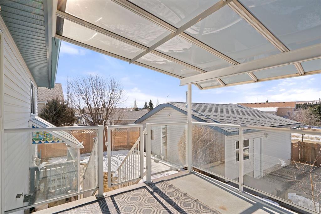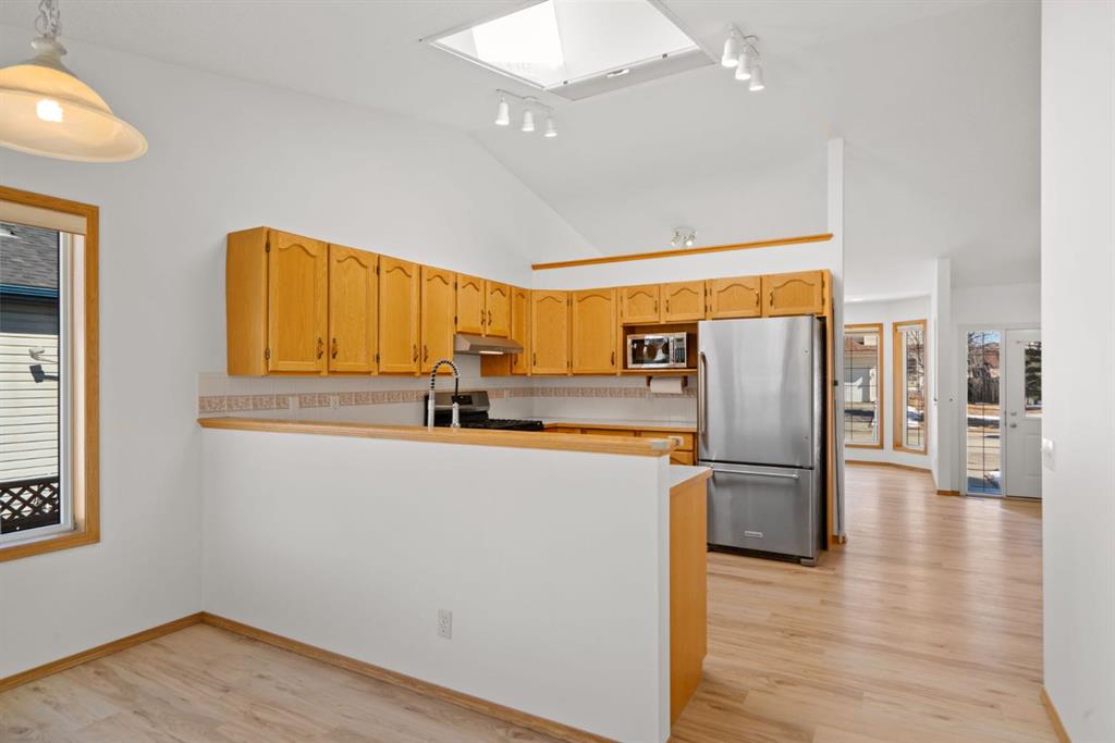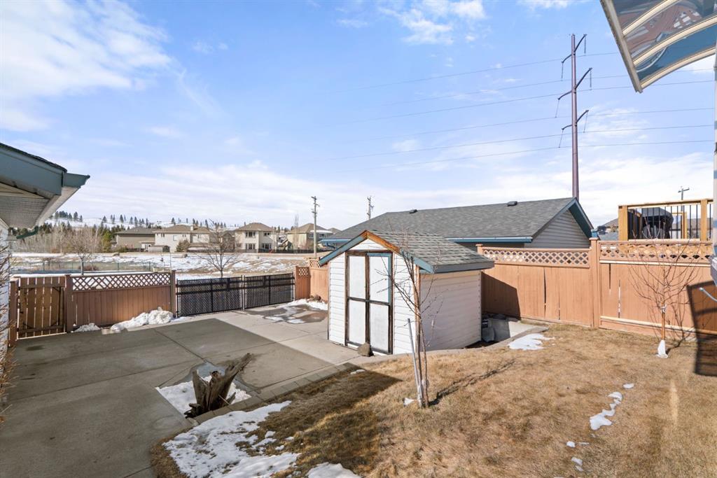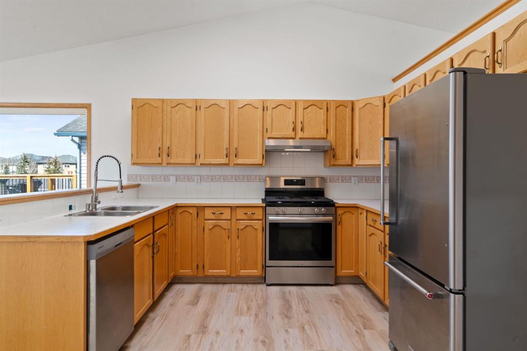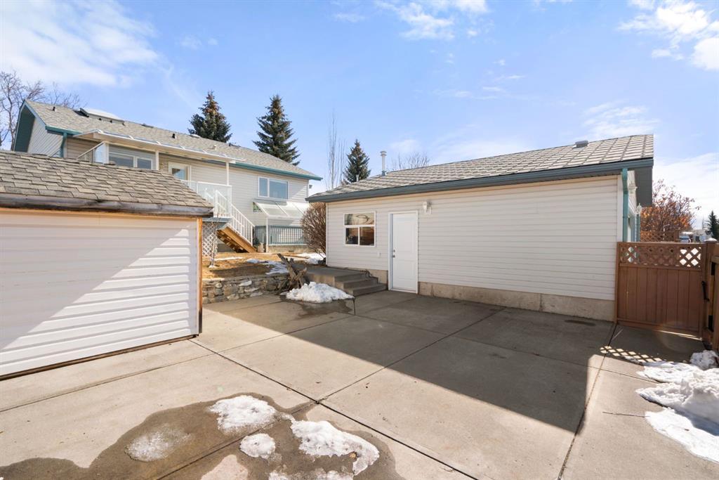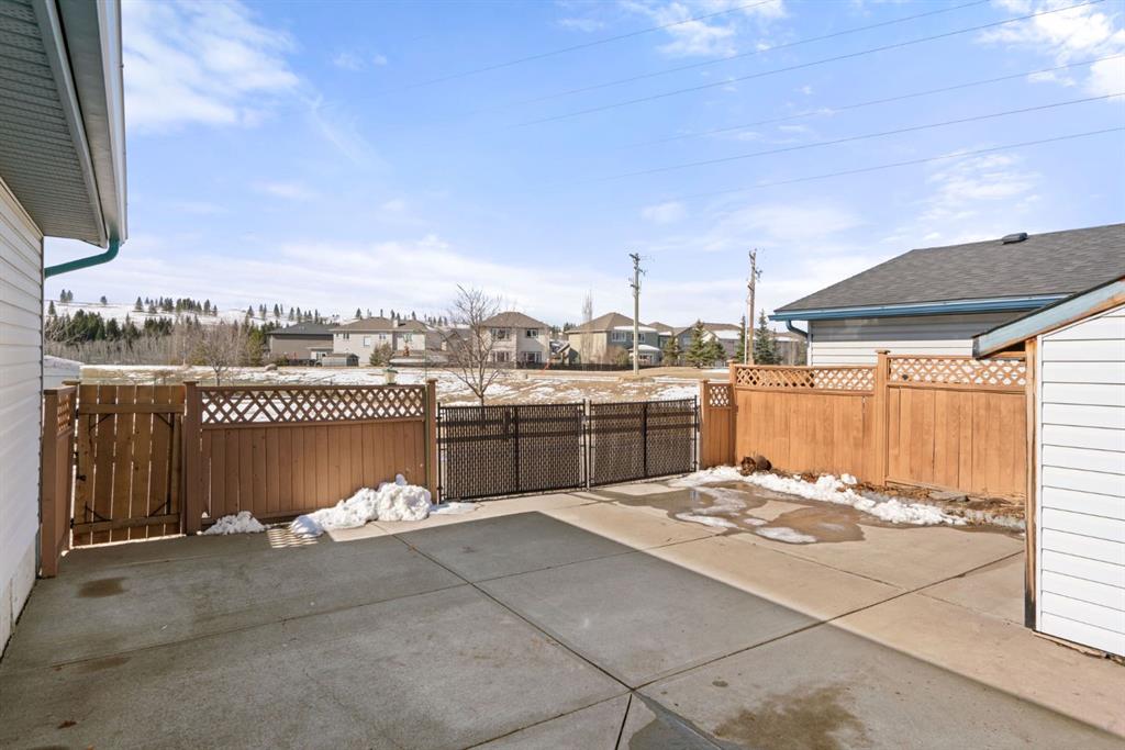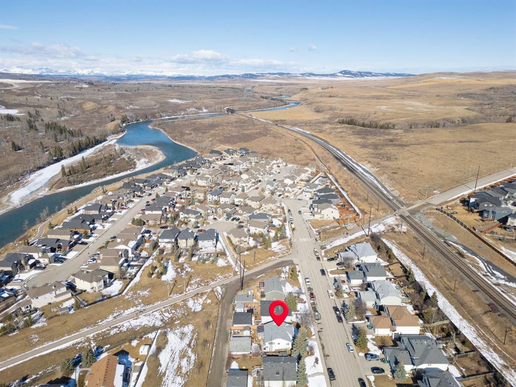 Beautifully maintained BUNGALOW in the desirable community of WEST TERRACE, just steps from Cochrane’s incredible pathway system & only a short WALK to the BOW River. This 3-bedroom, 3-bathroom home offers a functional layout with 2 bedrooms up OR enjoy your spacious primary retreat complete with PRIVATE 3 piece ensuite & use second bedroom as an OFFICE! 4 piece Bath PLUS convenience of MAIN FLOOR laundry on this level. Bright, inviting living area featuring cozy gas FIREPLACE, vaulted ceiling & a SUN FILLED kitchen enhanced by a skylight. SO much counter space. Walk in pantry! Recent updates include PAINT, vinyl plank flooring (2026), newer appliances - including gas stove (2025), dishwasher (2024), updated doors, furnace (2023), roof shingles (2021). Hidden screen doors for your comfort. All these updates will allow you to start enjoying this home right away - while providing peace of mind for years to come! The fully finished walk-up basement (Polycarbonate roof to protect stairs) offers additional living space, another bedroom (Window may not be egress to todays standards), 3 piece bth & flexibility for a variety of lifestyles. Multi generational living possible here! Potential for Suite subject to approval and permitting from the Town of Cochrane, in basement w/separate entrance. SOUTH outdoor living is a standout!!! GREAT curb appeal from the minute you pull up! Did I mention how much street parking you can enjoy?! Enjoy COVERED deck off kitchen overlooking McCaig's Park - featuring Polycarbonate roof, dura-deck, new stairs (2025) & gas line for BBQ. The PRIVATE backyard (no neighbours behind you!) backs onto greenspace & includes large gated concrete pad. Trailer parking, addtl storage or perfect entertaining space. OVERSIZED DOUBLE GARAGE 23.3 x 23.3 is HEATED, wired with 220V & comes equipped w/air lines & compressor - ideal for hobbyists or anyone needing extra workspace! Back alley is bus route - ALWAYS plowed/graded. Addtl features include Vacu-Flo rough-in, underground water system front & back (professionally maintained) & prepaid lawn care services for the 2026 year! Nicely landscaped front/back with apple trees, cherry trees, and perennials. Rare opportunity to own well LOVED home - in PRIME location close to nature, pathways & all amenities. THREE schools in area. West Terrace has MANY playgrounds & is well connected by footpaths. Ride your bike, walk the dog or take the family for a walk along the path beside the Bow River & enjoy NATURE in your own neighbourhood! Easy access to everything downtown Cochrane offers. Close to Calgary. Be in mountains under 45 mins! 40 mins to Calgary Airport or Downtown. NO POLY B.