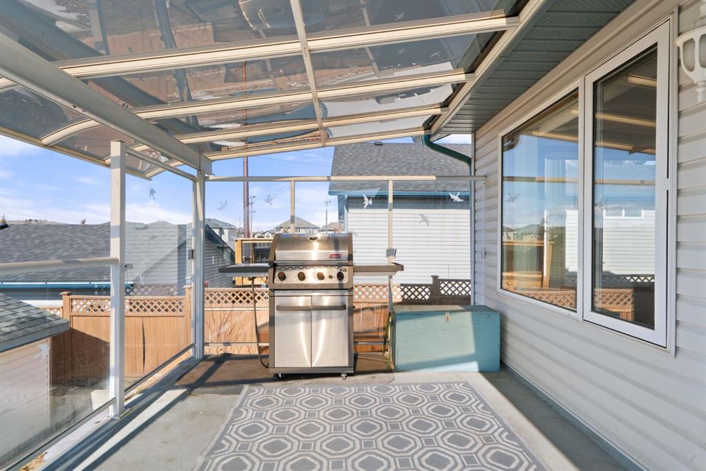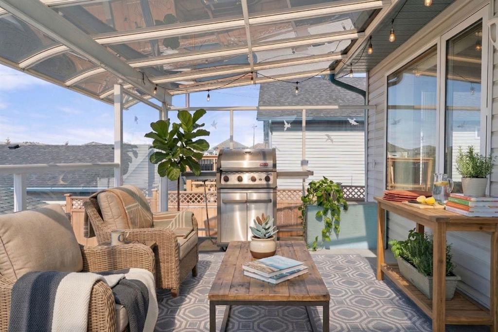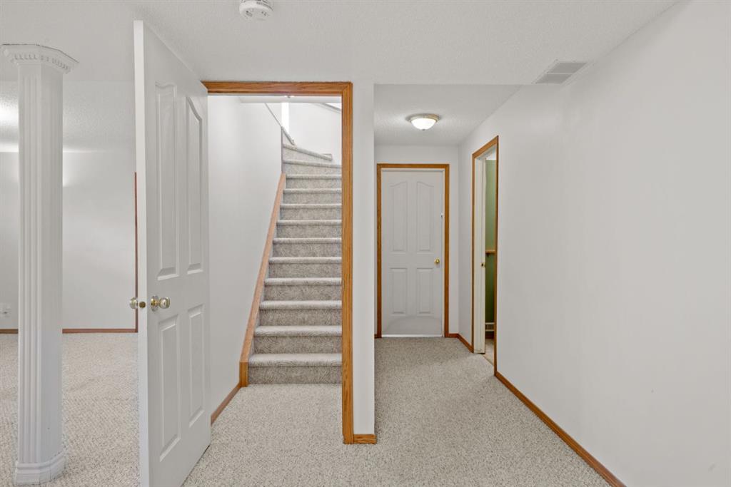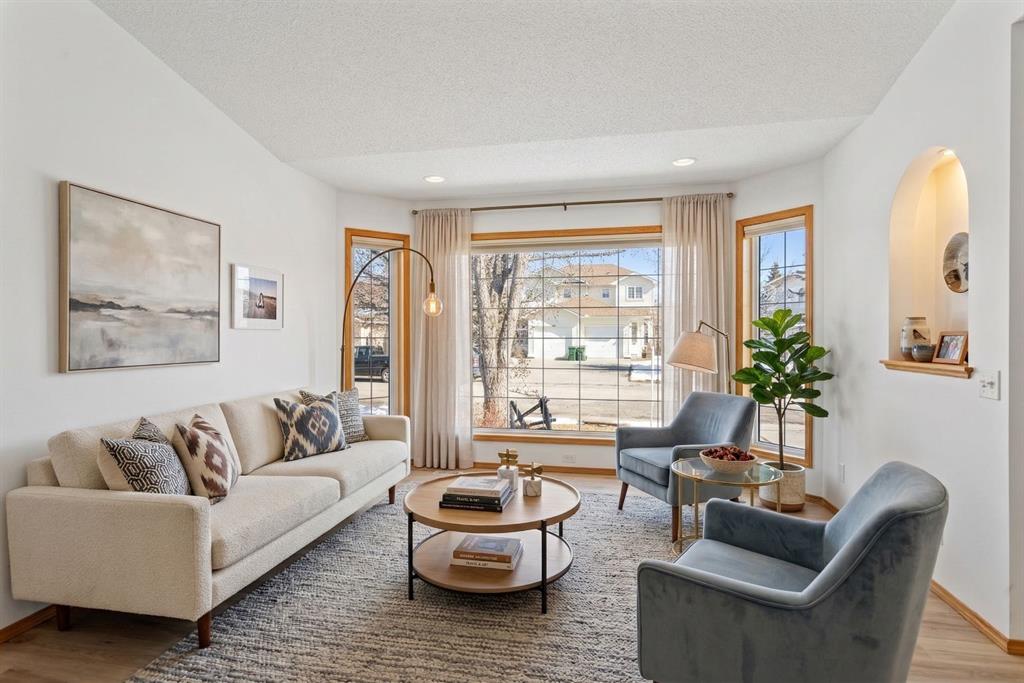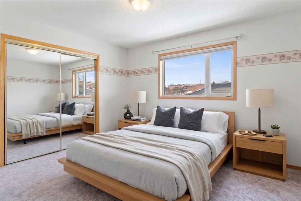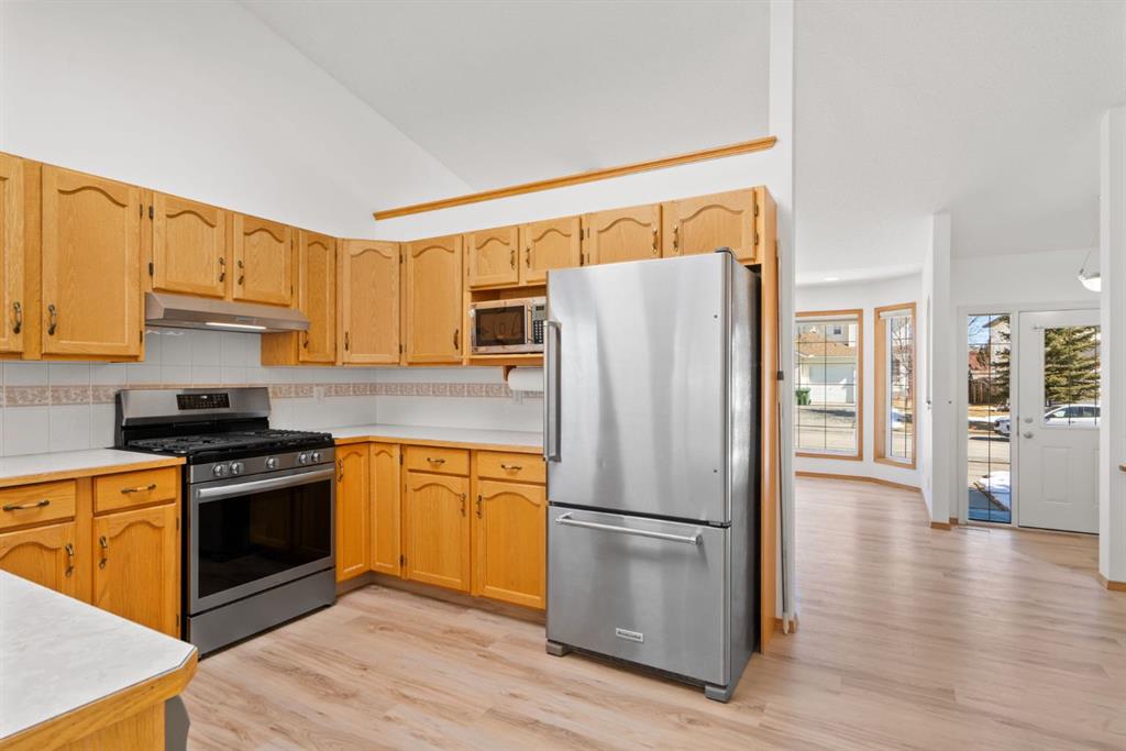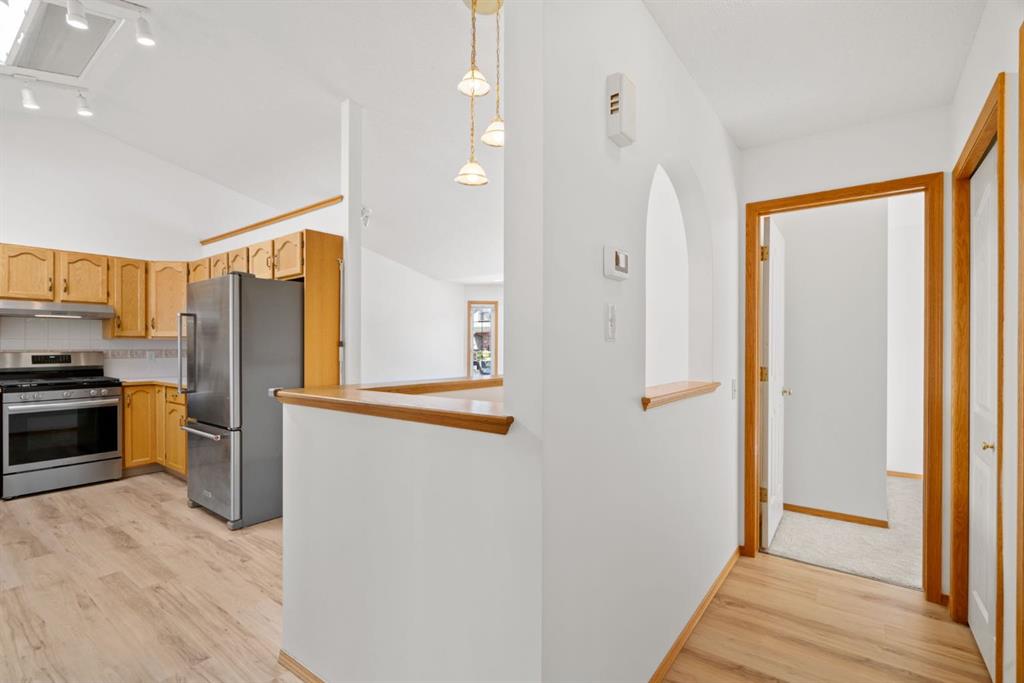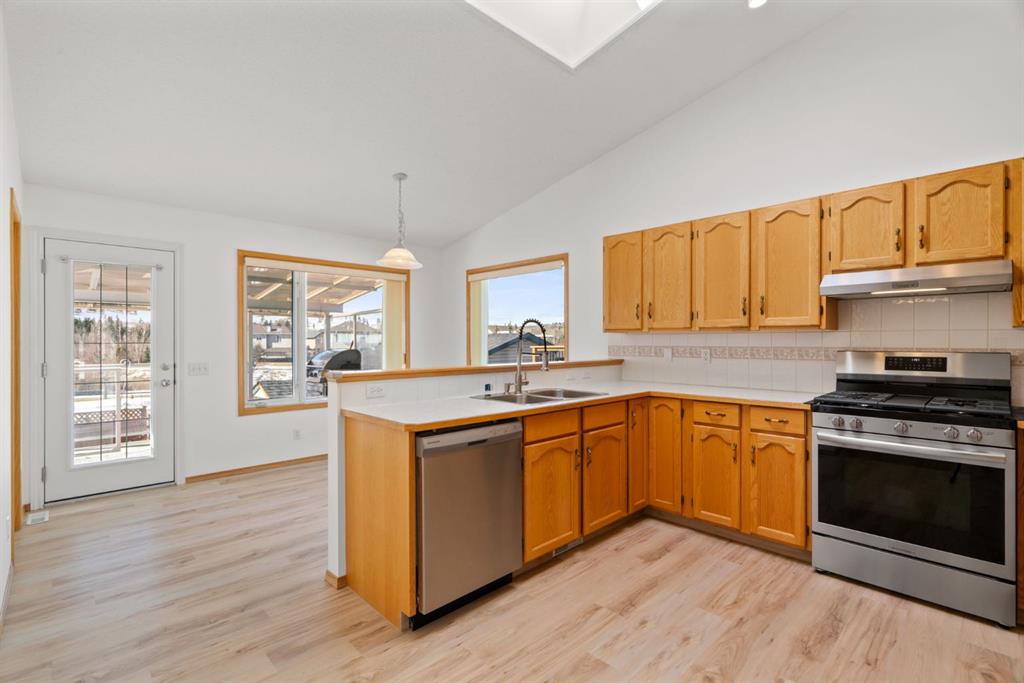 Beautifully maintained BUNGALOW in the desirable community of WEST TERRACE, just steps from Cochrane’s incredible pathway system & only a short WALK to the BOW River. This 3-bedroom, 3-bathroom home offers a functional layout with 2 bedrooms up OR enjoy your spacious primary retreat complete with PRIVATE 3 piece ensuite & use second bedroom as an OFFICE! 4 piece Bath PLUS convenience of MAIN FLOOR laundry on this level. Bright, inviting living area featuring cozy gas FIREPLACE, vaulted ceiling & a SUN FILLED kitchen enhanced by a skylight. SO much counter space. Walk in pantry! Recent updates include PAINT, vinyl plank flooring (2026), newer appliances - including gas stove (2025), dishwasher (2024), updated doors, furnace (2023), roof shingles (2021). Hidden screen doors for your comfort. All these updates will allow you to start enjoying this home right away - while providing peace of mind for years to come! The fully finished walk-up basement (Polycarbonate roof to protect stairs) offers additional living space, another bedroom (Window may not be egress to todays standards), 3 piece bth & flexibility for a variety of lifestyles. Multi generational living possible here! Potential for Suite subject to approval and permitting from the Town of Cochrane, in basement w/separate entrance. SOUTH outdoor living is a standout!!! GREAT curb appeal from the minute you pull up! Did I mention how much street parking you can enjoy?! Enjoy COVERED deck off kitchen overlooking McCaig's Park - featuring Polycarbonate roof, dura-deck, new stairs (2025) & gas line for BBQ. The PRIVATE backyard (no neighbours behind you!) backs onto greenspace & includes large gated concrete pad. Trailer parking, addtl storage or perfect entertaining space. OVERSIZED DOUBLE GARAGE 23.3 x 23.3 is HEATED, wired with 220V & comes equipped w/air lines & compressor - ideal for hobbyists or anyone needing extra workspace! Back alley is bus route - ALWAYS plowed/graded. Addtl features include Vacu-Flo rough-in, underground water system front & back (professionally maintained) & prepaid lawn care services for the 2026 year! Nicely landscaped front/back with apple trees, cherry trees, and perennials. Rare opportunity to own well LOVED home - in PRIME location close to nature, pathways & all amenities. THREE schools in area. West Terrace has MANY playgrounds & is well connected by footpaths. Ride your bike, walk the dog or take the family for a walk along the path beside the Bow River & enjoy NATURE in your own neighbourhood! Easy access to everything downtown Cochrane offers. Close to Calgary. Be in mountains under 45 mins! 40 mins to Calgary Airport or Downtown. NO POLY B.