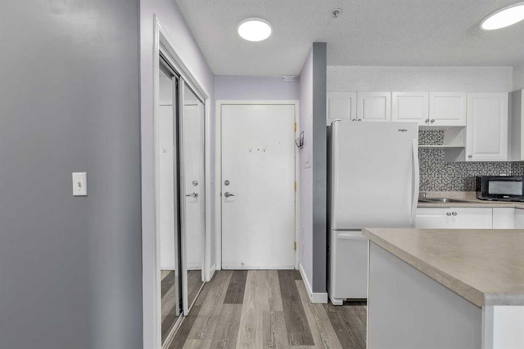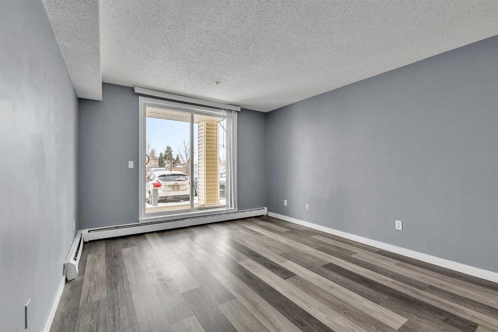 Welcome to Elliston Park, an ideally located complex directly across from the park it’s named after, home to the renowned GlobalFest fireworks festival. Imagine enjoying spectacular summer fireworks right from your doorstep. This well-appointed unit offers over 600 sq. ft. of thoughtfully designed living space, featuring 1 bedroom, 1 den, 1 full bathroom, and a titled underground parking stall. Inside, you’ll find stylish laminate flooring throughout and a bright, open-concept layout that maximizes both space and comfort. The spacious living room is filled with natural light and features sliding glass doors that open onto a private patio, perfect for summer barbecues and relaxing outdoors. The kitchen is both functional and inviting, complete with white cabinetry and clean, well-maintained appliances. The generously sized primary bedroom includes double closets, while a full 4-piece bathroom and in-suite laundry add everyday convenience. Perfectly situated, this home is close to schools, playgrounds, shopping, and public transit, making it an excellent choice for families, first-time buyers, or investors alike. Don’t miss this fantastic opportunity - book your private showing today!
