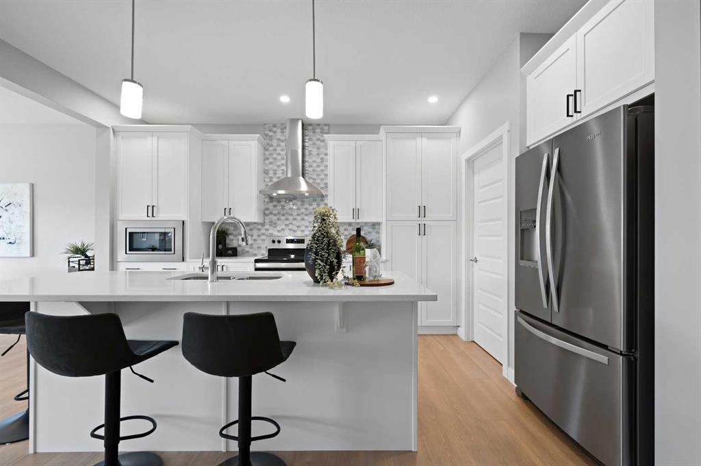 Situated in the community of Bayside, the "Mateo ll" is a thoughtfully designed home with over 2500 sq ft above grade and offers an often hard-to-find four bedrooms on the upper level. The main floor features an open-concept living space with a chef-inspired kitchen, a functional island for prep or entertaining, sleek stainless-steel appliances, and beautiful cabinetry. Not only does this home have 4 bedrooms upstairs, but it also offers a main-floor office. With this home, there is no sacrificing space. The open-concept living space is perfect for entertaining, with ample room for family dinners in the dining room and for relaxing in the living room, which features a striking focal-point fireplace. Complementing the main floor is a mudroom off the garage, which helps keep all the odds and ends organized, and a powder room nicely tucked away. Venturing upstairs, you will notice the open-to-above foyer, which adds a touch of sophistication to the home. A nice-sized loft greets you at the top of the stairs, and the primary suite offers amicable separation from the other three bedrooms, all of which have walk-in closets. The sizeable primary bedroom provides plenty of space for a king-size suite, and the spa-like ensuite offers dual sinks, a soaker tub, a separate shower, and a huge walk-in closet. Completing the upper level is a 3-piece bathroom with a tub, which makes kids' bathtime a breeze and an upper laundry for convenience. The basement is unfinished and has a separate side entrance, 9' ceilings, and is laid out well for future development. Bayside is one of Airdrie’s most desirable communities, known for its scenic canal system and year-round outdoor lifestyle. Residents enjoy walking paths, parks, and activities like paddle boarding in the summer and skating in the winter. With close access to schools, shopping, and everyday amenities, Bayside offers the perfect balance of nature, convenience, and community living. *PHOTOS ARE OF A PREVIOUSLY BUILT MODEL. Colours will vary. RMS has been applied to construction drawings provided by the builder. Taxes to be assessed.