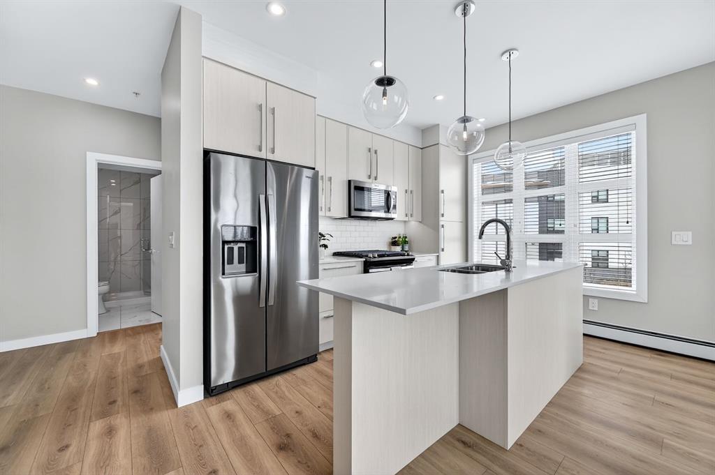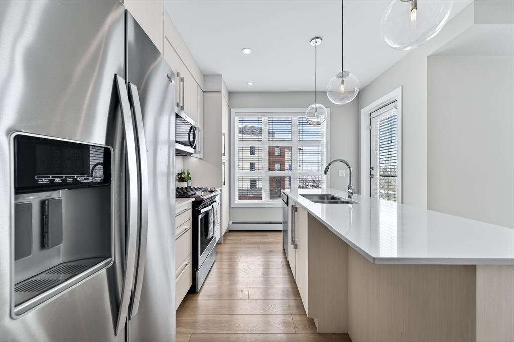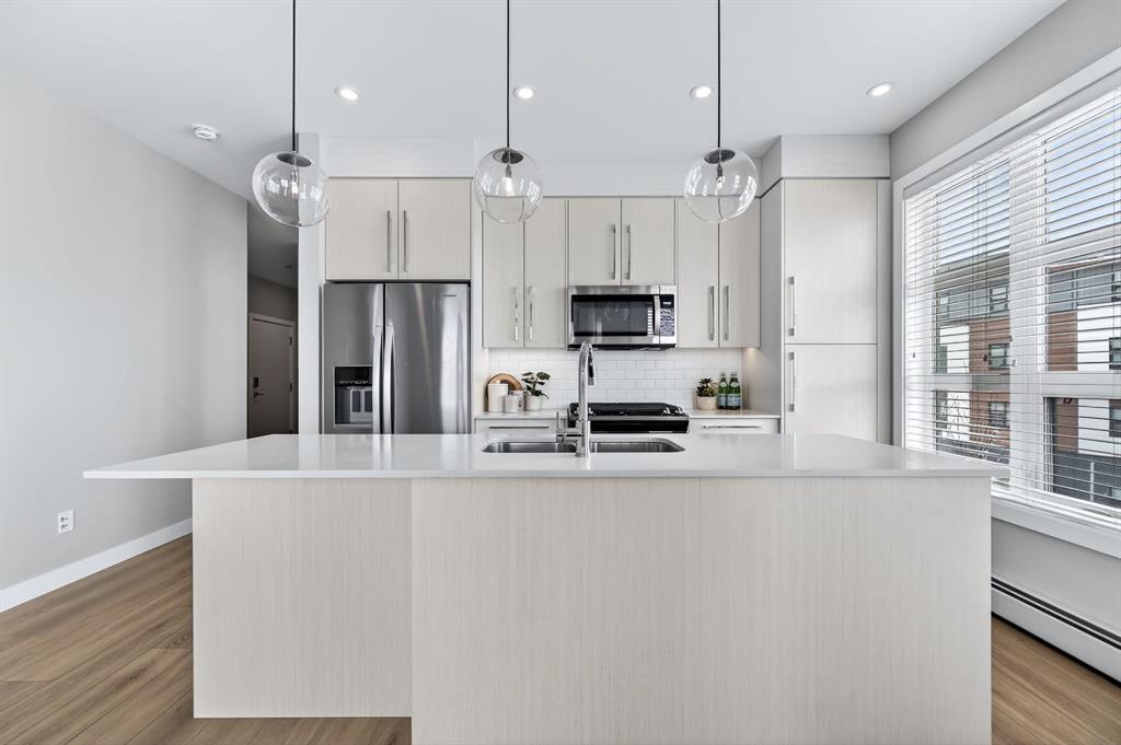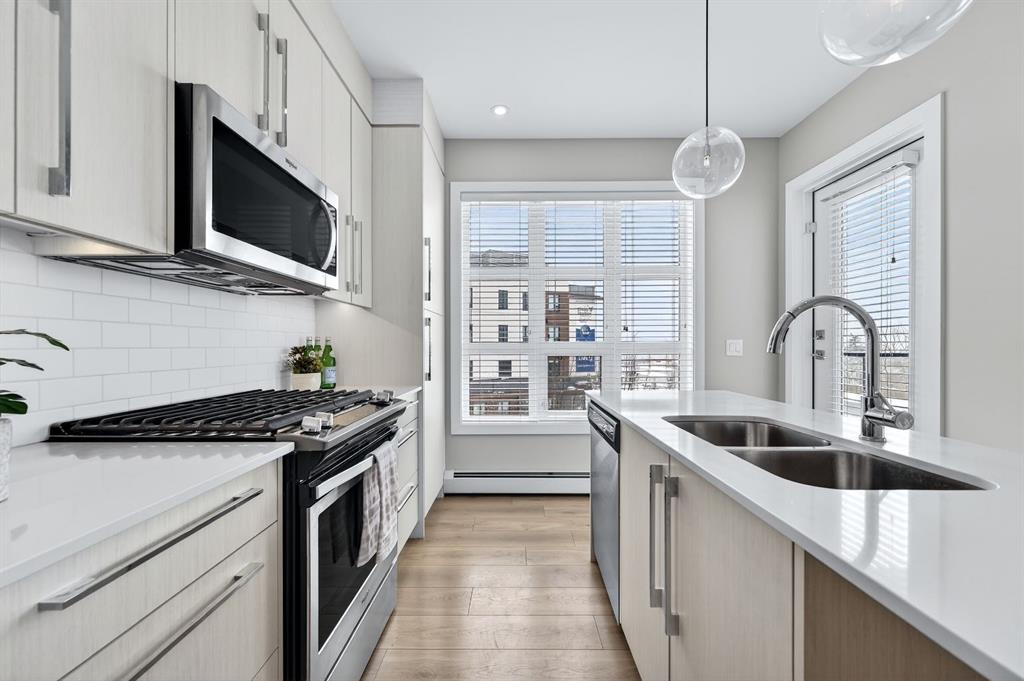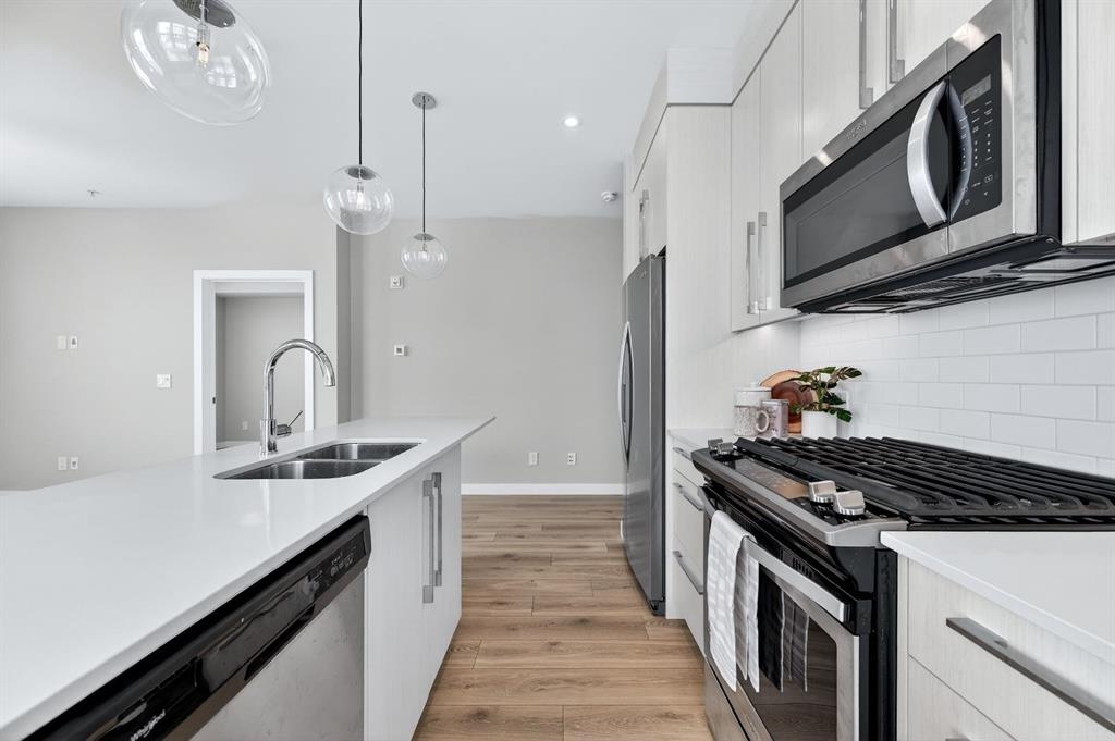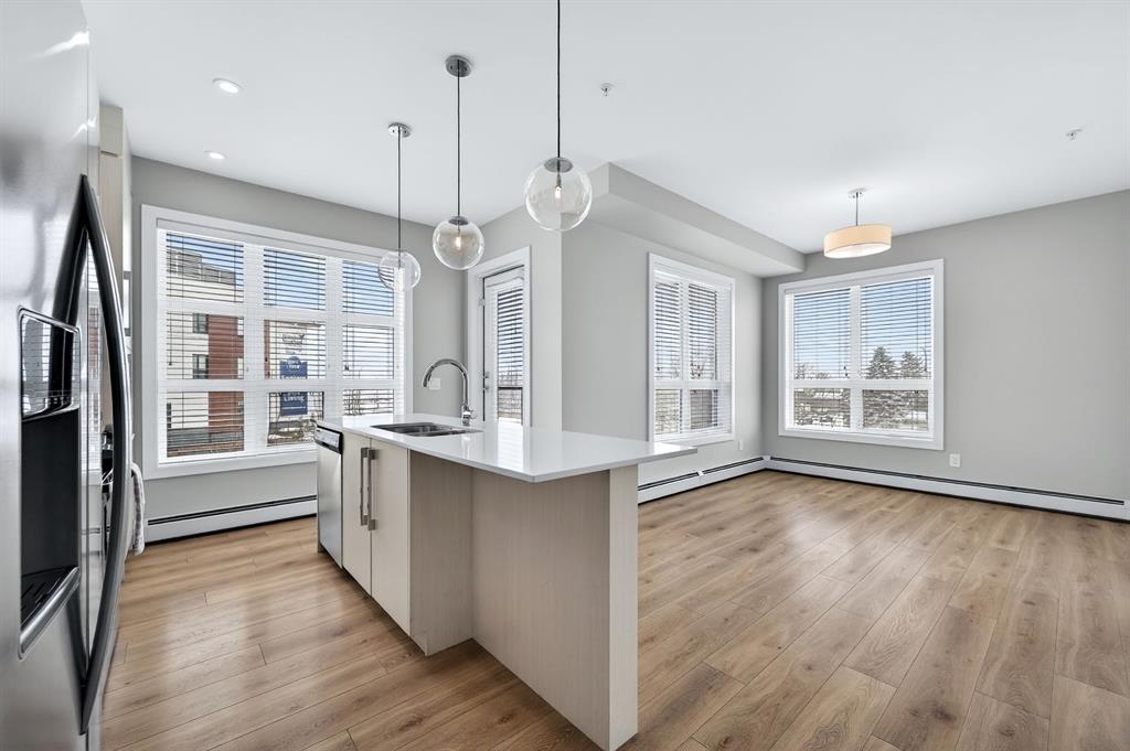 Live in The Maple! This southwest facing corner unit offers stunning, unobstructed views and unbeatable sunsets from your spacious covered third floor balcony! Well-designed for independent living in a vibrant 55+ community, this bright and open 2 bedroom, 2 bathroom home includes a white kitchen with full height cabinets, island and stainless-steel appliances (including a gas range), convenient in-suite laundry, wide plank vinyl flooring, and quartz counter tops throughout. The primary bedroom has walk through closet and 5-pce ensuite. Residents of the Maple enjoy titled underground parking, visitor parking, a separate storage locker, bike storage, garbage and recycling, landscaped courtyard, and access to amenities in the adjoining Brenda Strafford Centre, including a fitness centre, hair salon, bistro, and vibrant social activities. Walking distance to everything, the list of amenities that makes University District THE place to be is very long and includes a dog park, an ever-growing selection of restaurants, shopping, pubs, entertainment venues, and quick access to the highway, Foothills Medical Centre, Market Mall, the university, and all commuter roads. With all the space and services you need AND a location that can’t be beat, #325 in The Maple is ready to be your next home, today!