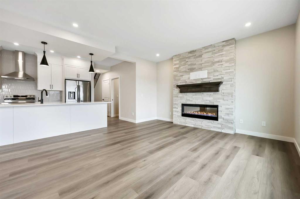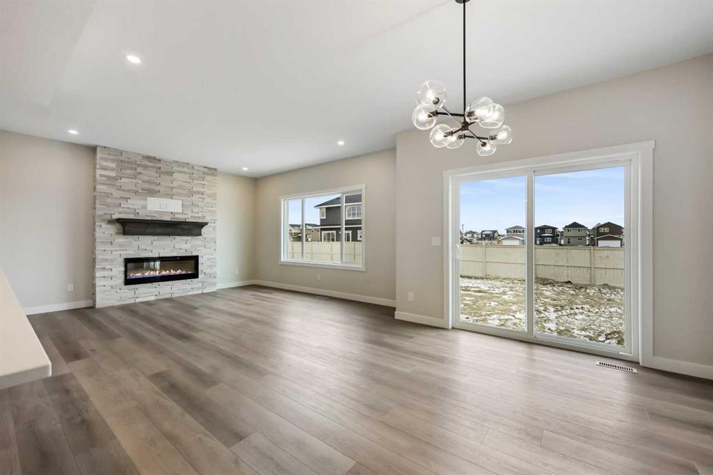 Genesis Builders presents the Primrose, a beautifully designed 2,200-plus-square-foot home offering 3 bedrooms upstairs, an additional 4th bedroom on the main floor, 3 full bathrooms, and a handy tech space! Warm tones complement the home with a stylish black hardware and lighting package. 9' ceilings and luxury vinyl plank flooring guide you through the open-concept main floor living space. The chef's kitchen is open to the living room and dining room, which is perfect for entertaining and offers beautifully complemented two-toned cabinetry, elegant white quartz countertops, a stylish backsplash, and an extensive kitchen island. The fourth bedroom, 4 pc bathroom, and mudroom off the double attached garage complete the main floor. Head upstairs to a spacious primary retreat with a spa-like ensuite with double sinks, a stand-alone shower, a soaker tub, and a large walk-in closet. This will be your retreat at the end of the day. The additional bedrooms are generous in size and function perfectly for the kids or guest room. This floor has a beautifully finished full guest bathroom, a laundry room, and a bonus room for the family to enjoy. The basement has access from the side entrance and is a blank canvas with upgraded 9' ceilings. It awaits your design ideas. Situated in the desirable Bayside community, a family-friendly community that offers amenities to get you outside. You are steps from Nose Creek Elementary School, the pathways that meander the scenic canals, a brand new community playground complete with a bike park, and so much more. *Photos are of a previously build model and are representative. RMS has been applied to construction plans provided by the builder. Taxes have not been assessed.