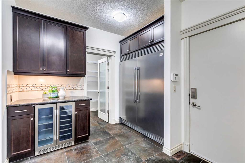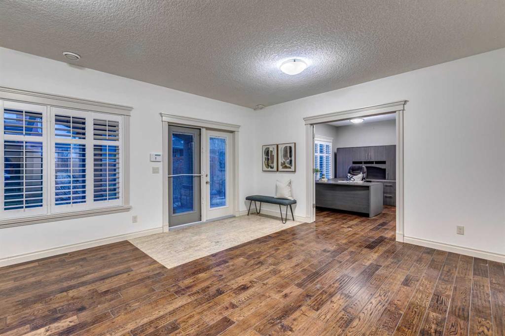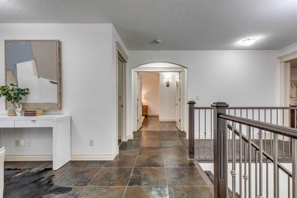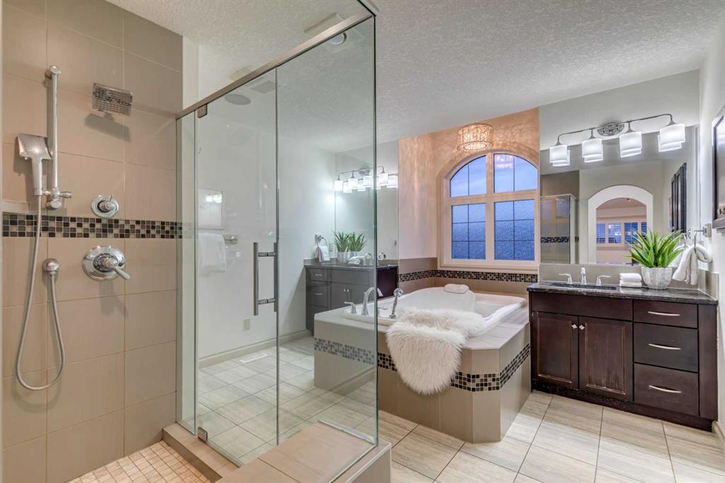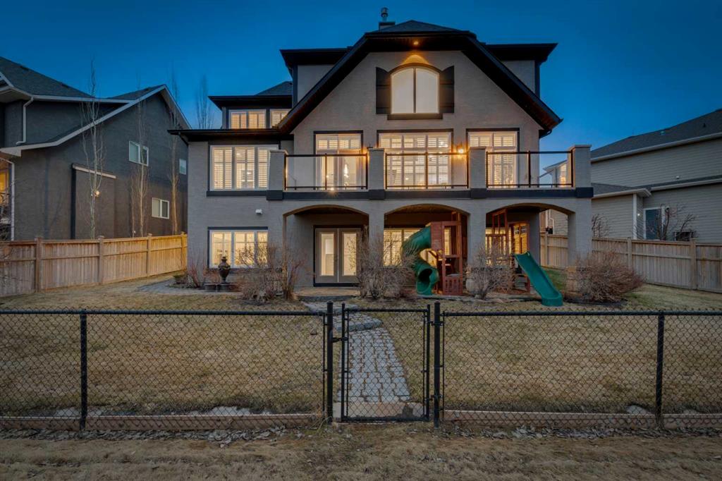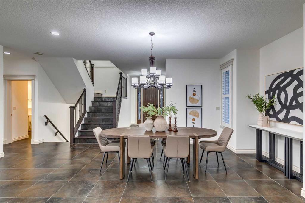 This fully finished WALKOUT two-storey estate home offers over 3,260 sq.ft. above grade, complemented by a beautifully developed basement and a TRIPLE ATTACHED GARAGE. Designed to impress, the main level showcases expansive principal rooms, soaring ceilings, and refined finishes throughout. Stunning large-format tile spans the main floor, while a dramatic two-storey, double-sided fireplace creates a striking architectural focal point—elegantly separating the living room from the kitchen and dining nook while adding warmth and ambiance to both spaces.
