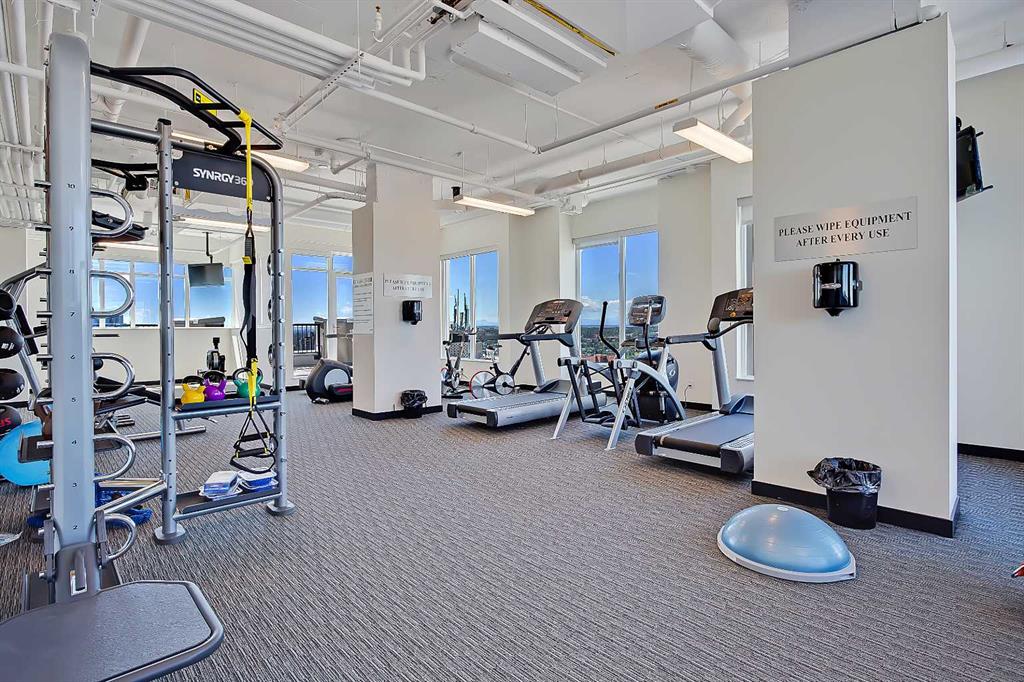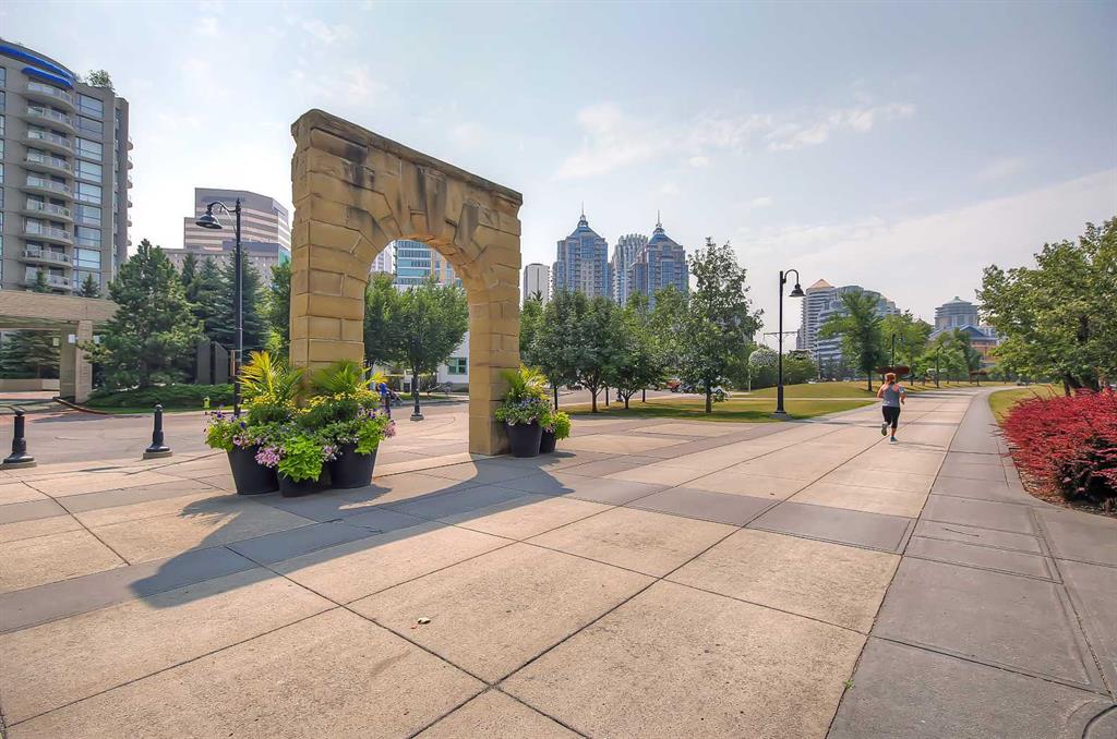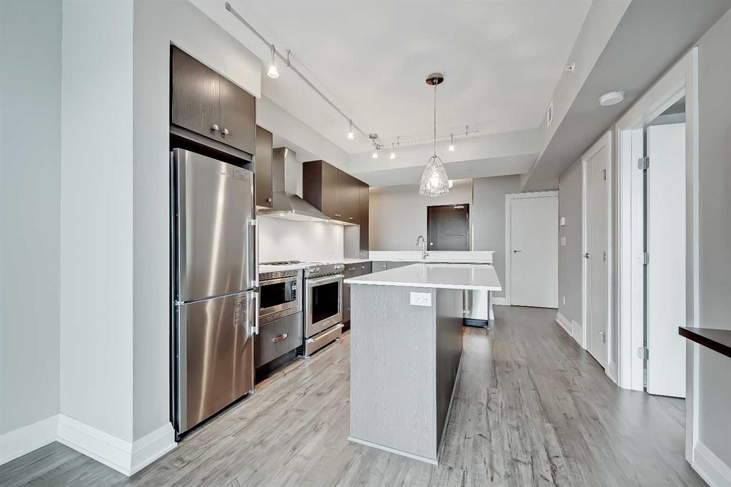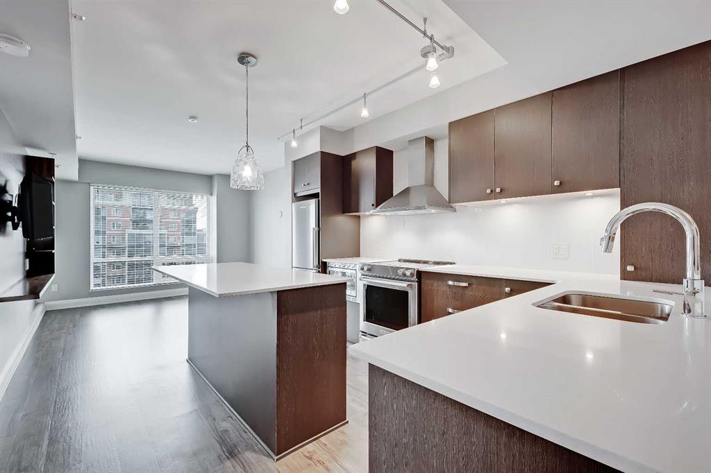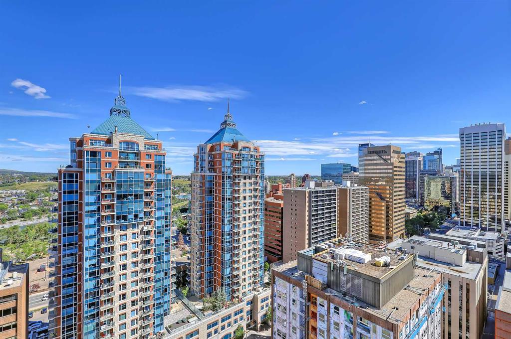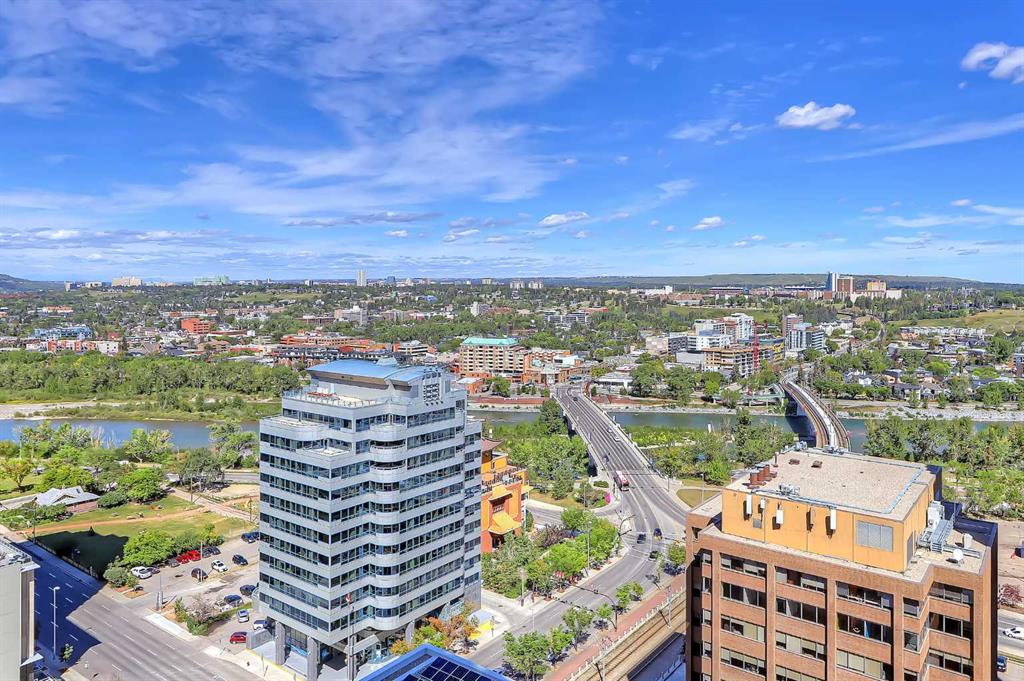 **Multiple Units & Floorplans Available - VISIT MULTIMEDIA LINK FOR FULL DETAILS!** This bright NORTH-facing 1-bed + den unit in upscale VOGUE w/ stunning PANORAMIC RIVER VIEWS from the 22nd floor and UNDERGROUND PARKING in upscale Vogue is a must-see! There are only 4 upgraded floors in the Vogue building which were specially customized for Bedouin Suites, and this is one of them! EXCLUSIVE BEDOUIN FEATURES include upgraded hallways and common areas, as well as INCREDIBLE UNIT UPGRADES like custom kitchen islands with bar seating, upgraded appliances & lighting including dimmers throughout, custom bedroom panelling including built-in side tables with convenience plugs, upgraded bathrooms with tile wainscoting and glass shower doors, built-in closets throughout, built-in walnut entertainment units, a Smart Sensor energy management system for the eco-minded buyer and MORE! This customized ‘VARSITY’ floorplan also had a kitchen wall removed for improved flow and natural light, and WOW, does it look good! This condo presents modern living at its finest, including an open-concept floor plan filled with natural light through ample floor-to-ceiling windows complimented by luxury vinyl plank flooring adorning the main living spaces. The modern kitchen boasts woodgrain cabinets w/ modern hardware & under cabinet lighting, a specially-designed central island with quartz counters, tile backsplash, dual basin undermount sink, & upgraded s/s appliances including a chimney-style hood fan. The open main living area features a built-in walnut entertainment unit with a wall-mount TV included & access to a large balcony w/ gas line for a BBQ & panoramic views of the Bow River. The bedroom features custom wall panelling w/ built-in side tables, wall sconce lighting and a convenient receptacle w/ a USB port, plus an included wall-mounted TV. A large walkthrough closet w/ built-in organizers and stacked laundry leads to the 4-pc bathroom complete with occupancy-sensored lights, quartz countertops, tile wainscoting, an undermount sink with modern faucet, tile backsplash, modern vanity with storage, tile floors, and a large tub/shower combo with full height tile and an upgraded glass door. Complete w/ a sizeable den, a perfect home office or flex space, a titled indoor parking stall in the heated parkade and a storage locker. VOGUE is a high-end building w/ a ton of amenities, including central A/C, an elegant formal lobby, full-time concierge, gym, billiards, large party room w/ kitchen, yoga studio, 36th floor Sky Lounge, & multiple rooftop terraces. Surrounded by parks, transit, the LRT, shopping & more, & within walking distance to the downtown core & all Kensington shops & services – this location offers the best urban lifestyle in the Downtown Commercial Core.