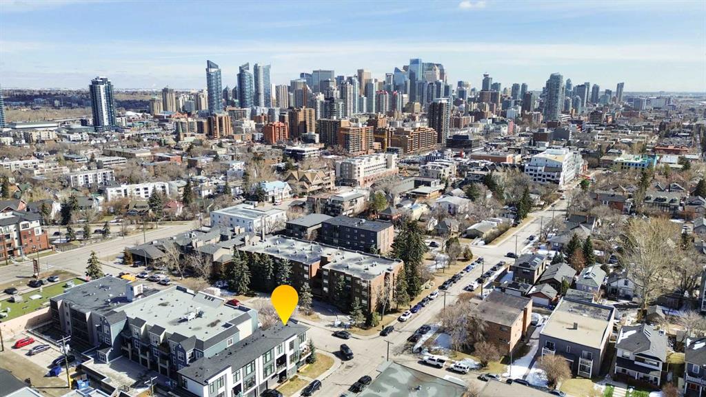 Bright, modern, and beautifully refined. On a corner lot with exceptionally low condo fees. This is inner-city living at its best in the heart of Calgary. Wake up to beautiful eastern sunrises and enjoy natural light all day long thanks to expansive south-facing, floor-to-ceiling windows that flood the home with warmth and energy. Step outside and you’re moments from the vibrant energy of 17th Avenue SW, your morning coffee at Our Daily Brett, and close to all the shops, dining, and lifestyle amenities of Marda Loop. For outdoor enthusiasts, the Bow River pathway system is just 1.5 km away... perfect for runners, cyclists, and evening strolls. This home offers the rare convenience of your own private driveway and an oversized single attached garage (ideal for secure parking, additional storage, or even a home gym setup). Inside, you’re welcomed by a bright and versatile main-floor flex space. Whether you need a home office, creative studio, guest room, or workout area, this space adapts to your lifestyle. Upstairs, the second level is the true heart of the home. Designed with open-concept living in mind, it features a beautifully appointed kitchen with custom cabinetry, a stainless steel appliance package, and an oversized island that’s perfect for entertaining. A dedicated dining area provides space for hosting, while the adjacent living room offers a cozy retreat complete with an electric fireplace. Step outside onto the wrap-around corner balcony... your private outdoor oasis for morning coffee or evening unwinding. A convenient powder room and in-suite laundry complete this level. The top floor is designed for comfort and privacy, featuring two primary bedrooms... each with its own ensuite. One boasts a spacious walk-in closet, while the other offers dual closets with a built-in organizational system, making it ideal for shared living or hosting guests. Stay cool through Calgary’s warm summer months with top-of-the-line air conditioning. Perfectly suited for urban professionals or anyone seeking a low-maintenance lifestyle close to the city’s best amenities, this home combines style, function, and location in one exceptional package. Located in a self-managed fourplex with incredibly low condo fees, this is a rare opportunity to enjoy high-end townhome living without the typical costs.