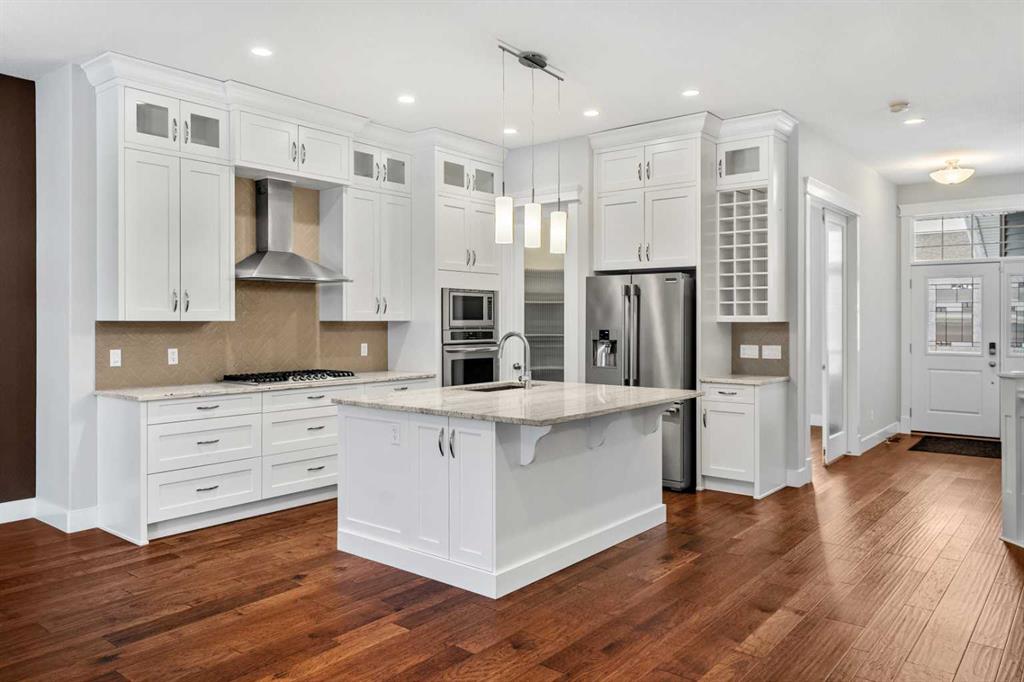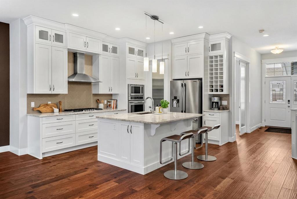 Welcome to 2253 Bayside Road, where sophistication, comfort and exceptional style meet WATERFRONT LIVING. This is a RARE opportunity to own a fully finished walkout bungalow on one of the most highly sought-after streets in Bayside Estates. Situated on a prime lot, this home features a SOUTHWEST-FACING backyard with unobstructed canal views and NO PATHWAY BEHIND YOU, ensuring ULTIMATE privacy and year-round afternoon sun. It’s perfect for sunny afternoons watching the ducks swim by, gathering around a fire with family in the evening or enjoying a peaceful morning coffee with a view. Inside, you’re greeted by 10-foot ceilings, engineered hardwood floors and thoughtfully designed storage. The home office offers a large window overlooking the front porch while remaining private thanks to MATURE LANDSCAPING. The kitchen is a showstopper, featuring a central island with GRANITE COUNTERTOPS, an under mount sink, a large pantry, ceiling-height cabinetry (no dusting required!) and high-end stainless steel appliances including a gas range, built-in oven and microwave. A formal dining area flows seamlessly into the living room where a gas fireplace provides a cozy focal point. With a generous island for barstools, a formal dining area and expansive living space, this home is designed for effortless entertaining. From the living room, step through upgraded French doors with European-style locks onto your expanded, custom extended back deck offering even more space for entertaining, relaxing or enjoying the canal views. This outdoor oasis includes a staircase to the yard, a remote-controlled awning and SUN COAST REMOTE CONTROLLED RETRACTABLE SCREENS covering both UPPER and LOWER decks, perfect for wind protection during the day or private evenings by the canal at night. This luxury feature is rare and highly desirable, especially for a waterfront home. The primary bedroom includes a walk-in closet and a spa-like five-piece ensuite with dual sinks, a soaker tub and a separate shower. A spacious second bedroom, a full four-piece bathroom, and main-floor laundry complete this level. The garage impresses with EPOXY FLOORS & SLAT WALLS for organized storage. Downstairs, enjoy 9-foot ceilings, large windows and upgraded French doors opening directly to your backyard. A highlight of the basement is the wet bar overlooking the expansive rec space, ideal for game nights, barbecues and gatherings. The lower level also includes a large bedroom and another four-piece bath with premium finishes. Upgrades throughout this home include a NEW FURNACE, NEW ON-DEMAND HOT WATER, NEW WATER SOFTENER, IRRIGATION SYSTEM, WINDOWS, DOORS, GEMSTONE LIGHTING, CENTRAL VACUUM, and AIR CONDITIONING. Meticulously maintained by the original owner, this turnkey property is truly move-in ready. With top schools like Nose Creek, R.J. Hawkey, and W.H. Croxford, scenic walking paths, parks such as Chinook Winds, nearby shopping, dining and easy access to Calgary. CALL FOR A PRIVATE VIEWING TODAY!