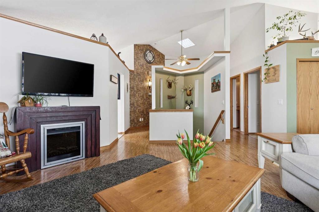 **Open house Saturday April 11 from 1-3pm** Walk-out bungalow with over 2,600 sq ft of total living space, ideally located just steps from the Sheep River Valley and its extensive walking path network. This well-laid-out home offers 5 bedrooms and 3 bathrooms, with vaulted ceilings through the main living area creating an open, airy feel. The kitchen features stainless steel appliances, and main floor laundry adds everyday convenience. The primary bedroom includes a walk-in closet and full ensuite. The fully finished walk-out basement is warmed by in-floor heat and includes a large recreation room with direct access to the spacious backyard, along with 3 additional bedrooms, a full bathroom, and a large mechanical and storage room. Outside, the home has strong curb appeal with a generous front porch, while the heated and insulated double attached garage offers high ceilings.