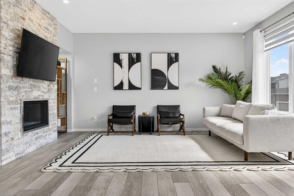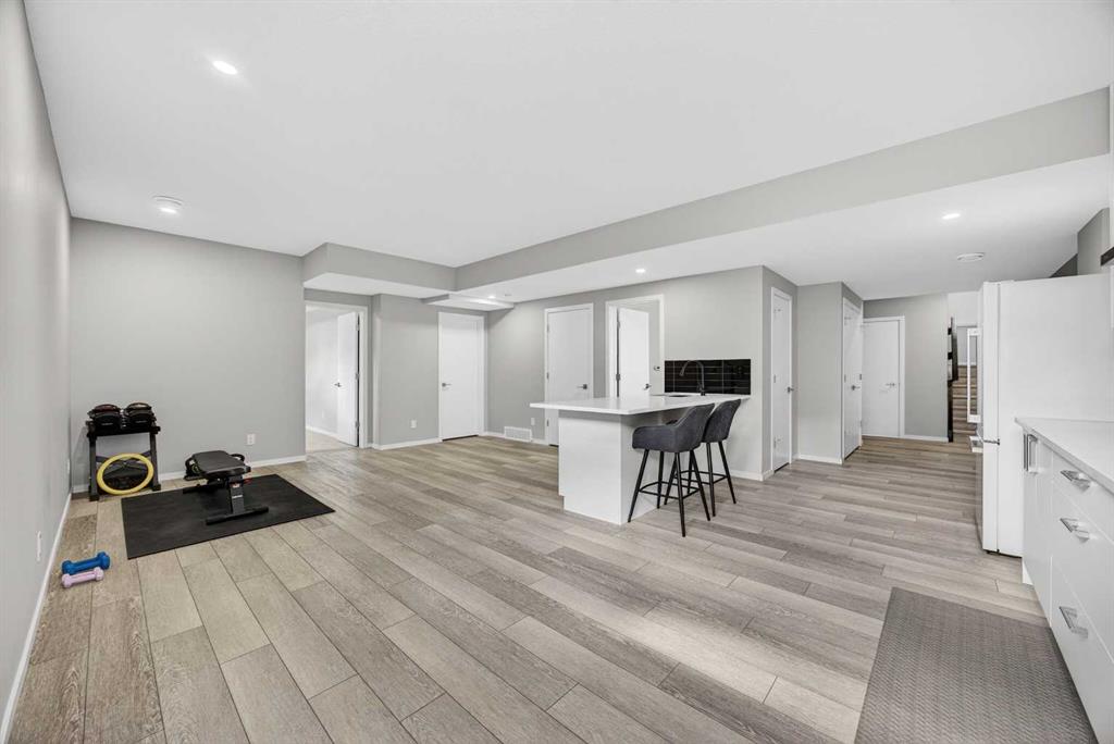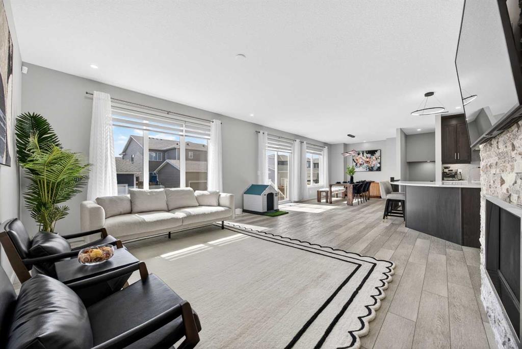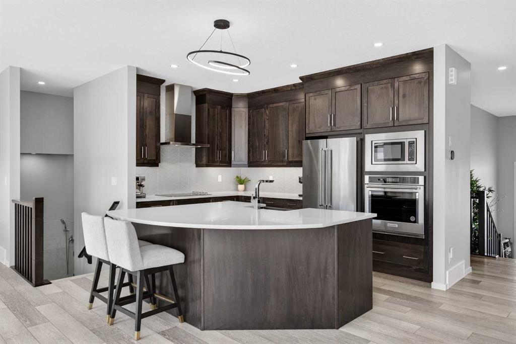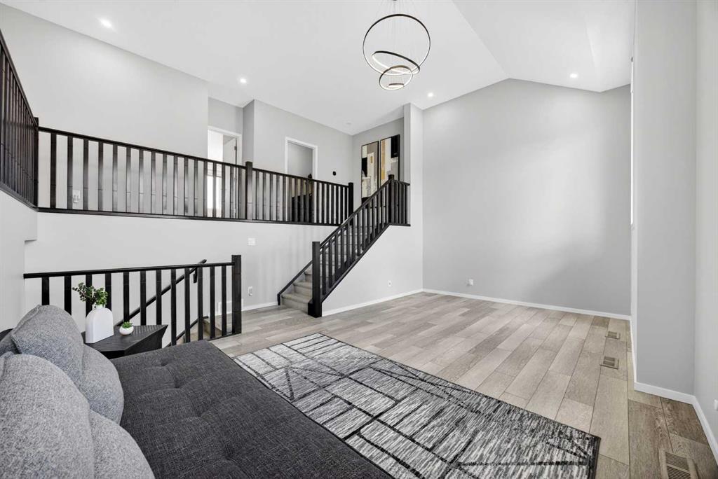 WOW! I don't even know where to start with this amazing home! So much space and room to grow in this IMMACULATE home that still shows like brand new! As you enter the home you are greeted with a spacious entrance and as you come up a few stairs to the main living areas you have a convenient private office space, a WIDE OPEN floor plan in the kitchen, living room and dining areas! The kitchen is a chefs dream with a HUGE island, quartz countertops, loads of cabinet space, cooktop, built in wall oven, central sink in the island, chevron style backsplash, a walk in pantry and upgraded lighting! The living room features a floor to ceiling stone wall where the gas fireplace ties in seamlessly, beautiful vinyl flooring throughout the main floor, a generous sized dining area that can accommodate a massive table if needed and there is access to the back yard from the living/dining areas! As we make our way upstairs you have a totally separate and HUGE bonus room with soaring vaulted ceilings and tons of natural light! As we keep going upstairs to the bedrooms there is an upper level laundry room with a sink , the primary bedroom is awesome and it has a sunny south exposure, a walk in closet that is massive and the ensuite bathroom has dual sinks, quartz counters, soaker tub and a separate shower! The remainder of the upper level features THREE more bedrooms (all a great size!) and another full bathroom with dual sinks as well! As if that wasn't enough we ALSO have a fully finished basement with a side entrance, kitchen area (no stove) but there is a second fridge, additional washer and dryer, tons of storage and a 5th bedroom as well as a large living area that could be suited in the future if needed. This home has it ALL - in addition to all of this there is also a professionally built dog wash area in the mudroom, south facing back yard that will have brand new sod installed soon, a double front attached garage, super close and convenient to all of the areas amenities, schools, parks, playgrounds, golf courses, Stoney and McLeod trails! This home is one of the special ones you don't see very often and is ready for the new owners to love it as much as the current ones do! Don't miss this one!