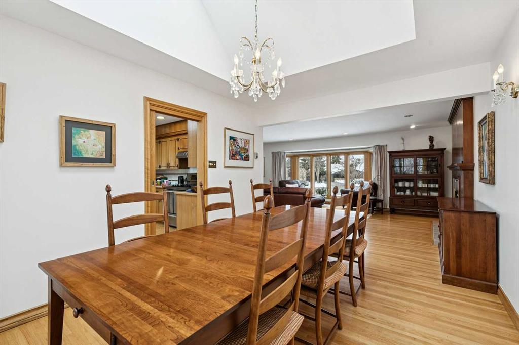 Nestled on prestigious Crestview Road in sought-after Elbow Park, this midcentury modern family home offers over 3,200 sq. ft. of developed living space with 3 bedrooms and sits on a rare 9,000+/- sq. ft. pie-shaped lot across from River Park. This is an exceptional opportunity to move in, renovate, or build your dream home in one of Calgary’s most coveted inner-city communities. Pride of ownership is evident throughout this well-maintained residence. The main floor welcomes you with a spacious foyer, leading to an elegant and bright living room featuring gleaming hardwood floors and a charming wood-burning fireplace. The adjoining formal dining room is enhanced by a skylight, creating a warm and inviting space ideal for hosting. The kitchen is both functional and stylish, complete with stainless steel appliances, cork flooring, multiple skylights, and a sunny eating nook with a bay window overlooking the private, beautifully landscaped backyard and patio—perfect for outdoor entertaining. The upper level offers a spacious and tranquil primary retreat with a sitting area, dual closets, and a 4-piece ensuite. Two additional generously sized bedrooms complete this level both with outstanding park views. Just steps from the kitchen, a comfortable family room with custom built-ins provides the perfect space for everyday living. The fully developed lower level features a large recreation room, ideal for a media area, games room, or home gym, along with abundant storage space. Additional highlights include the expansive yard, mature trees, and exceptional privacy rarely found in inner-city locations. Enjoy an unbeatable lifestyle just steps to River Park and the Elbow River pathway system, with easy access to scenic walking and cycling trails. Close to top-rated schools, parks, playgrounds, and the vibrant shops and restaurants of Britannia, Marda Loop and trendy Mission. Conveniently located just minutes to downtown Calgary, yet tucked away on a quiet, tree-lined street in a highly desirable community known for its charm and strong sense of community.