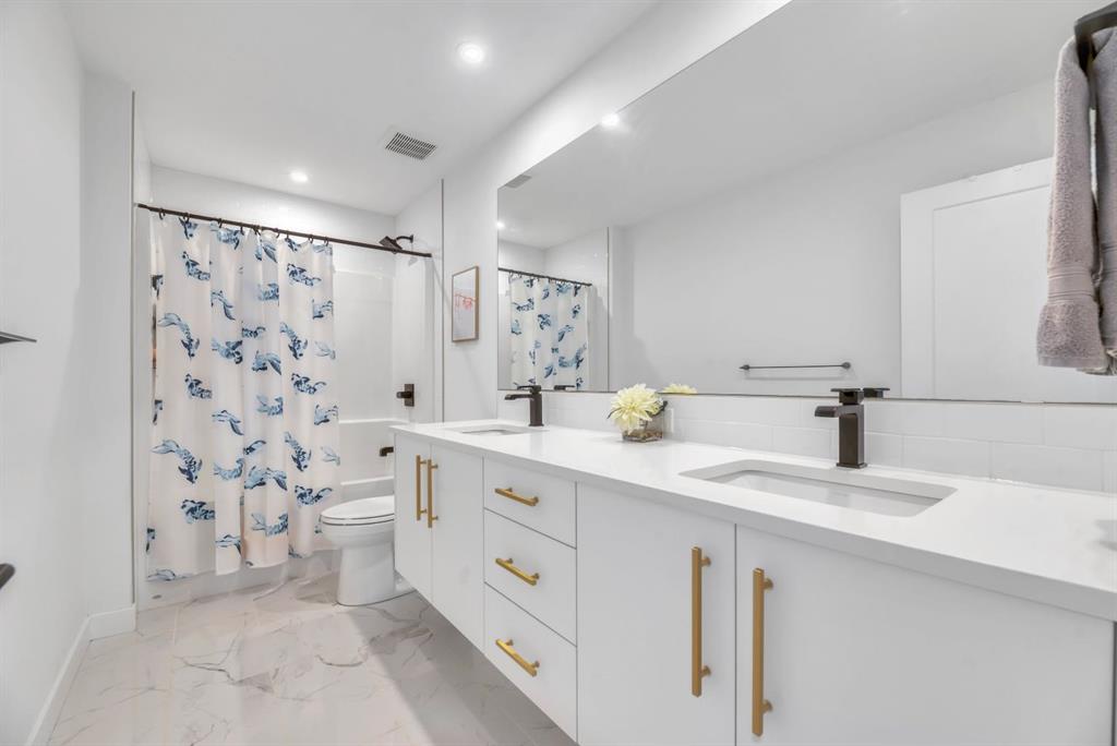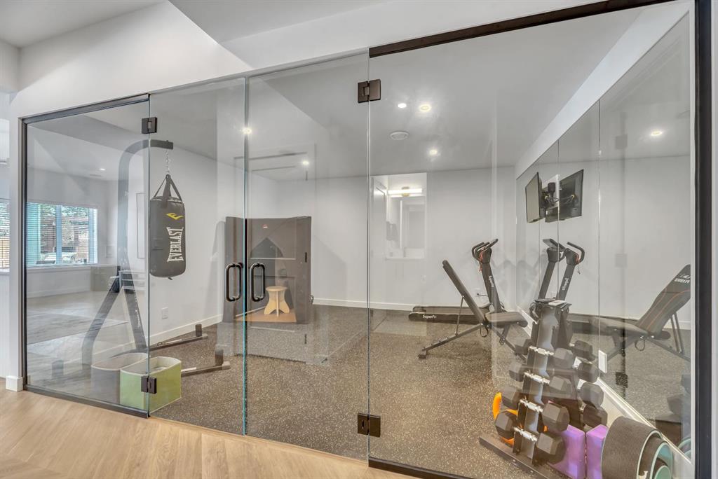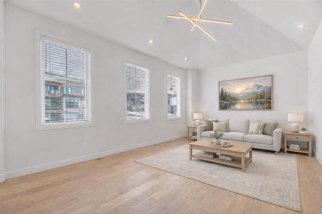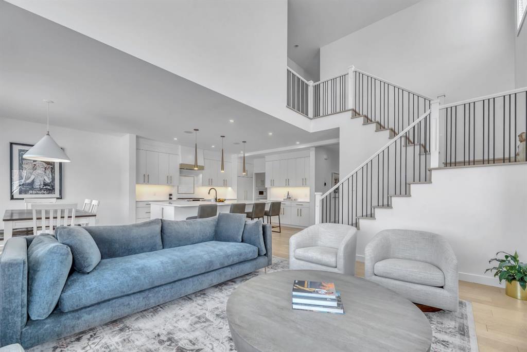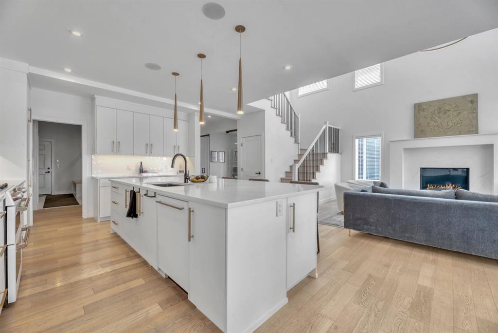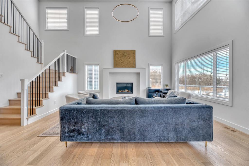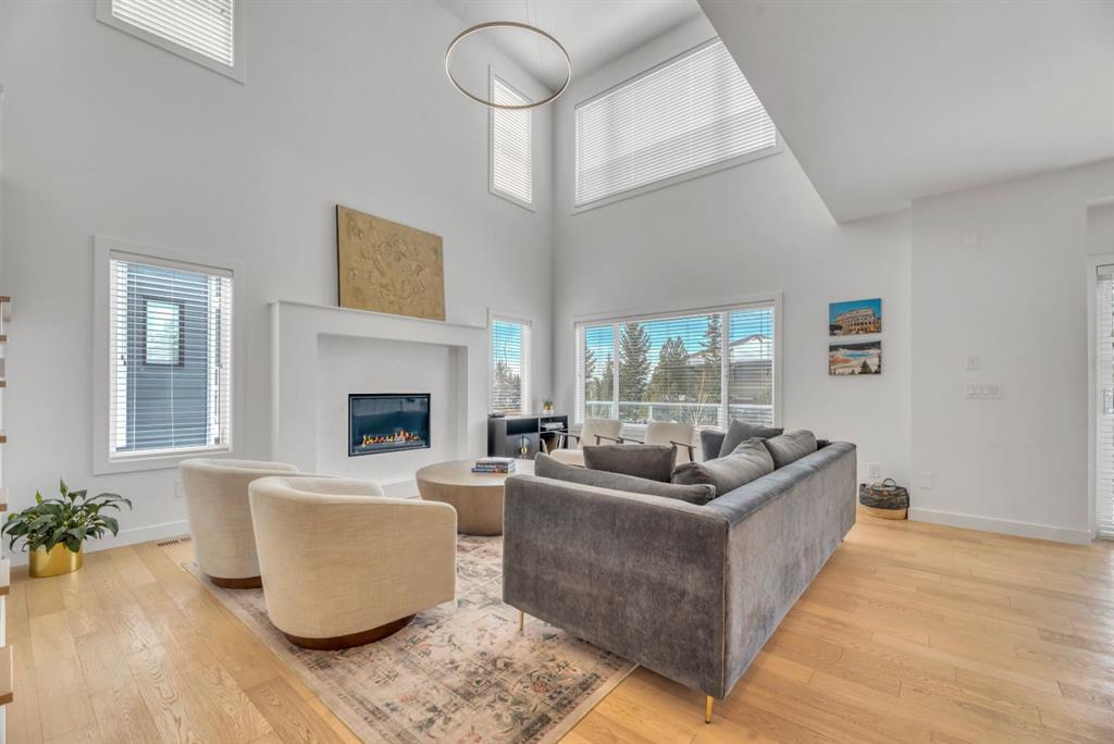 Welcome to an exceptional offering in the prestigious community of Springbank Hill, where elevated design meets everyday function in this stunning 2,806 sq ft + fully finished walkout home backing onto a natural ravine & pathway system with MOUNTAIN VIEWS. From the moment you arrive, the home impresses with a spacious entry & refined finishes throughout, inc. white oak hardwood flooring. A private front den, enclosed by sleek panel glass doors, provides the perfect home office space. The heart of the home is the breathtaking open-to-above great room, anchored by a large scale framed fireplace, while expansive windows flood the space with light & showcase the tranquil ravine views. The designer kitchen is both sophisticated & functional, with white flat-panel cabinetry, matte gold hardware, custom panel French door fridge and dishwasher, Cafe collection 6 burner gas range with double oven and a custom hood fan. A brilliant mix of modern & traditional elements with a blend of herringbone with gold trimmed subway tile niche & a beautifully patterned white quartz counter. Thoughtfully designed pantry shelving, small servery with microwave-cabinet & a well-appointed mudroom elevate everyday convenience. Step outside to your full-width upper deck, the perfect setting to unwind while enjoying uninterrupted views & privacy. Upstairs, the home continues to impress with a vaulted front bonus room featuring a full wall of shelving, along with a well designed laundry room with built-in storage & wash sink. The primary retreat is a nice sanctuary, offering stunning mountain views, a spa-inspired ensuite with separate vanities, a freestanding oval tub, a fully tiled shower with bench & body sprays, & a fabulous walk-in closet with smart built ins. A well-appointed second bath features dual sinks, storage and 2 additional perfect sized bedrooms makes this upper floor an ideal layout. The fully developed walkout basement is designed for both lifestyle & wellness, featuring chevron-laid white oak hardwood flooring, a fantastic rec room space - perfect for a home theatre/games room, & a private gym with full mirror wall, specialized flooring, & glass partition. A spacious fourth bedroom & full 3 pc bath with tiled shower complete this level. Additional features include central air, water softener, & built-in speakers throughout. Outdoors, the professionally landscaped yard with irrigation blends seamlessly into the surrounding environment, offering a rare private setting. Located in one of Calgary’s most sought-after Westside communities, this home offers access to some of the city’s top-rated schools, inc. Webber Academy, Calgary Academy, Rundle College, Ernest Manning and Griffith Woods School. Enjoy quick access to Aspen Landing, Westside Recreation Centre, boutique shopping, dining, paths, major routes and only 15 mins to downtown. This is a rare opportunity to own a modern yet warm & inviting, impeccably finished walkout home in an amazing location.