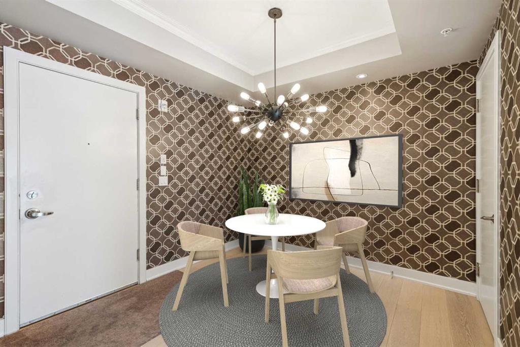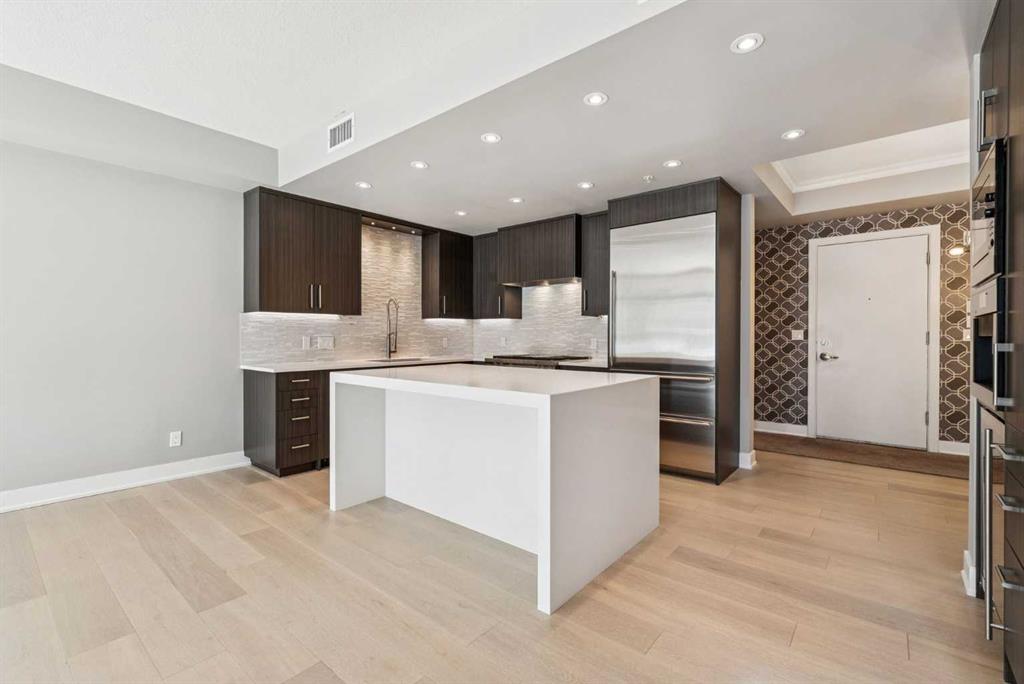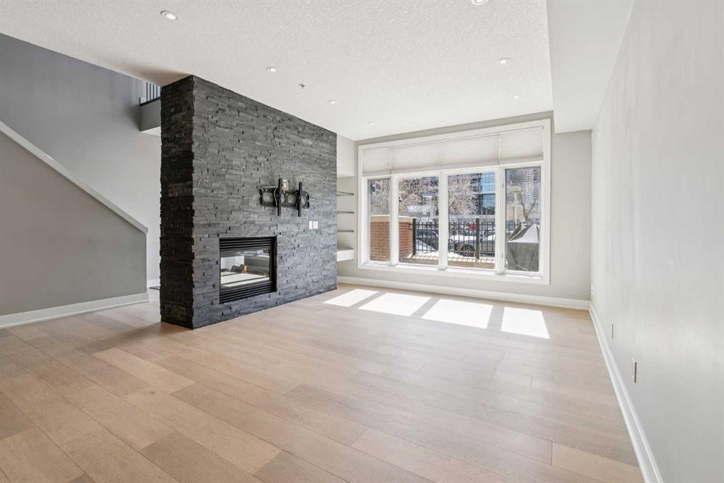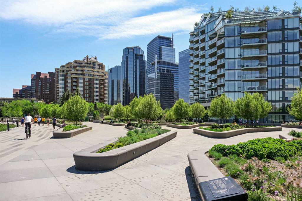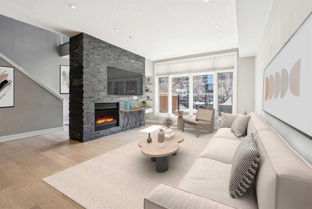Time to indulge in the pinnacle of luxury, elegance and comfort at this exclusive premier gated condominium home in the Princeton Cityscape! This stunning residence offers an unparalleled blend of sophistication and functionality featuring 2 bedrooms plus den, 2 bathrooms, 2 titled parking stalls and secure titled storage locker. The thoughtfully designed open-concept layout with high ceilings seamlessly connects the living, dining and kitchen areas, creating a perfect environment for entertaining or enjoying quality time relaxing at home. Completely renovated with high-quality finishing and meticulous attention to detail! Enjoy the many features and upgrades with wide plank hardwood flooring, quartz countertops and eat-in Island, stainless steel appliances, gas stove, built-in coffee maker and wine fridge, soft close drawers throughout, central air conditioning, electronic Hunter Douglas blinds, 2 sided gas fireplace, ensuite bathroom with steam shower, walk-in closet, high-end stack washer/dryer, den/office area, spacious south facing terrace patio, balcony, large bright floor-to-ceiling windows, built-in vacuum system, under stairs storage room, huge primary bedroom, convenient front/back entrances, generous amount of recessed lighting and views of the night time City lights! This dream come true condominium home has it all! Extraordinary heart of Eau Claire location along the south bank of the Bow River next to beautiful Prince's Island Park and the world-class pathway system. Enjoy everything this amazing downtown community has to offer that includes the Eau Claire Athletic Club, fine dining, great restaurants, outstanding cafes and bakeries, amazing pubs, close to the plus 15 skywalk system, LRT & Transportation, Peace Bridge and just a short walk to Kensington shopping and Calgary's vibrant city center. Time to enjoy the ultimate in downtown urban living!