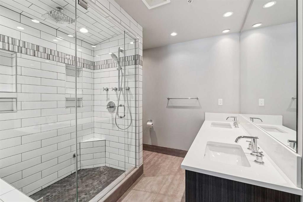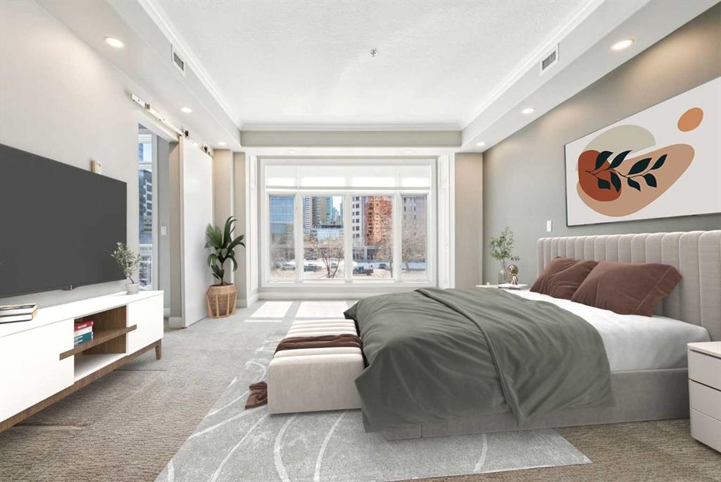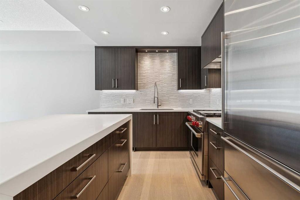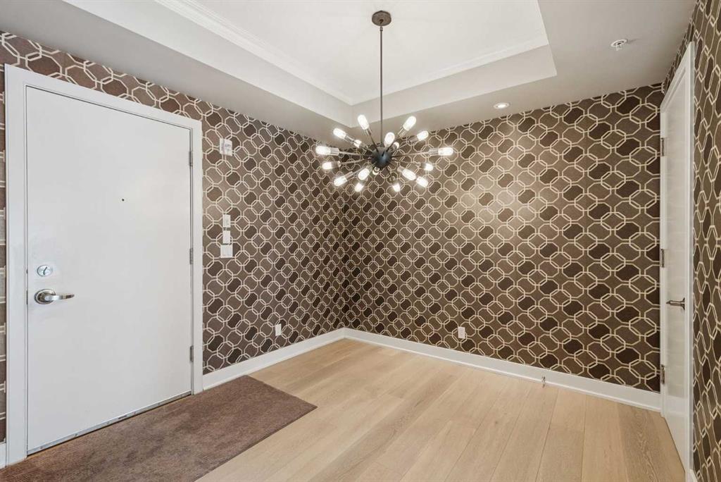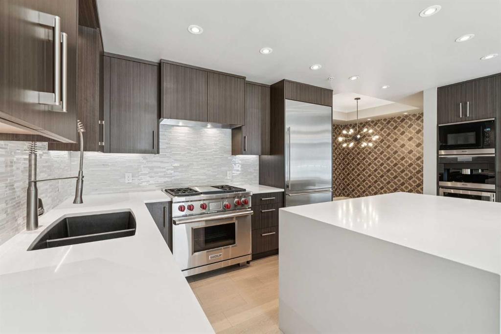 Time to indulge in the pinnacle of luxury, elegance and comfort at this exclusive premier gated condominium home in the Princeton Cityscape! This stunning residence offers an unparalleled blend of sophistication and functionality featuring 2 bedrooms plus den, 2 bathrooms, 2 titled parking stalls and secure titled storage locker. The thoughtfully designed open-concept layout with high ceilings seamlessly connects the living, dining and kitchen areas, creating a perfect environment for entertaining or enjoying quality time relaxing at home. Completely renovated with high-quality finishing and meticulous attention to detail! Enjoy the many features and upgrades with wide plank hardwood flooring, quartz countertops and eat-in Island, stainless steel appliances, gas stove, built-in coffee maker and wine fridge, soft close drawers throughout, central air conditioning, electronic Hunter Douglas blinds, 2 sided gas fireplace, ensuite bathroom with steam shower, walk-in closet, high-end stack washer/dryer, den/office area, spacious south facing terrace patio, balcony, large bright floor-to-ceiling windows, built-in vacuum system, under stairs storage room, huge primary bedroom, convenient front/back entrances, generous amount of recessed lighting and views of the night time City lights! This dream come true condominium home has it all! Extraordinary heart of Eau Claire location along the south bank of the Bow River next to beautiful Prince's Island Park and the world-class pathway system. Enjoy everything this amazing downtown community has to offer that includes the Eau Claire Athletic Club, fine dining, great restaurants, outstanding cafes and bakeries, amazing pubs, close to the plus 15 skywalk system, LRT & Transportation, Peace Bridge and just a short walk to Kensington shopping and Calgary's vibrant city center. Time to enjoy the ultimate in downtown urban living!