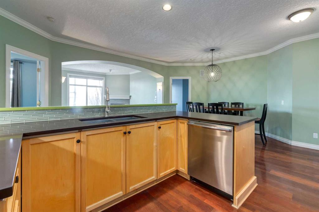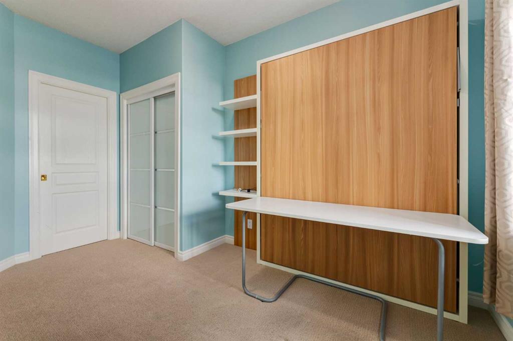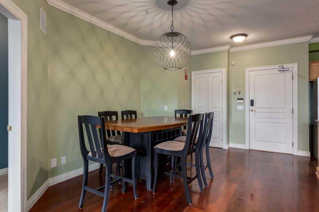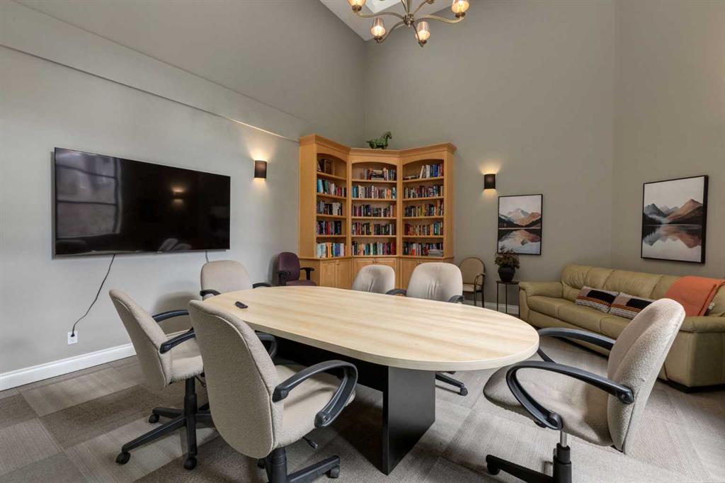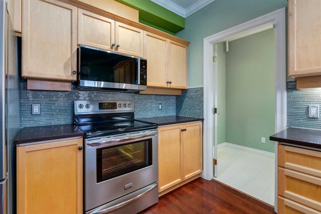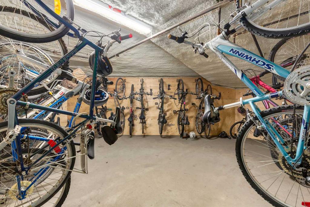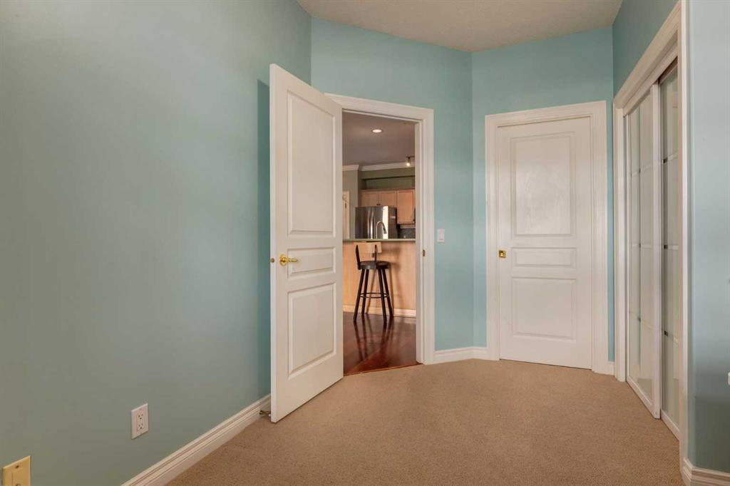 Welcome Home! Enjoy exceptional panoramic views of downtown Calgary from this stunning and stately third-floor condo, offering over 1,000 square feet of thoughtfully designed living space. Relax and unwind in the bright, open-concept living area featuring a cozy natural gas fireplace. Step outside to your private deck, which has a natural gas hookup perfect for year-round BBQing and entertaining. The well-appointed laundry room is conveniently located within the unit and includes a full-size washer, dryer and additional storage. The gourmet kitchen is designed for both function and style, showcasing stainless steel appliances, quartz countertops, and a two-tier breakfast bar. This home features two spacious bedrooms and two full bathrooms. The primary bedroom offers a private retreat with a walk-in closet and a luxurious ensuite complete with dual sinks, a separate shower and a full-size soaker Jacuzzi tub.The second bedroom includes a custom-built Murphy bed with an integrated desk which is ideal for guests, a home office or flexible living space. Additional upgrades include a built-in alarm and speaker system (8 speakers with dual volume controls), fresh paint in the bedrooms and living area (2026), a new washer (2025) and a new microwave (2026). The River Grande Estates complex is designed for comfortable living and is a community featuring a beautiful, peaceful courtyard, library, games and recreation room with a pool table, two underground car wash bays and indoor visitor parking. Parking is simple and secure with your titled, heated underground parking stall. This home also includes an assigned storage locker and bicycle storage is available for a small fee. Located in the highly desirable Erlton community, this amazing inner-city location offers parks, pathways and convenient access to downtown Calgary. You are within walking distance of the MNP Community & Sport Centre, featuring a pool, gym, and indoor track, as well as downtown, the Saddledome, Stampede Grounds, Calgary Tower and LRT access. Move-in ready. Call today to view your next home.