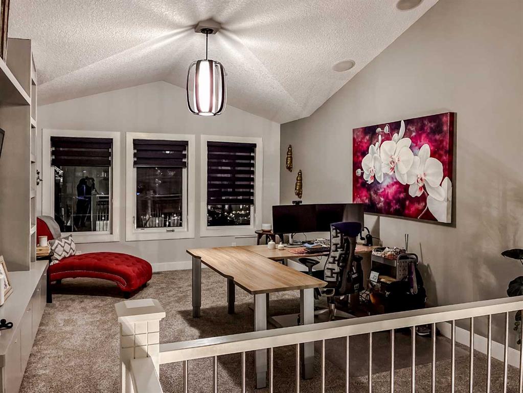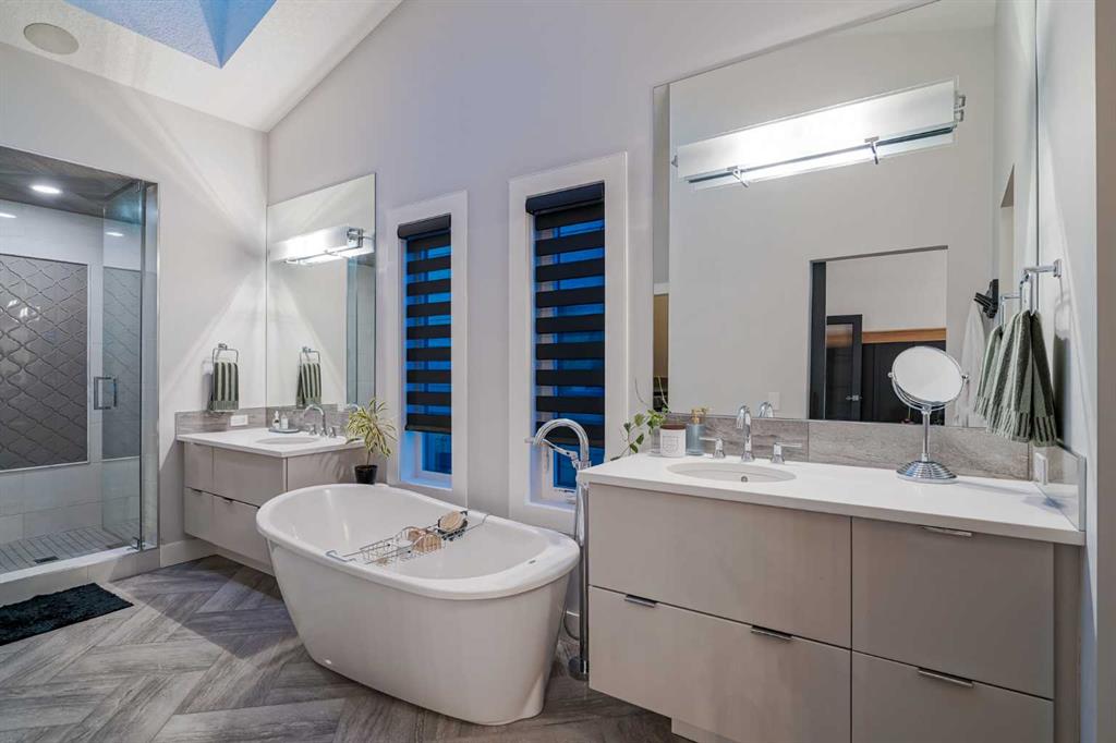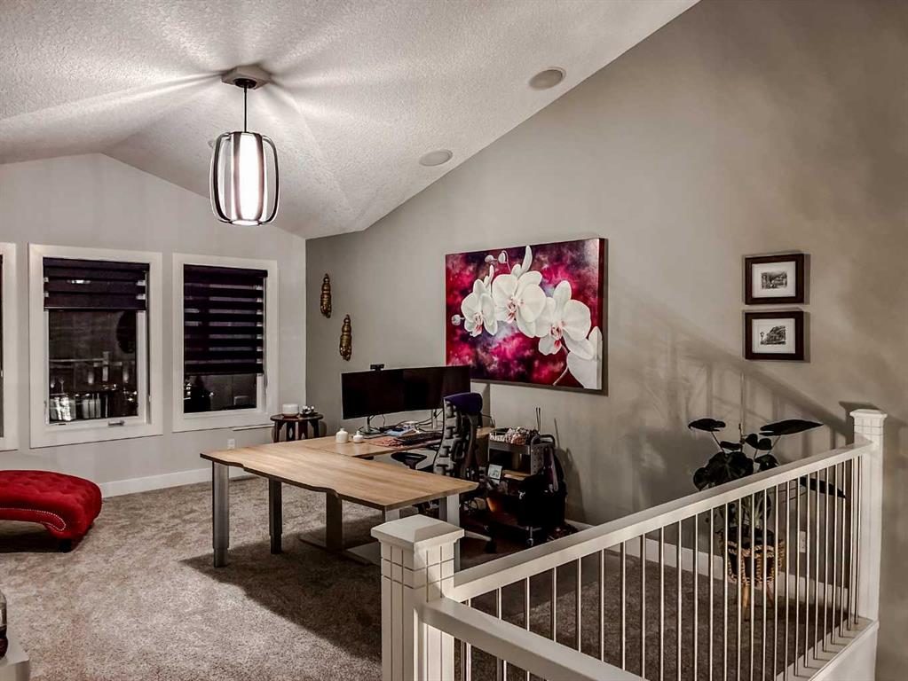 **OPEN HOUSE SAT APR 11th 12PM - 2PM / SUN APR 12th 12PM - 2PM ** Welcome to this exceptional McKee-built custom home in the prestigious community of Coopers Crossing, where refined craftsmanship meets unobstructed pond-side living. Offering over 3,700 sqft of professionally developed living space, this fully finished 4-bedroom, 3.5-bathroom walk-out home delivers an elevated lifestyle defined by architectural detail and premium upgrades. From the moment you arrive, the curb appeal is undeniable - an exposed aggregate driveway, covered front porch with cedar soffit detailing, and a fully landscaped lot create a strong first impression. The 708 sqft triple tandem heated garage is both functional and impressive, complete with overhead storage and room for vehicles, toys, or workshop space. Inside, a dramatic open-rise staircase anchors the main level, while engineered hardwood flooring flows throughout. The great room is designed for both everyday living and upscale entertaining, featuring a custom fireplace surround with built-ins and expansive windows framing tranquil pond views. The chef-inspired kitchen is a true showpiece. Thoughtfully upgraded with crisp white cabinetry, double islands, and premium stainless steel appliances, it includes a 48” Jenn-Air dual-fuel gas range, Vent-A-Hood range hood, and Electrolux side-by-side refrigerator/freezer. An exquisite under mount sink and refined finishes complete this elevated culinary space. From this level, step outside to your private backyard oasis: a full-width 33’4” x 9’8” composite deck with stairs leading to professionally designed stone scaping, low-maintenance turf, and a dedicated firepit and patio area (15’4” x 10’4”). Upstairs, vaulted ceilings and two skylights flood the bonus room, primary suite, ensuite, and laundry room with natural light. The primary retreat offers serene water views and a spa-inspired ensuite designed for relaxation. Three additional bedrooms complete the upper level, including one with a charming Juliet balcony. The fully developed walk-out basement extends the living space seamlessly outdoors and features a wet bar, spacious recreation area, hobby room, and additional storage. Morning coffees overlooking the water in summer. Skating on the pond in winter. This is a home designed to be experienced in every season. Additional highlights include upper-level exterior pot lights, custom built-ins throughout, security camera system and panel, pre-wired in-ceiling speakers with two Sonos bridges, dual furnaces plus A/C. Rarely do homes combine this level of finish, functionality, and uninterrupted pond views in one of Airdrie’s most sought-after communities. This is luxury living - without compromise.