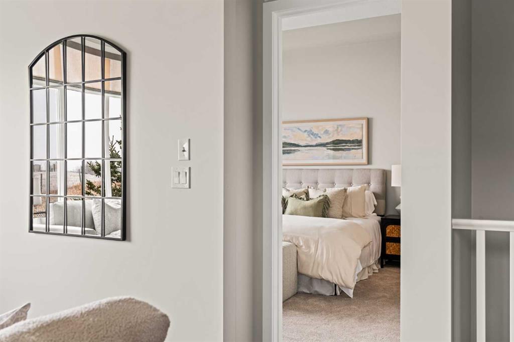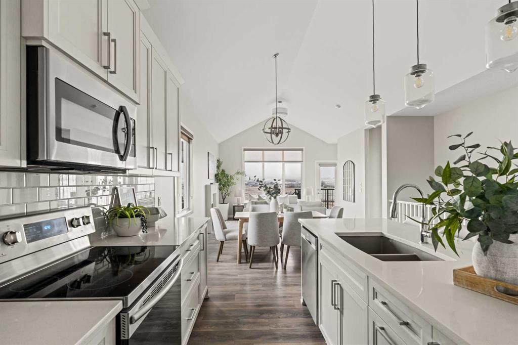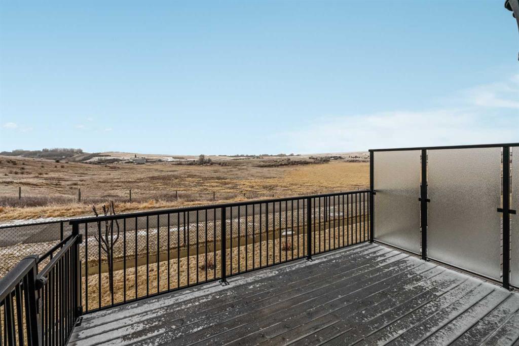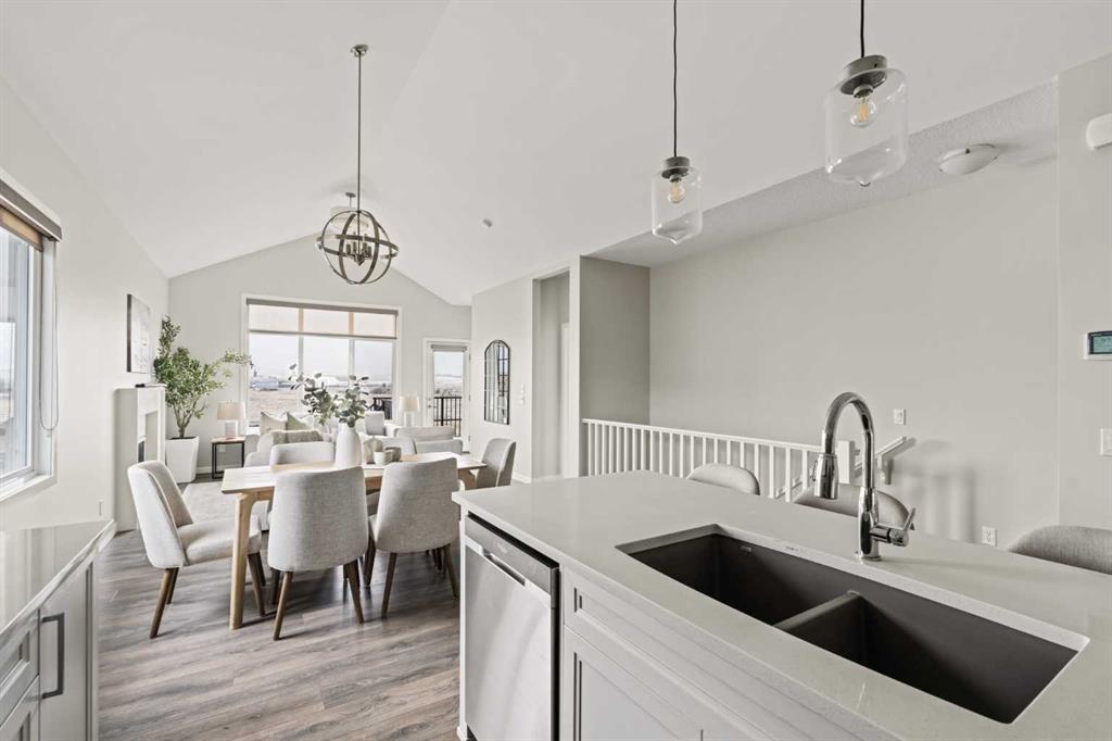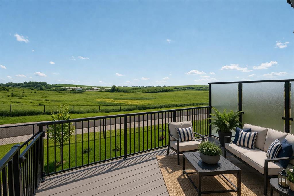 This beautifully maintained original-owner bungalow villa offers the perfect blend of elevated design and effortless living - ideal for downsizers, snowbirds, or anyone seeking a lock-and-leave lifestyle without compromise. Tucked into a quiet, small-town setting with no neighbours behind, this corner unit home delivers exceptional privacy and a peaceful backdrop, best enjoyed from the sunny south-facing backyard with viewings overlooking the pasture. Featuring 2 living areas, 3 bedrooms, 2.5 bathrooms and over 2,300 sq. ft. of developed living space, this property ensures you can easily host family and friends while creating the lifestyle you're looking for. Inside, vaulted ceilings and resilient laminate flooring create a bright, airy atmosphere throughout the main level. The open-concept design is anchored by a stylish, timeless white kitchen featuring quartz countertops, a subway tile backsplash and a suite of stainless steel appliances. A large central island provides additional dining and prep space and a large pantry ensures ample storage. The kitchen seamlessly connects to the dining area and inviting living room making this the perfect space for entertaining. The expansive main living space is anchored by a central gas fireplace with a tile surround and mantle and a wall of south-facing windows provides breathtaking views all year long. The large primary suite spans ~13'x13', offering ample space for a full bedroom suite and unobstructed views overlooking the green space behind. The primary suite includes a private ensuite featuring dual sinks, a walk-in shower, a private water closet, and a walk-in closet. The main level is complete with a conveniently located laundry room and a two-piece powder room, ensuring you can enjoy single-level living every day. The professionally developed lower level greets you with an expansive ~13'x26' recreation room that has ample space for a TV-area, home gym and games area - the options are endless! The lower level includes two bedrooms, a full bathroom, and ample storage. This home has brand-new carpet throughout and has been freshly painted, making it fully move-in ready! Completing the home is a private double attached garage that enhances both convenience and lifestyle - offering secure access, additional storage, and true lock-and-leave functionality - perfect for seasonal living or travel. Situated on one of the most desirable lots in the entire development, this incredible opportunity offers optimal natural light, a large south-facing deck with views and no neighbours behind and central A/C to keep you cool all summer long. It's perfect for those wanting to downsize without compromise. Start enjoying a maintenance-free lifestyle now in the desirable new community of Fireside, just minutes from countless amenities and a short drive to the mountains!