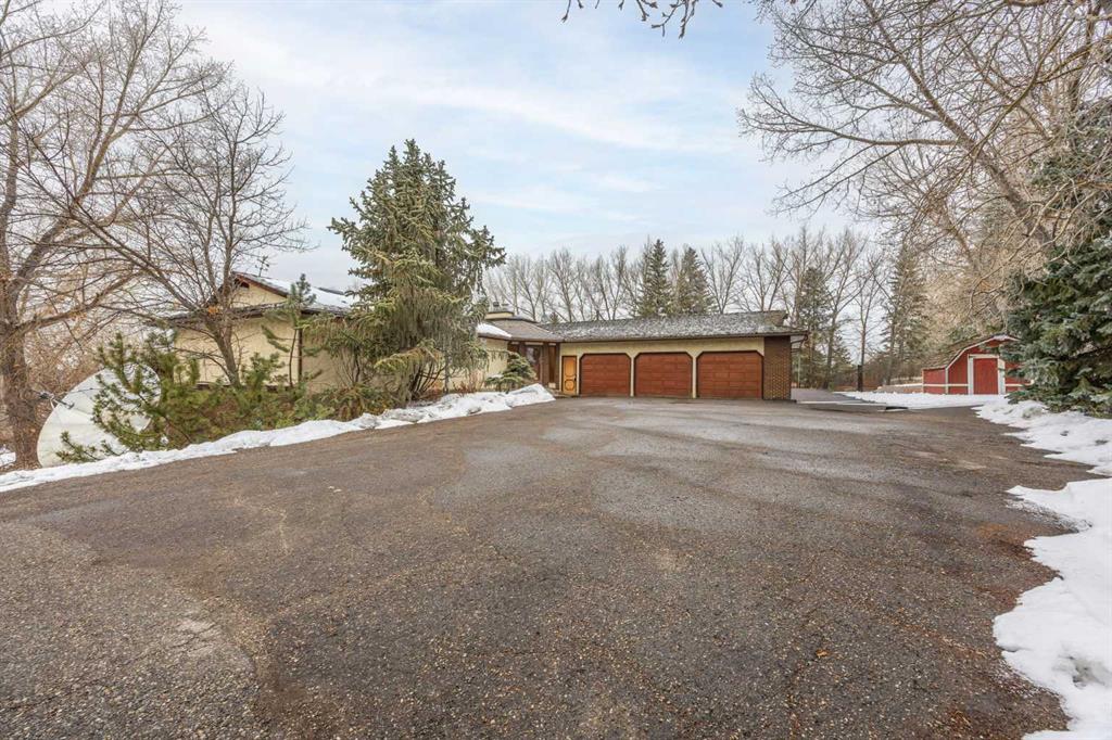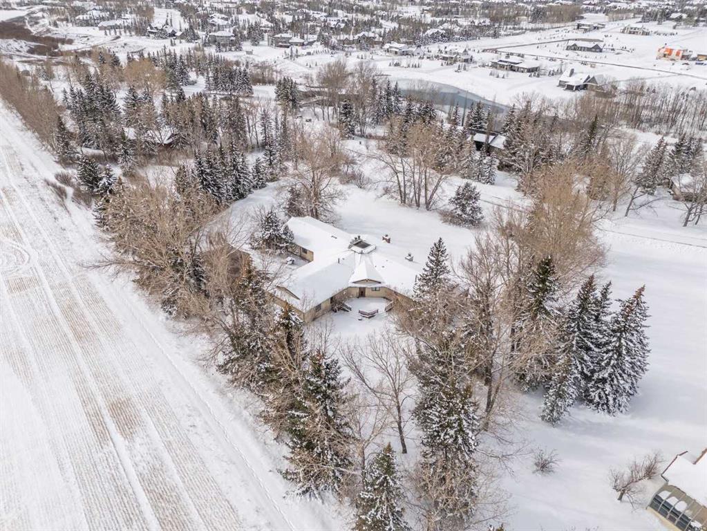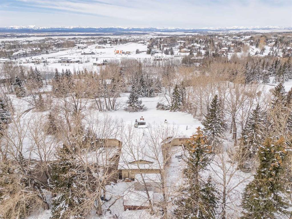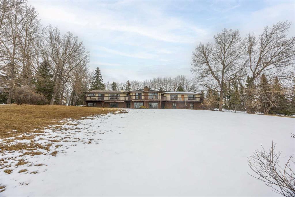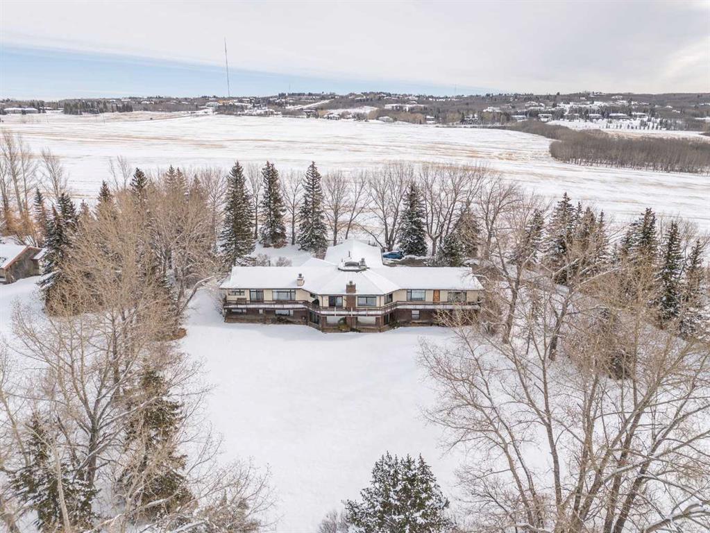 **OPEN HOUSE - SATURDAY 11-1pm** Perfectly positioned on one of Central Springbank’s most desirable streets, this property is offered for sale for the first time. Set on 2.13 hillside acres, it offers expansive west-facing views of the Rocky Mountain range, stunning sunsets, and starry skies at night. The home itself is suited for either a Buyer looking to undertake a renovation that can marry its unique and functional design, or a Buyer seeking a mature build site for a new custom home. This walkout bungalow offers over 3,450 square feet above grade, over 3,350 additional square feet in the walkout lower level, and an oversized 3-car attached garage of over 900 square feet, complete with a suspended gas heater. The main home features 6 bedrooms, 2 full bathrooms, and a powder room, with the upper level offering 3 bedrooms, a formal dining room, kitchen, and living room all anchored around a conversation pit with natural-stone fireplace. The lower level of the main home includes 3 additional bedrooms, a full bathroom, rec space, and more. The private north-wing in-law/nanny suite offers excellent flexibility for multigenerational living, with 1 bedroom and 1 full bathroom above grade, plus 2 additional bedrooms and 1 full bathroom on the lower level. Three of the home’s four wood-burning fireplaces feature natural stone and gas assist. Listed at land value, this is a rare opportunity to buy in Central Springbank where you are only 5 minutes to Calgary’s westside amenities, the Ring Road, and schools, or 45 minutes to Canmore. It is extremely rare to find a property like this with no main-road noise exposure, on a no-through street, with trees, privacy, and mountain views.