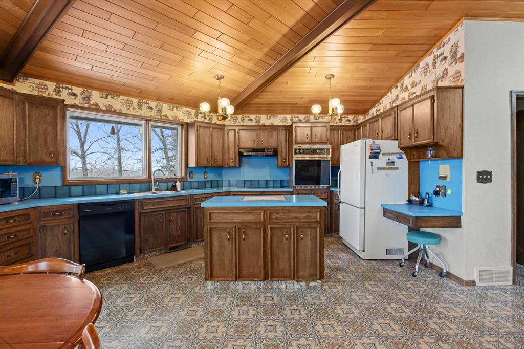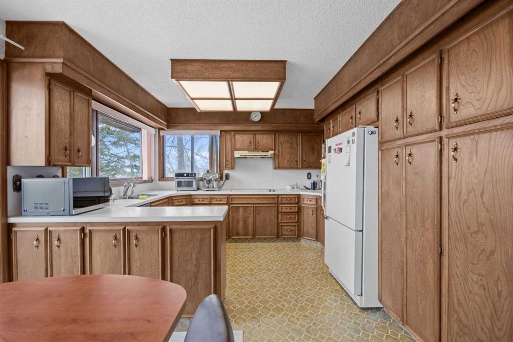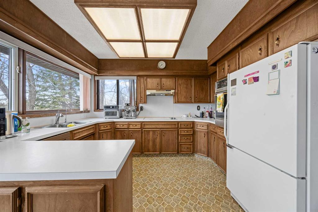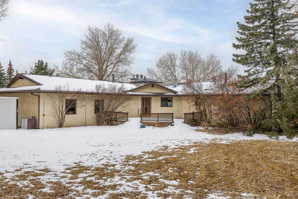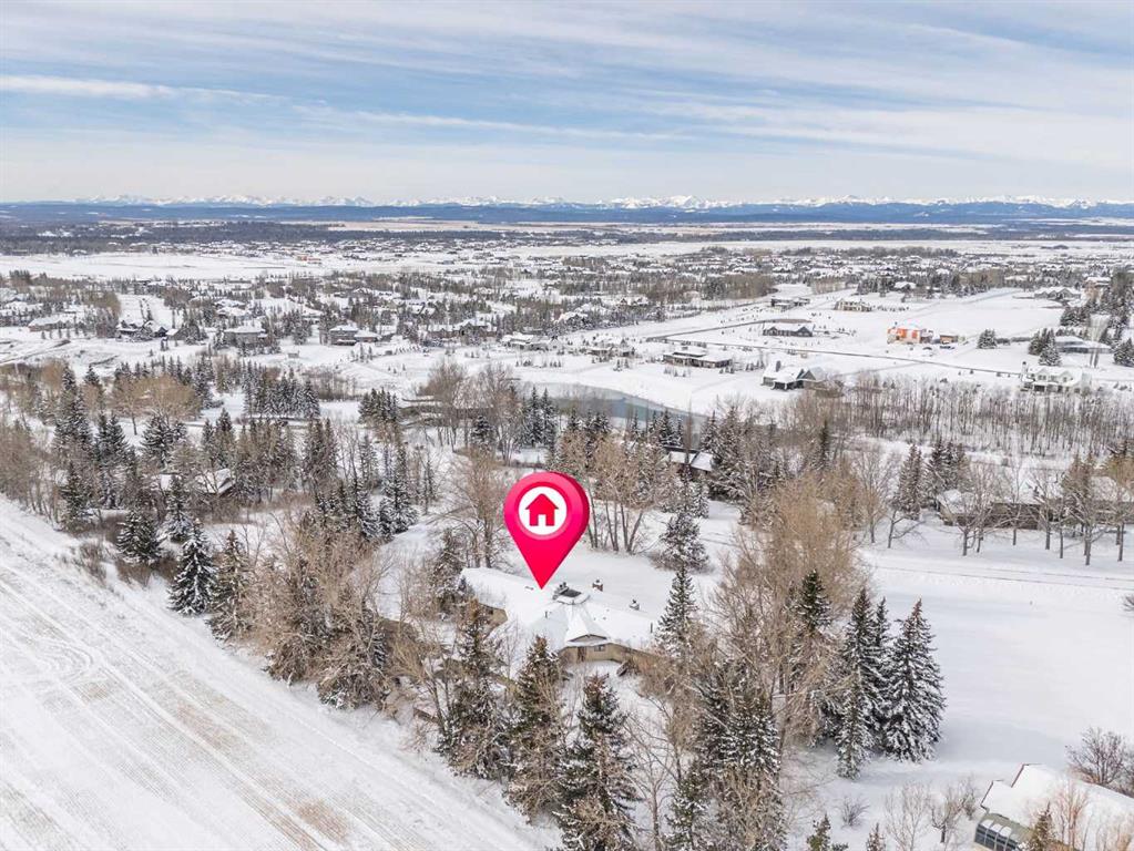 **OPEN HOUSE - SATURDAY 11-1pm** Perfectly positioned on one of Central Springbank’s most desirable streets, this property is offered for sale for the first time. Set on 2.13 hillside acres, it offers expansive west-facing views of the Rocky Mountain range, stunning sunsets, and starry skies at night. The home itself is suited for either a Buyer looking to undertake a renovation that can marry its unique and functional design, or a Buyer seeking a mature build site for a new custom home. This walkout bungalow offers over 3,450 square feet above grade, over 3,350 additional square feet in the walkout lower level, and an oversized 3-car attached garage of over 900 square feet, complete with a suspended gas heater. The main home features 6 bedrooms, 2 full bathrooms, and a powder room, with the upper level offering 3 bedrooms, a formal dining room, kitchen, and living room all anchored around a conversation pit with natural-stone fireplace. The lower level of the main home includes 3 additional bedrooms, a full bathroom, rec space, and more. The private north-wing in-law/nanny suite offers excellent flexibility for multigenerational living, with 1 bedroom and 1 full bathroom above grade, plus 2 additional bedrooms and 1 full bathroom on the lower level. Three of the home’s four wood-burning fireplaces feature natural stone and gas assist. Listed at land value, this is a rare opportunity to buy in Central Springbank where you are only 5 minutes to Calgary’s westside amenities, the Ring Road, and schools, or 45 minutes to Canmore. It is extremely rare to find a property like this with no main-road noise exposure, on a no-through street, with trees, privacy, and mountain views.